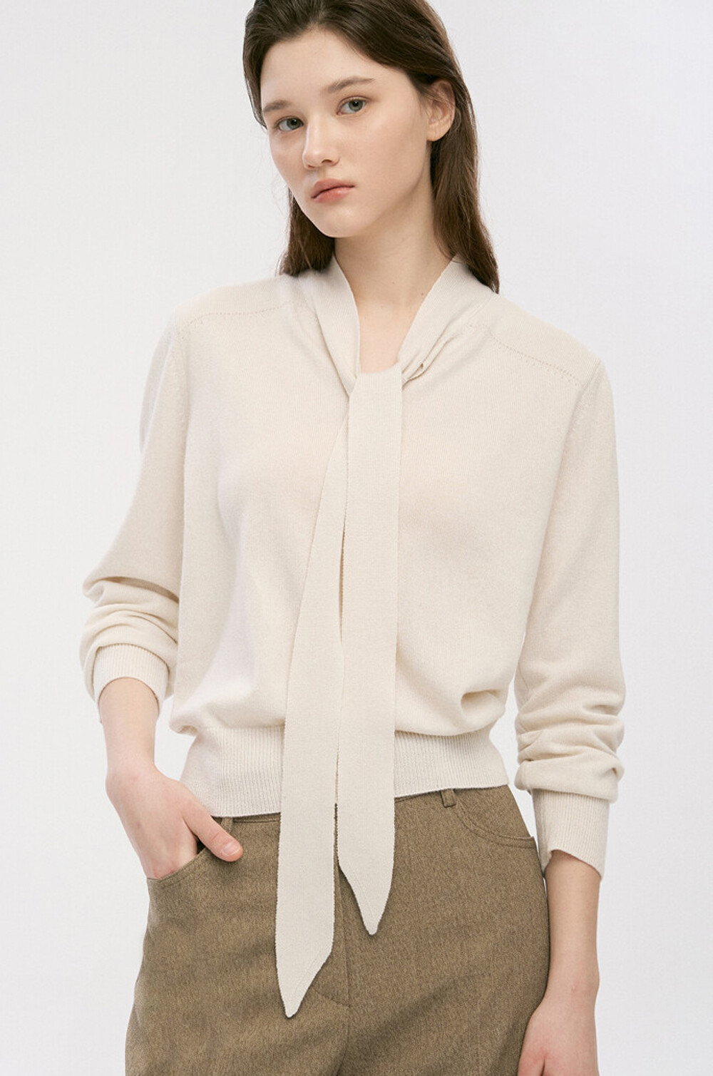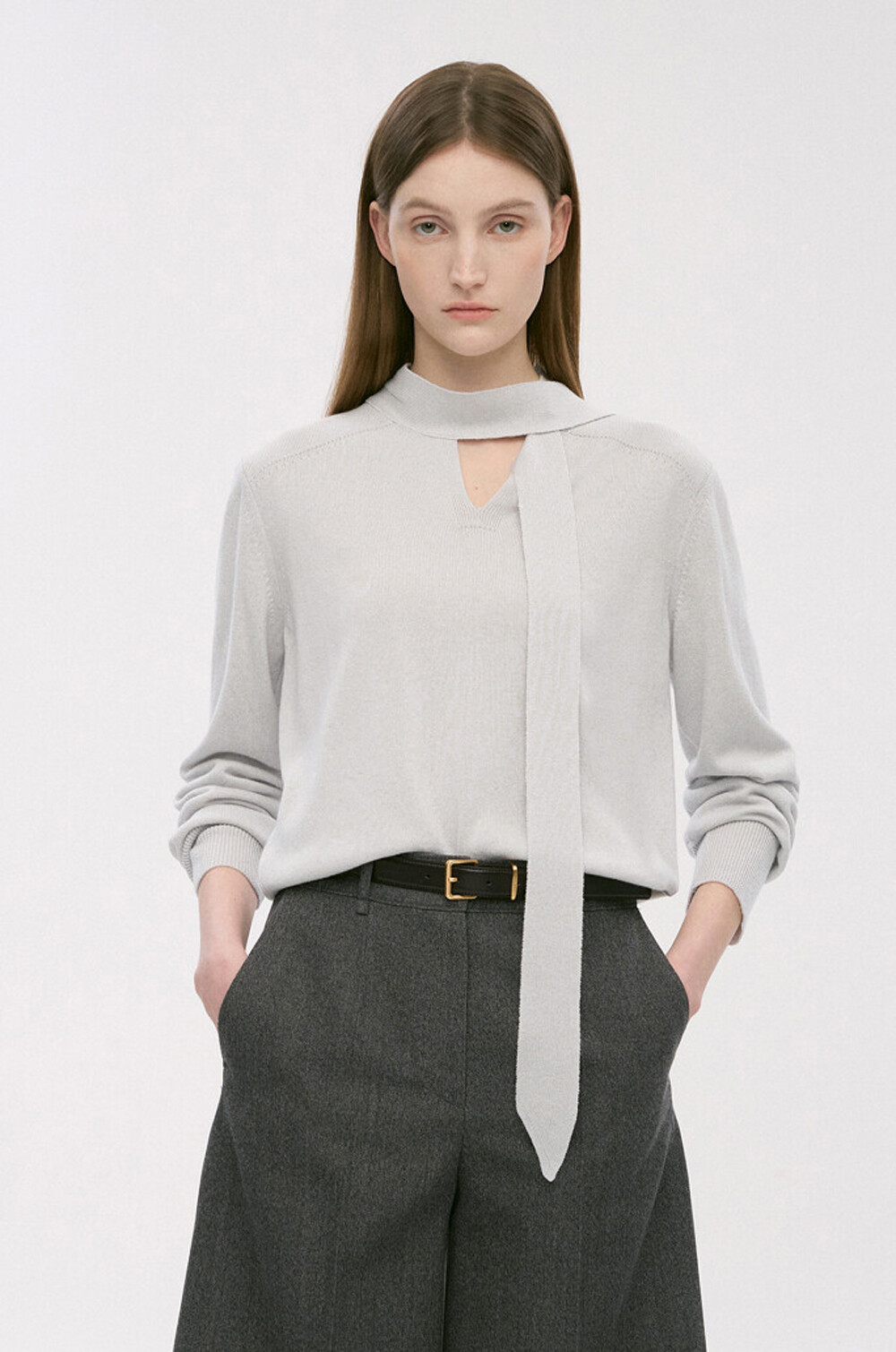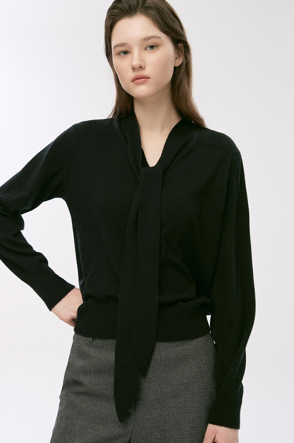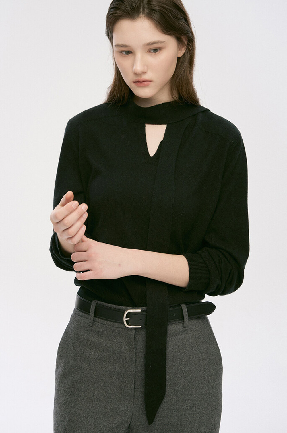 타임 캐시미어 블렌드 타이넥 니트 탑