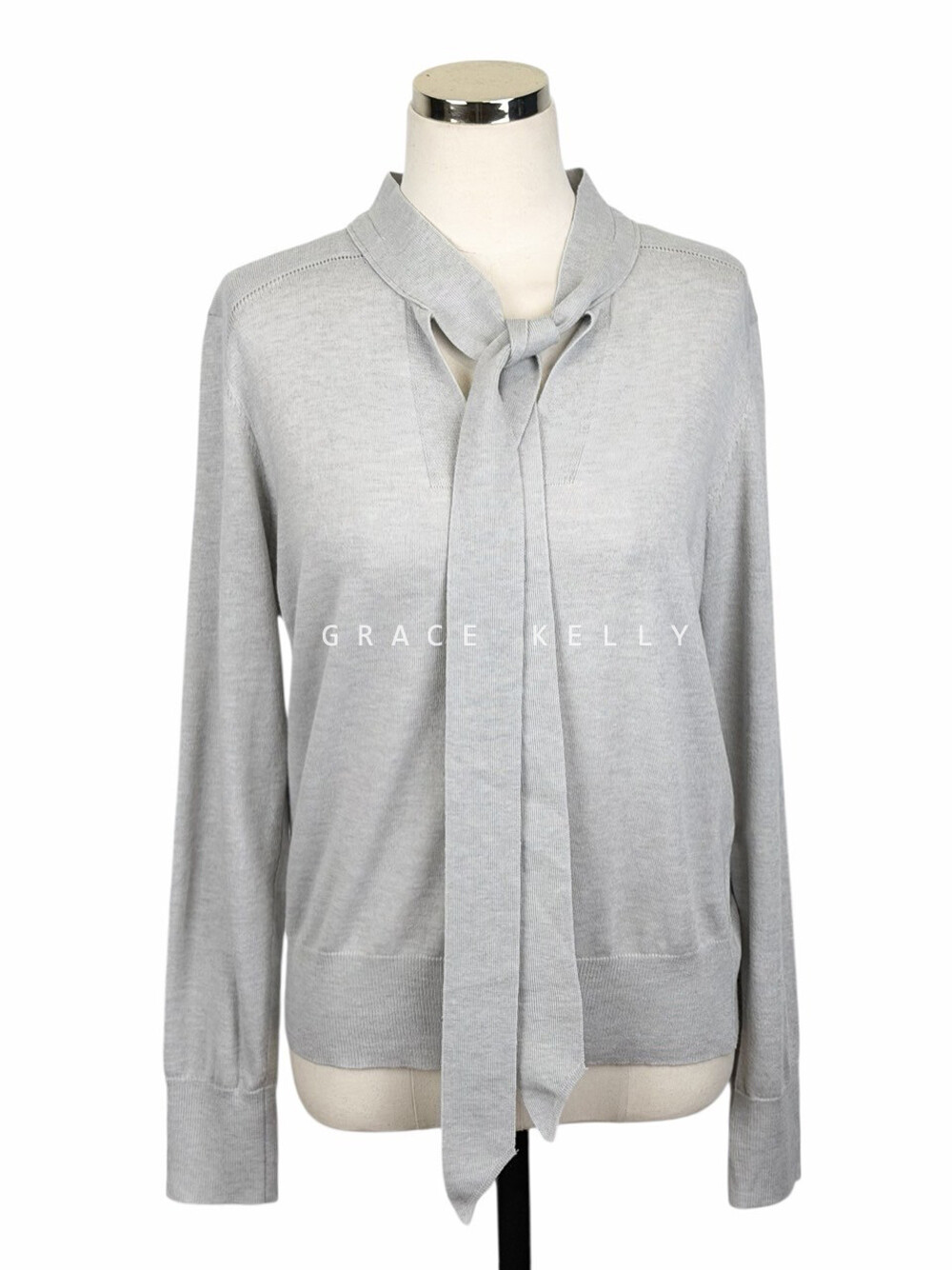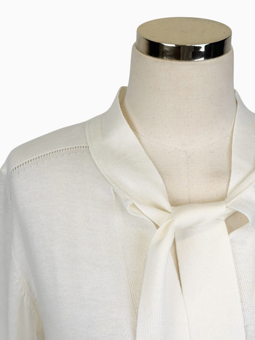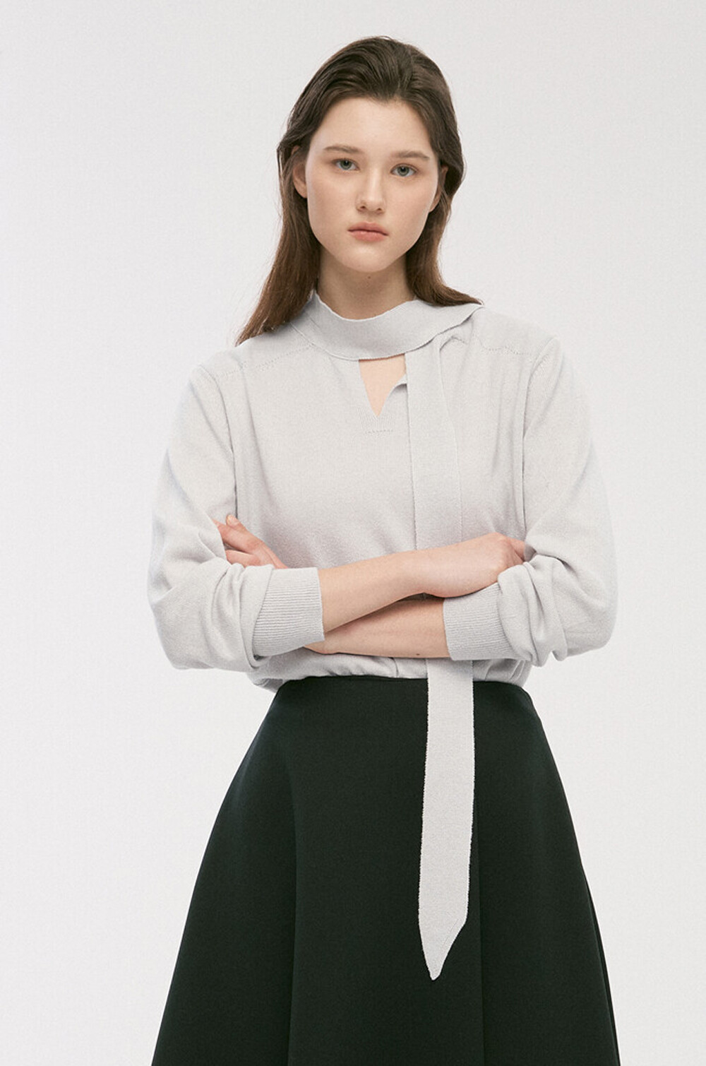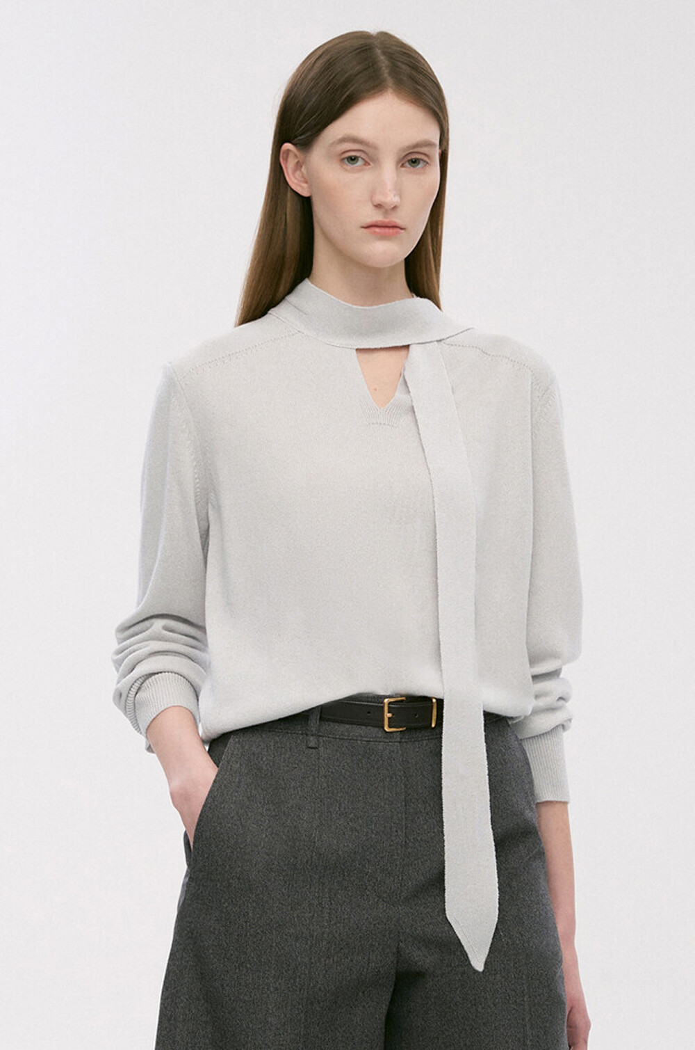 부드럽고 가벼운 타이넥 니트 탑으로,