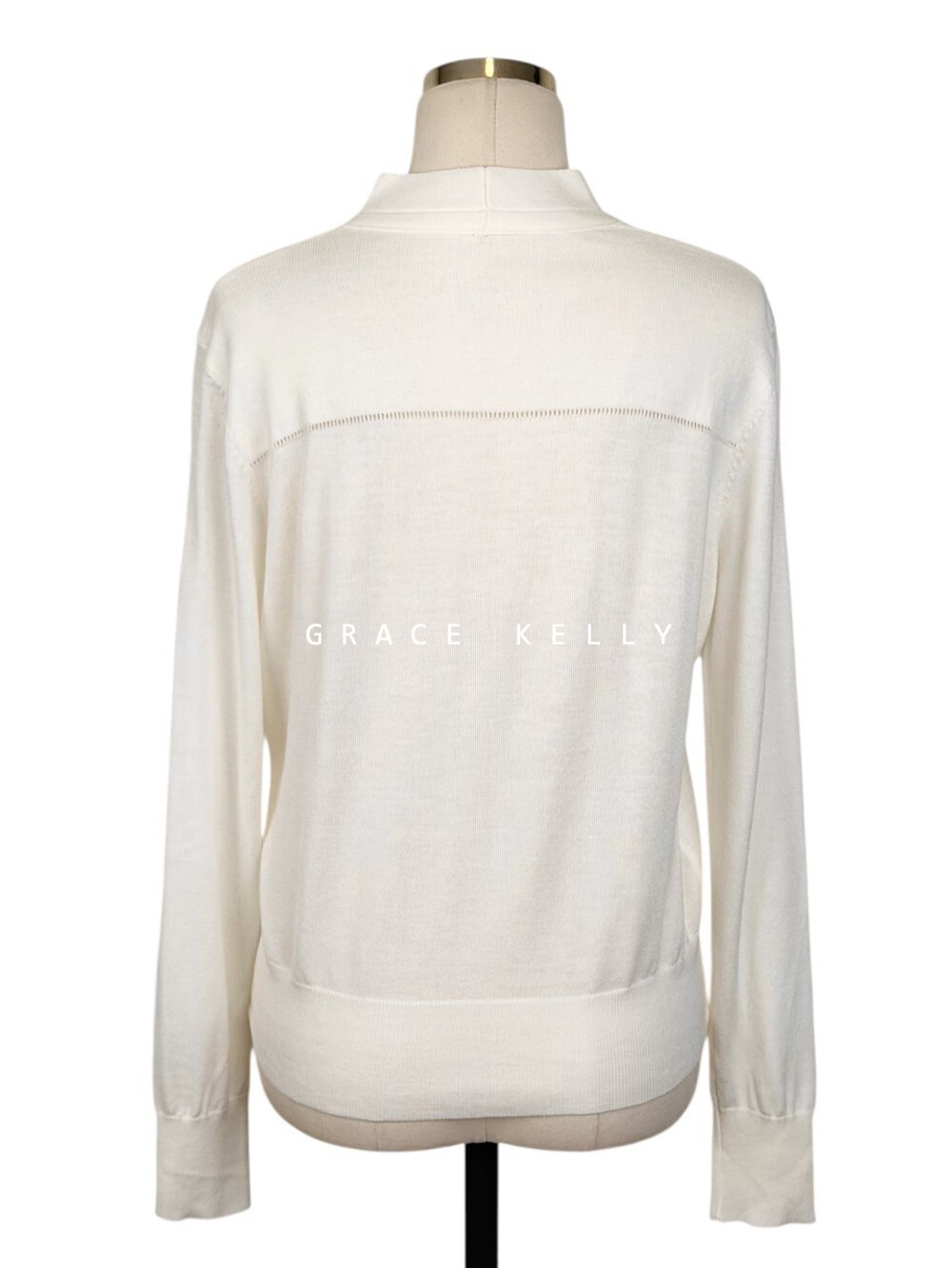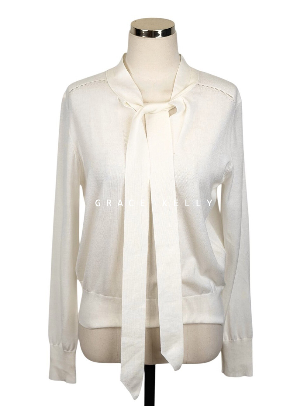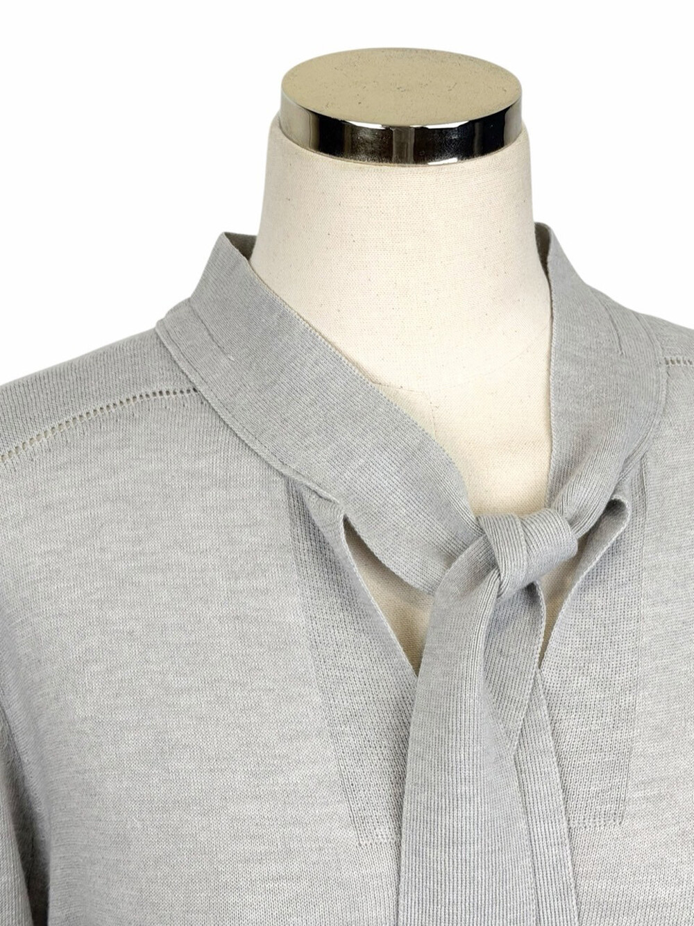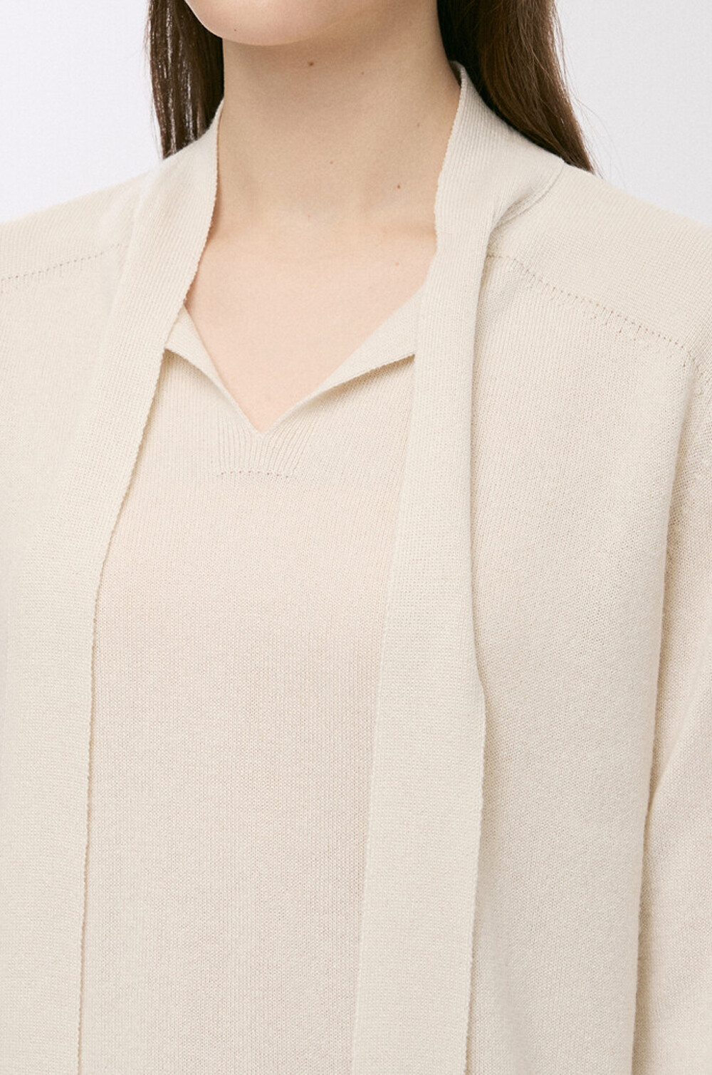 부드럽고 가벼운 타이넥 니트 탑으로,