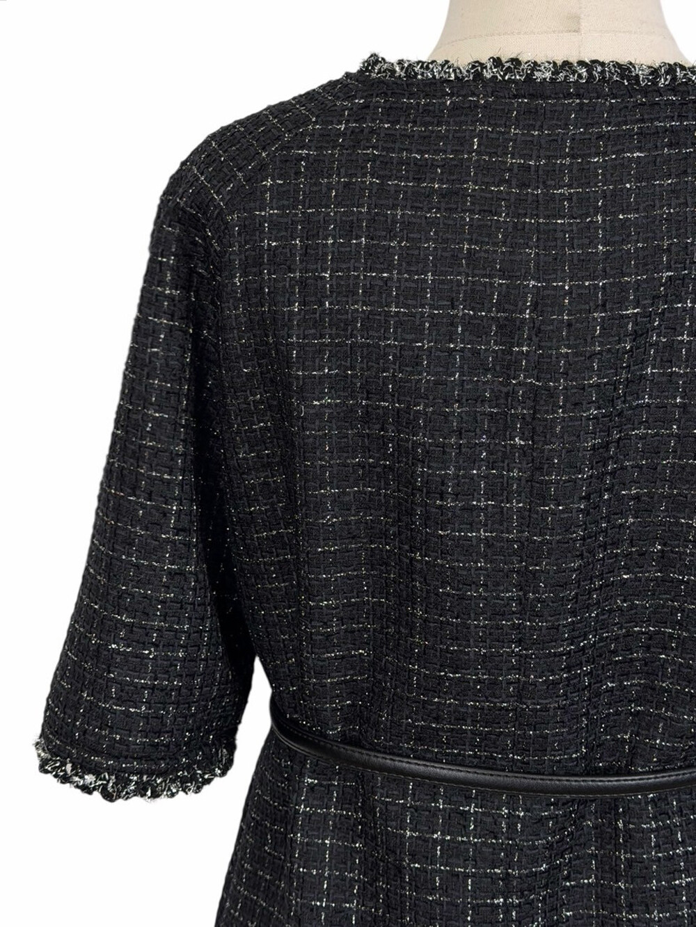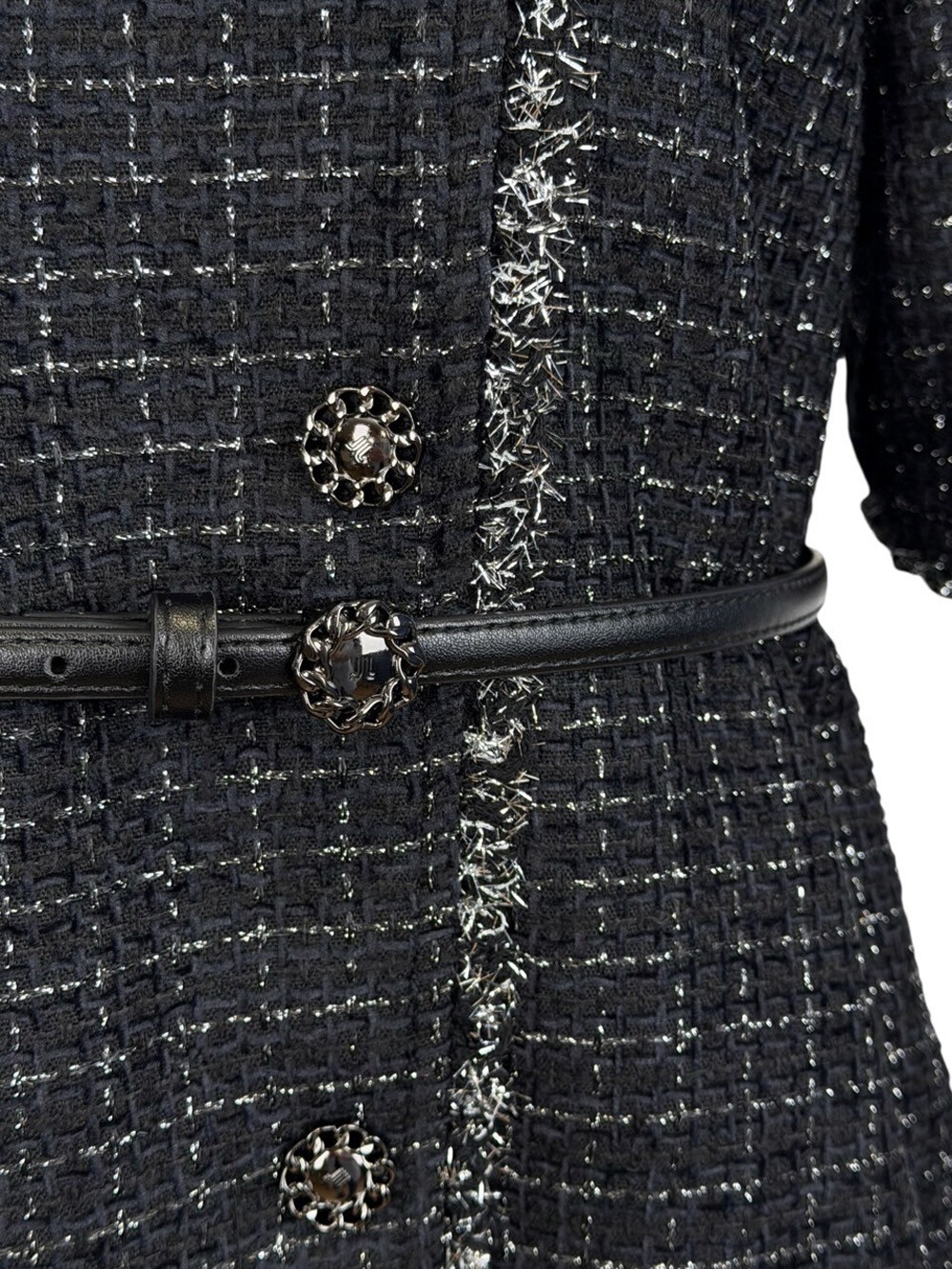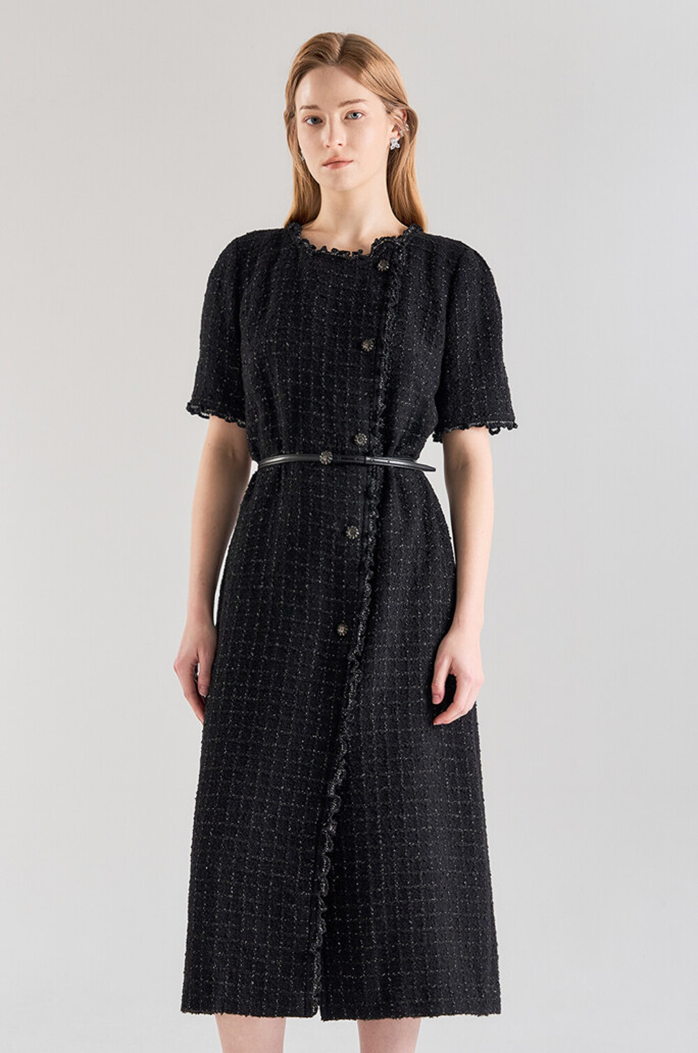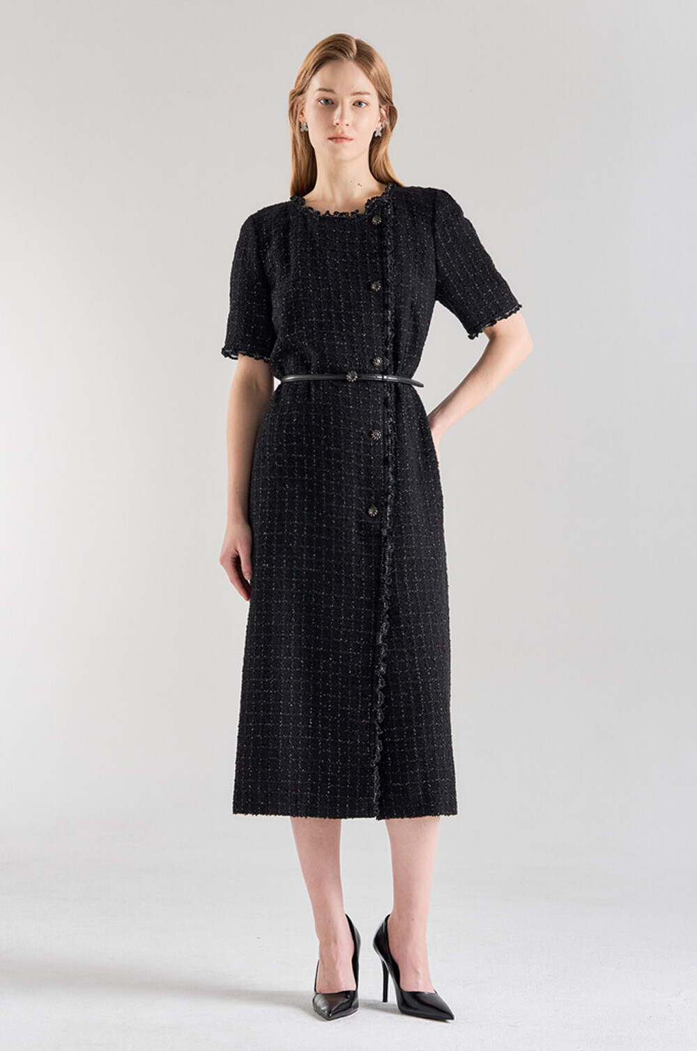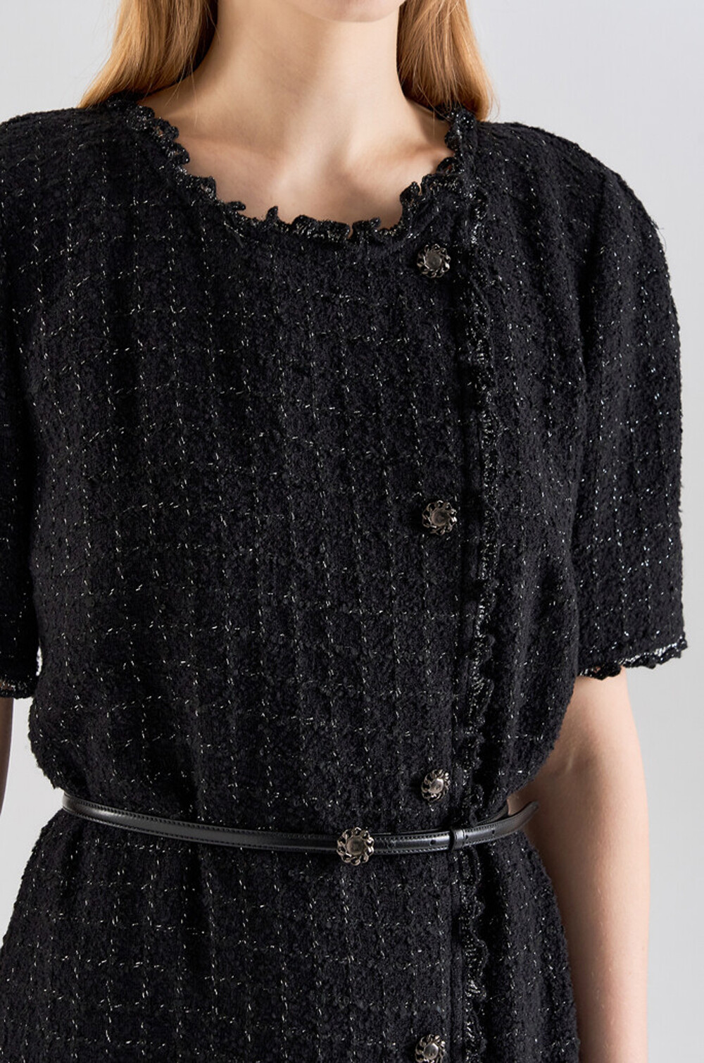 랑방컬렉션 울 블렌드 벨티드 글리터 트위드 드레스