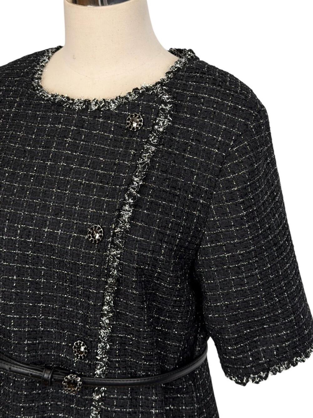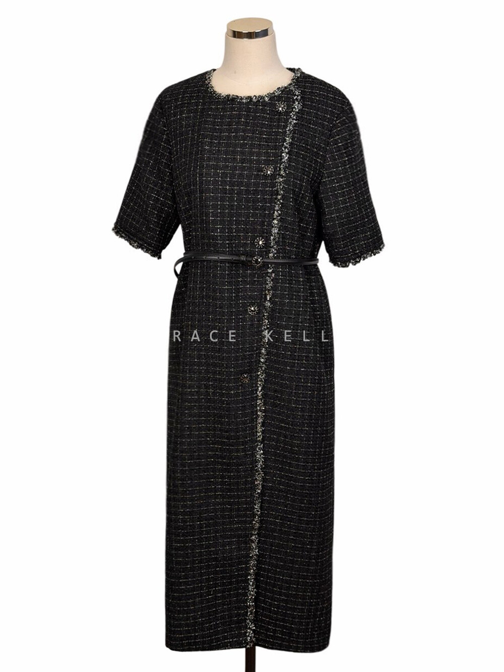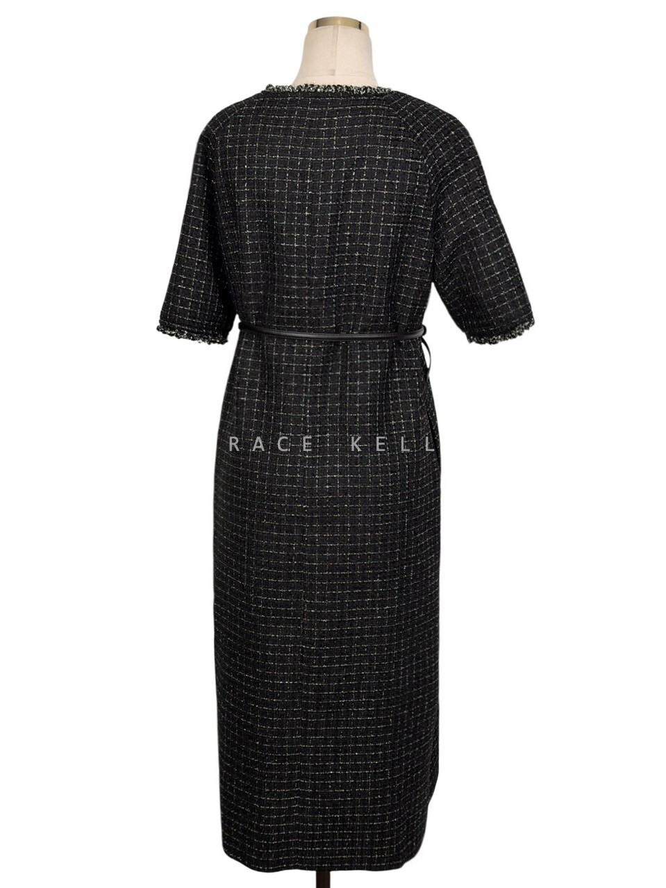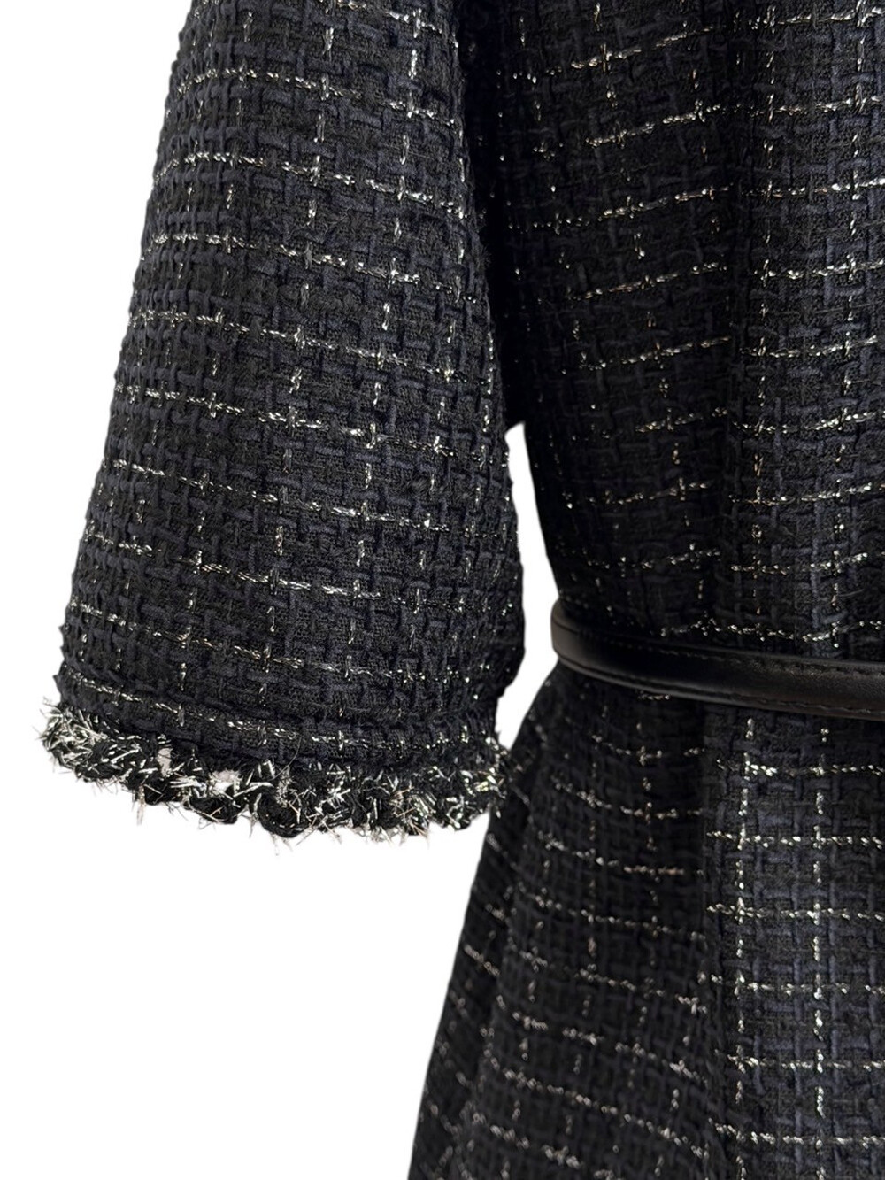 랑방컬렉션 울 블렌드 벨티드 글리터 트위드 드레스