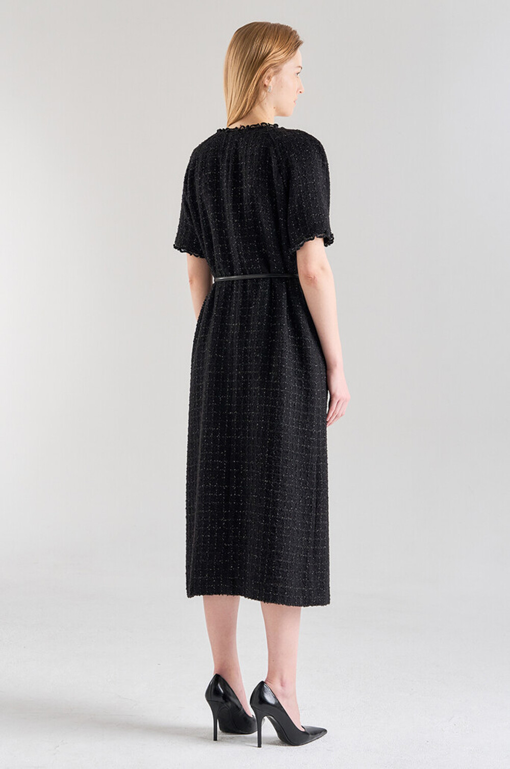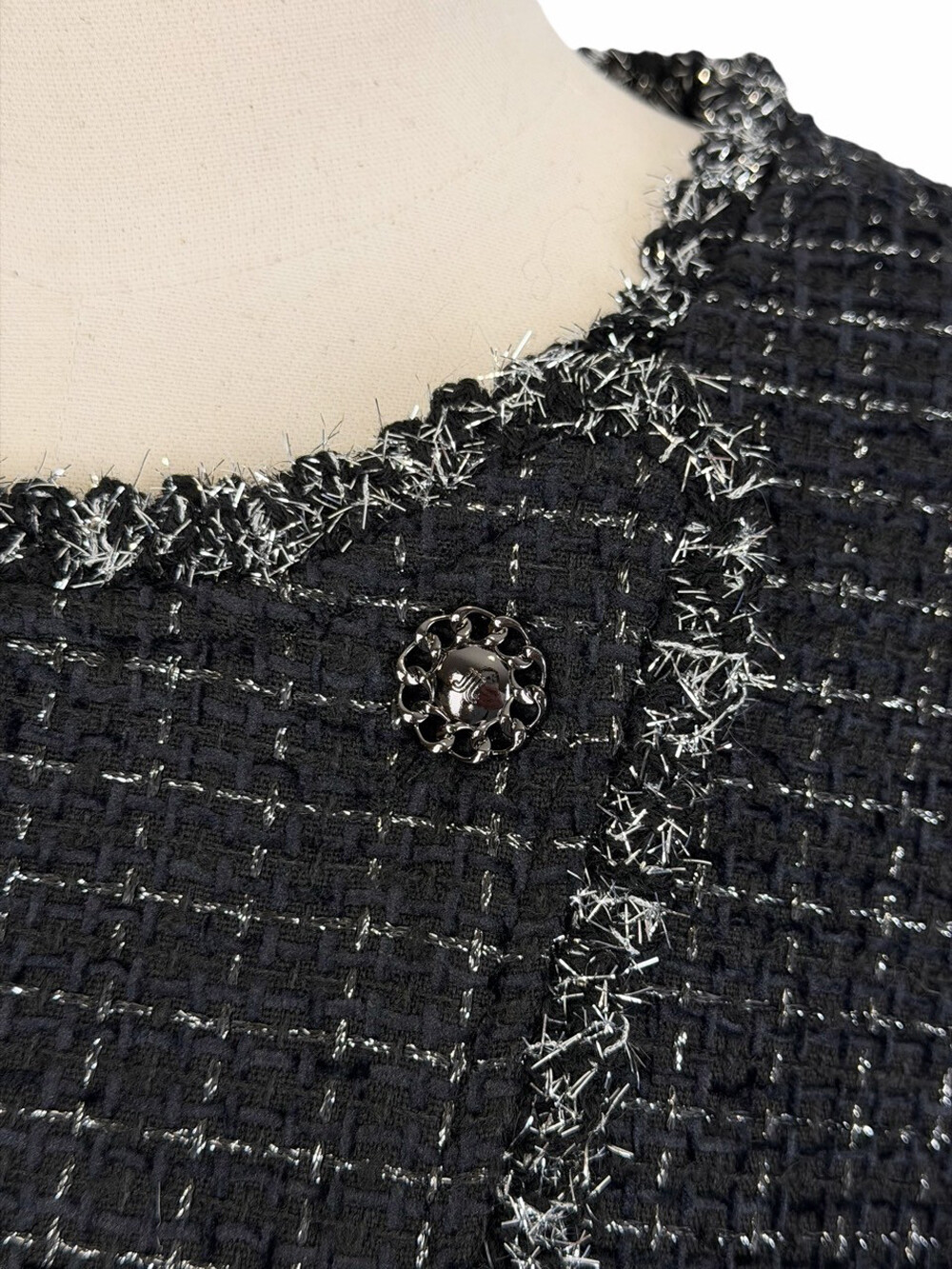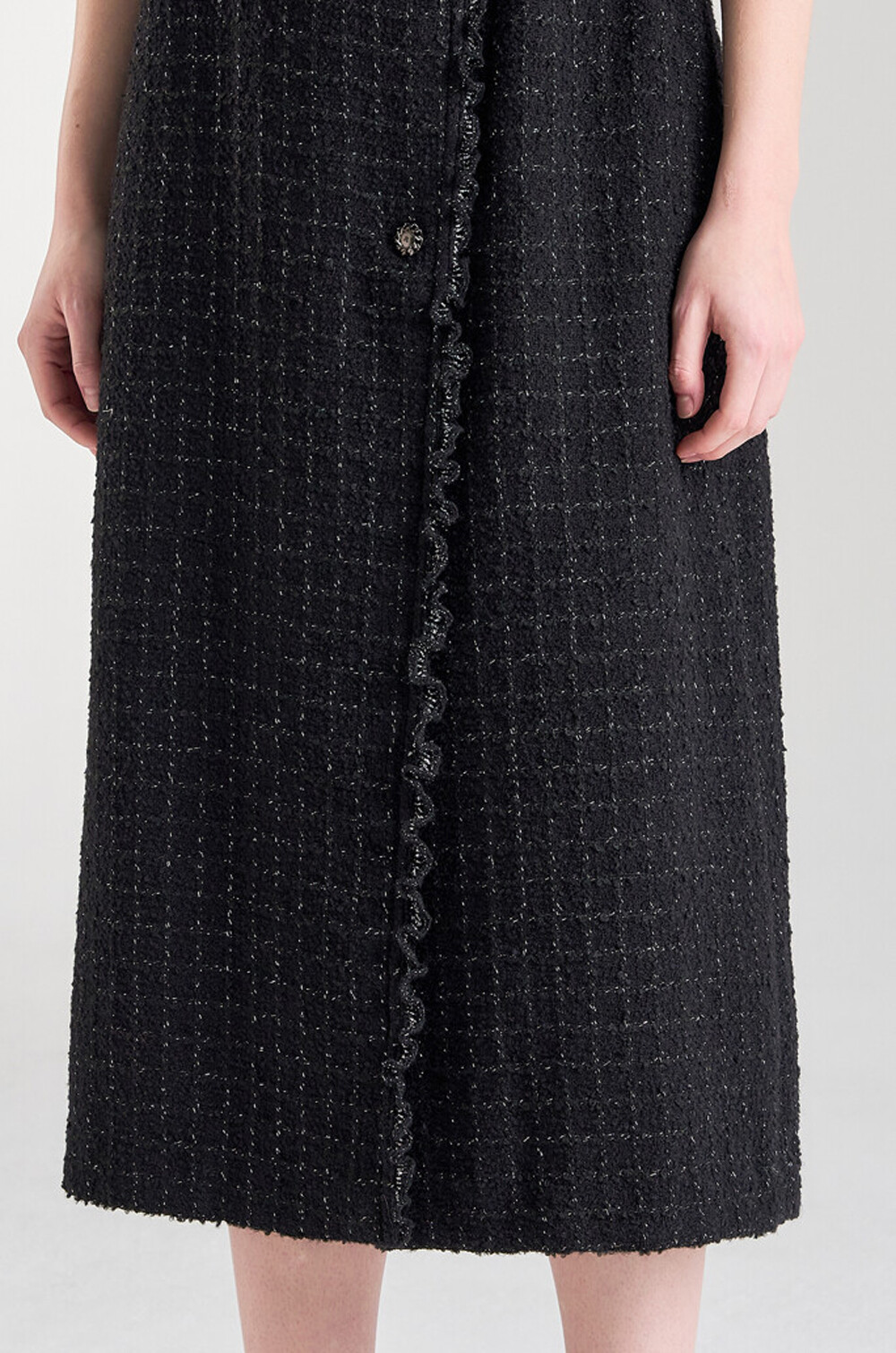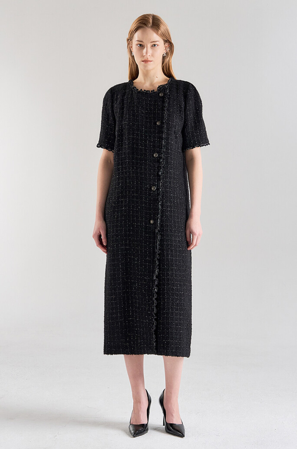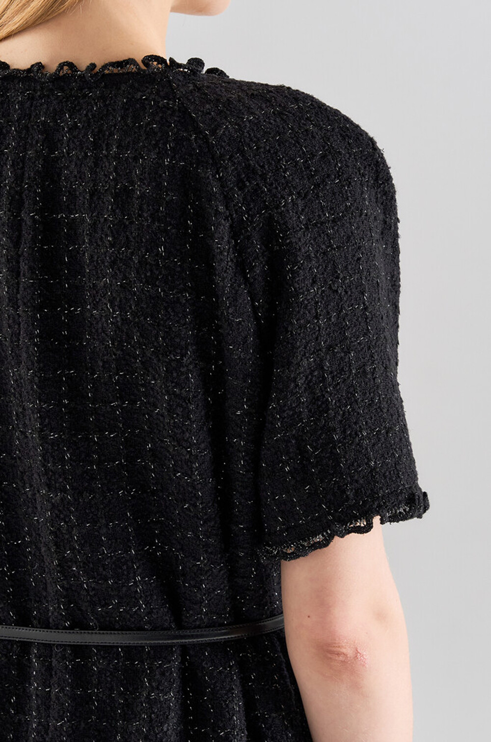 랑방컬렉션 울 블렌드 벨티드 글리터 트위드 드레스