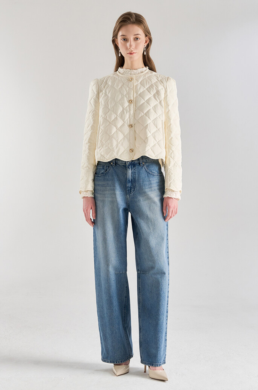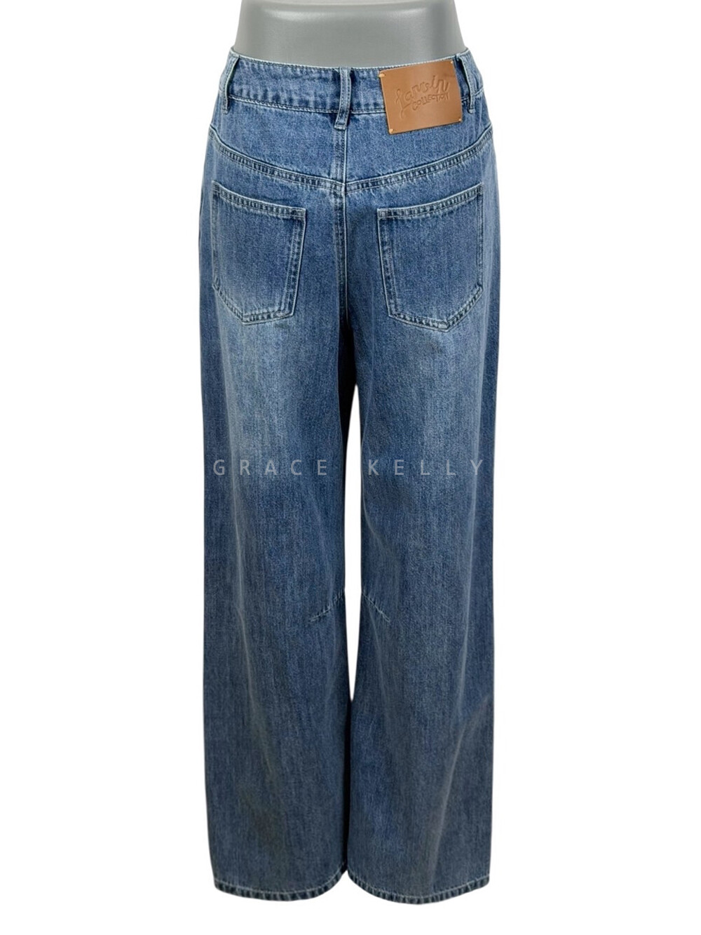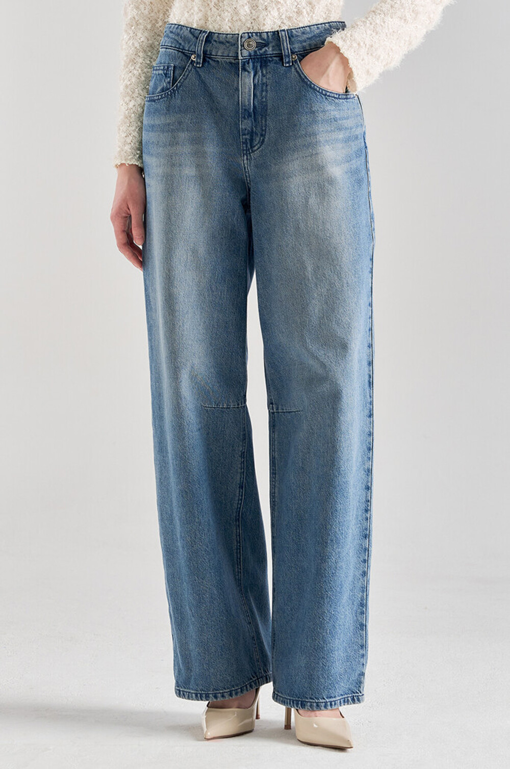 랑방컬렉션 워시드 다트 와이드 데님 팬츠