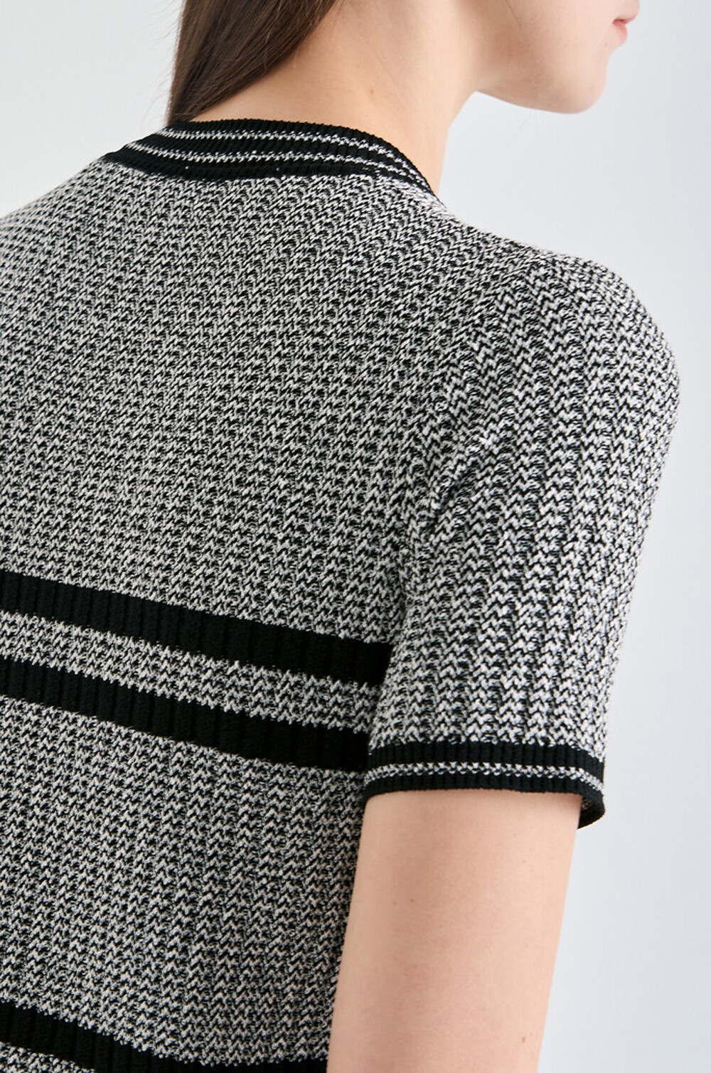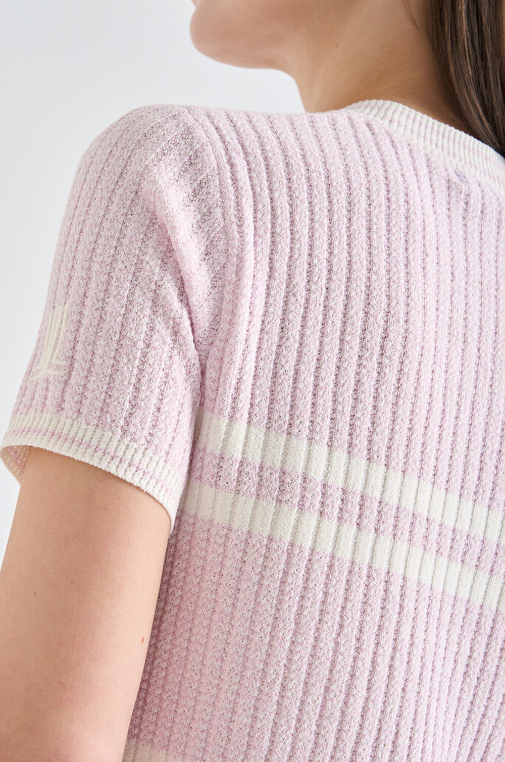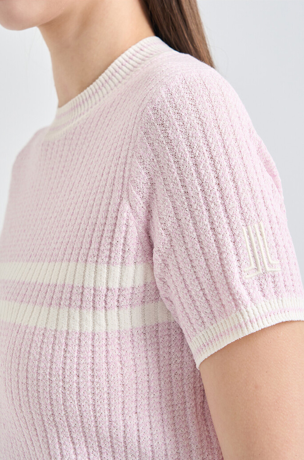랑방블랑 울 블렌드 리브드 하프 슬리브 니트 탑