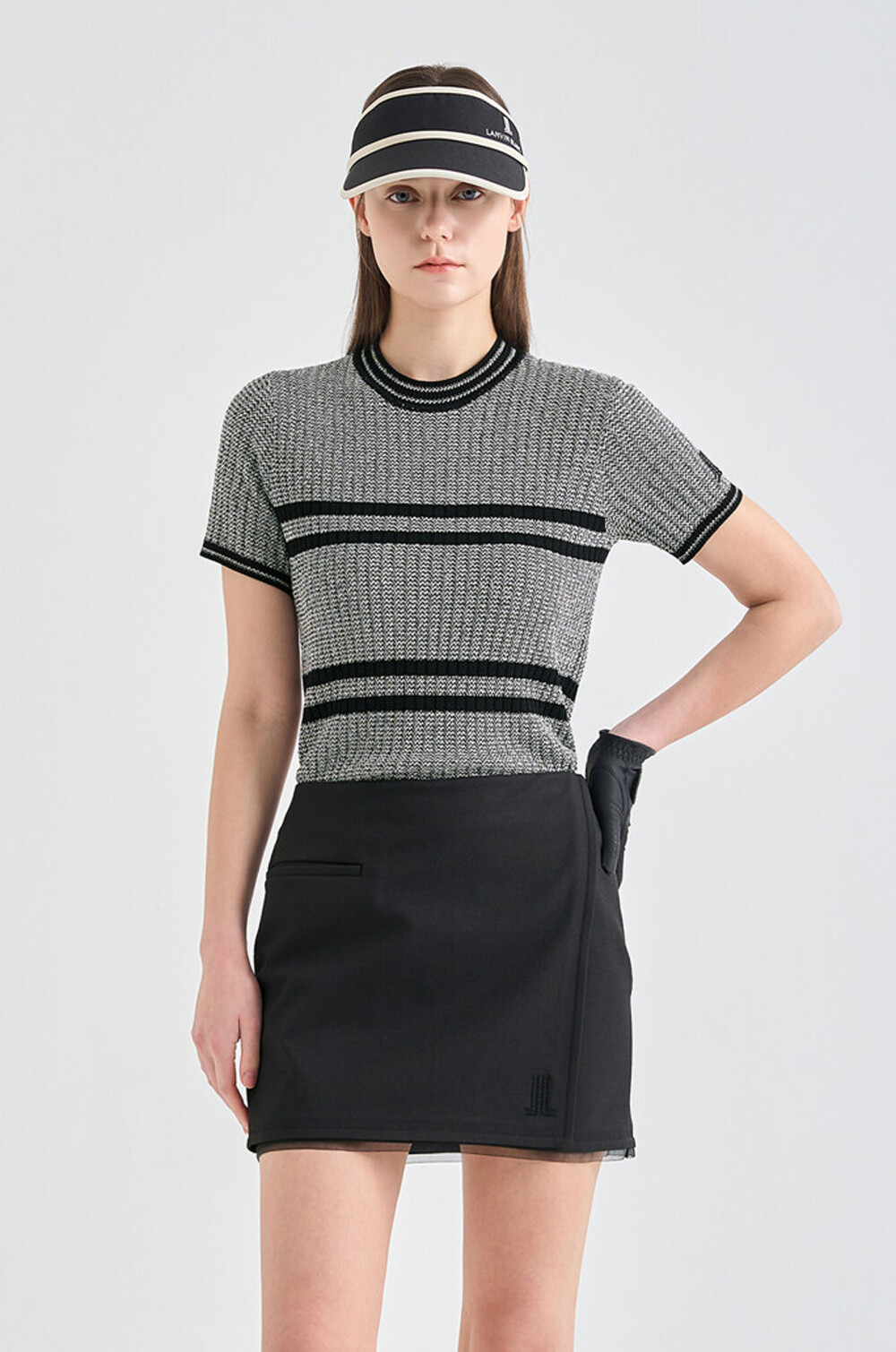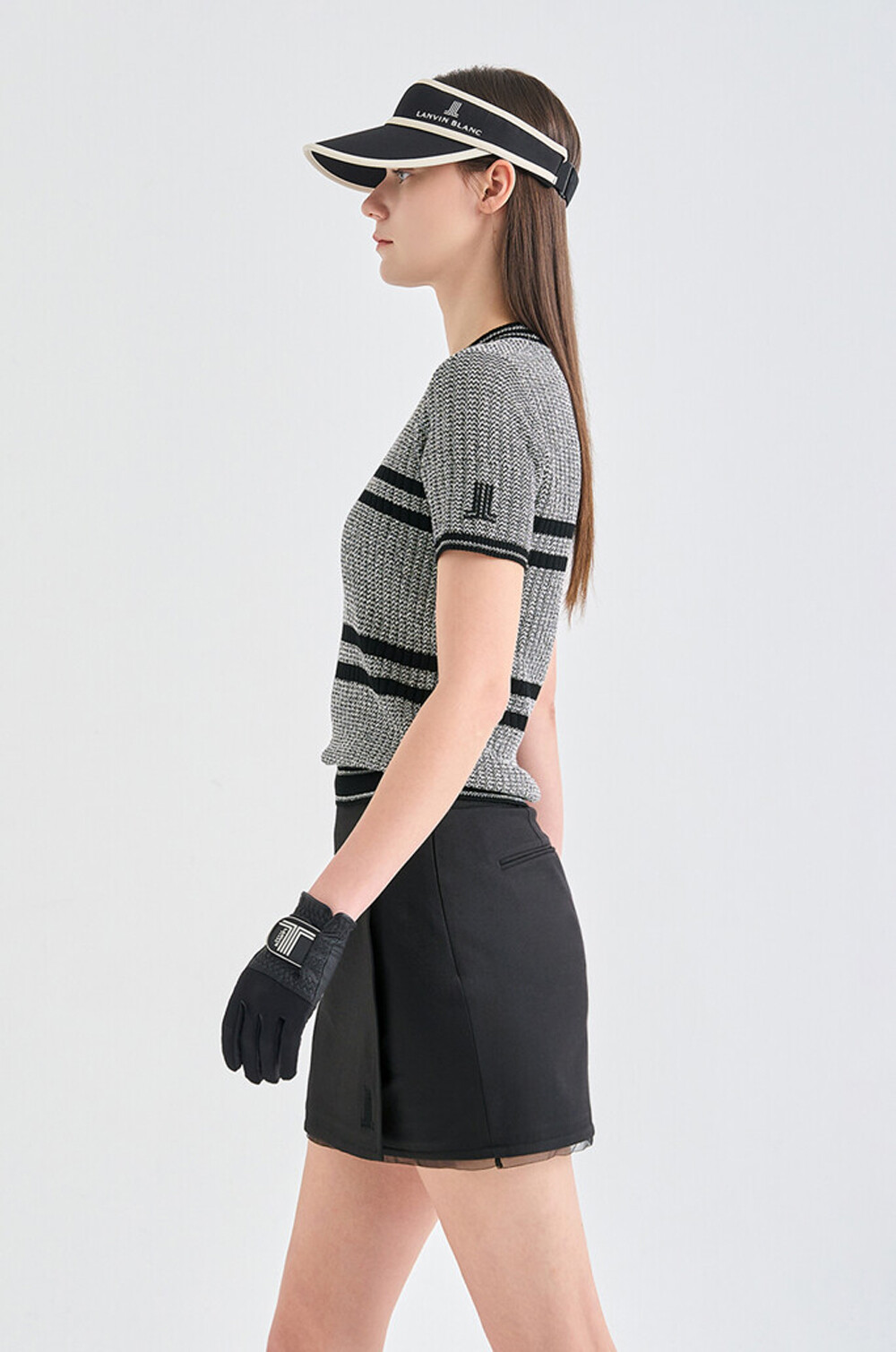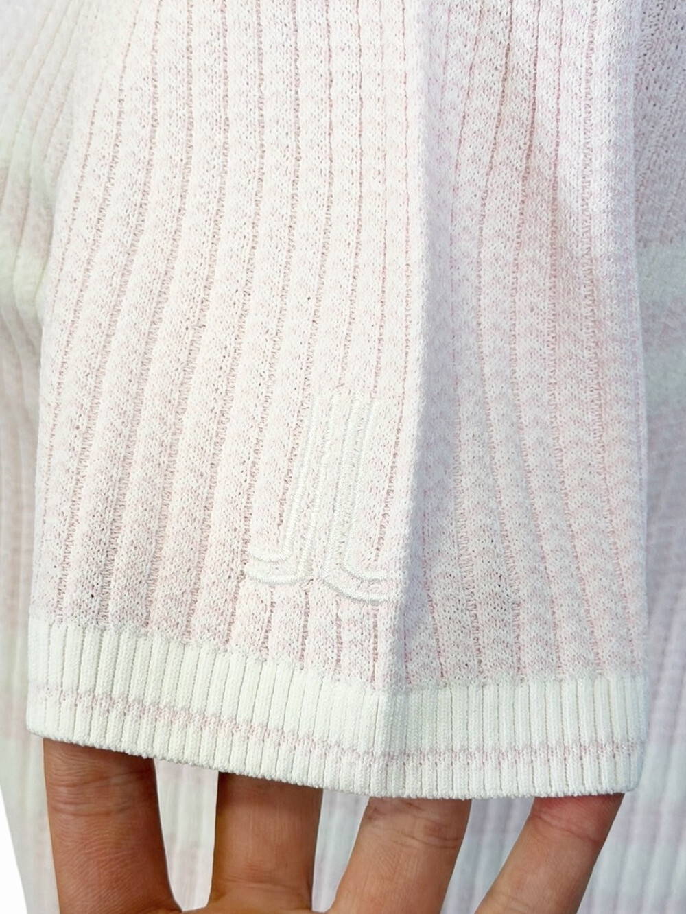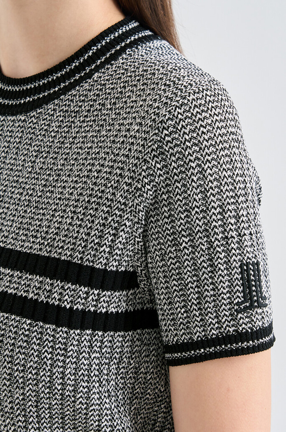 랑방블랑 울 블렌드 리브드 하프 슬리브 니트 탑
