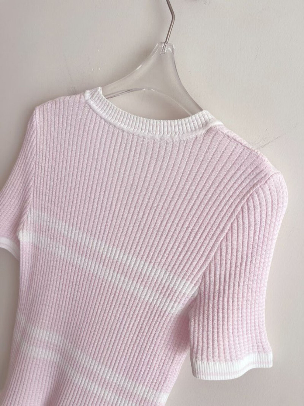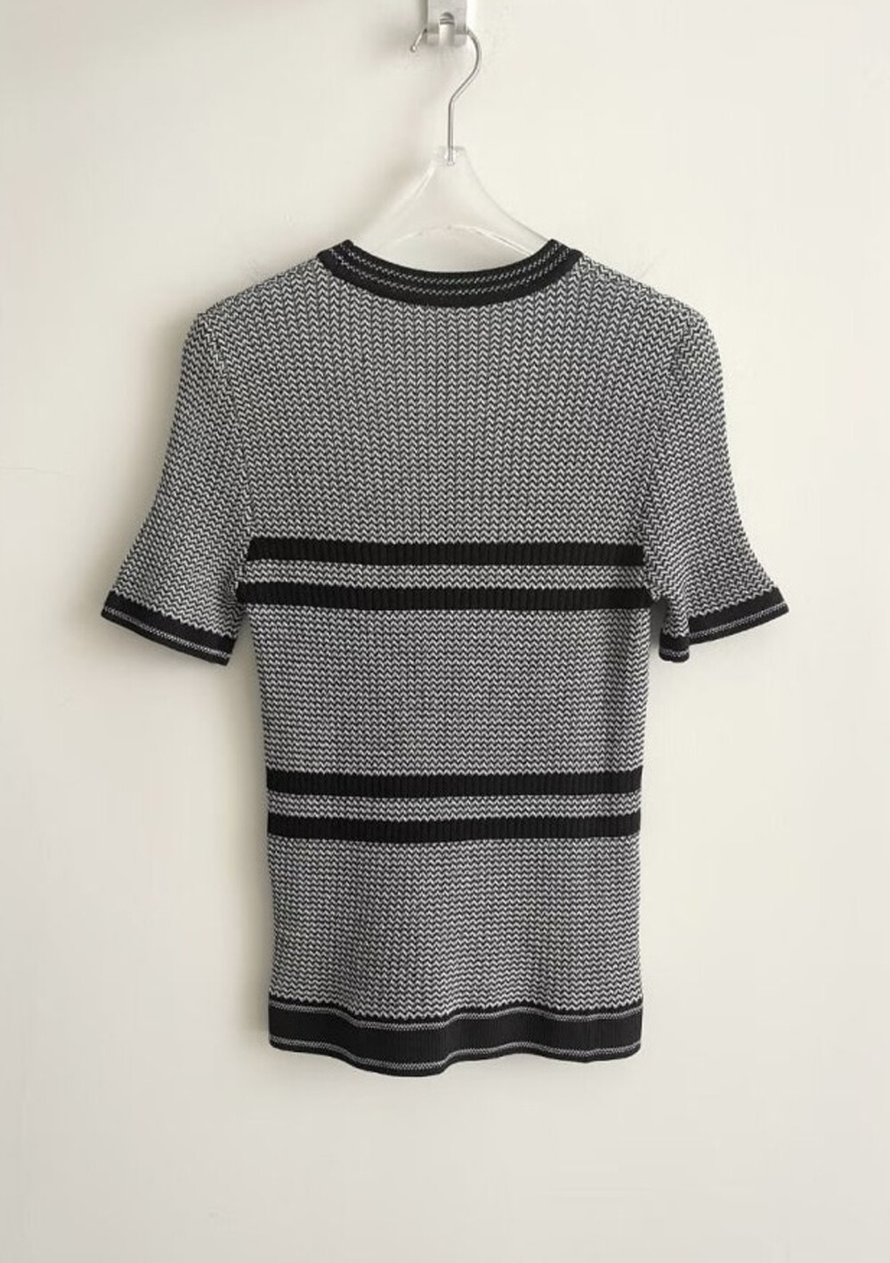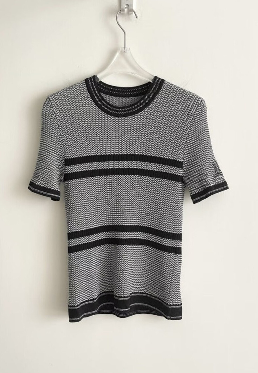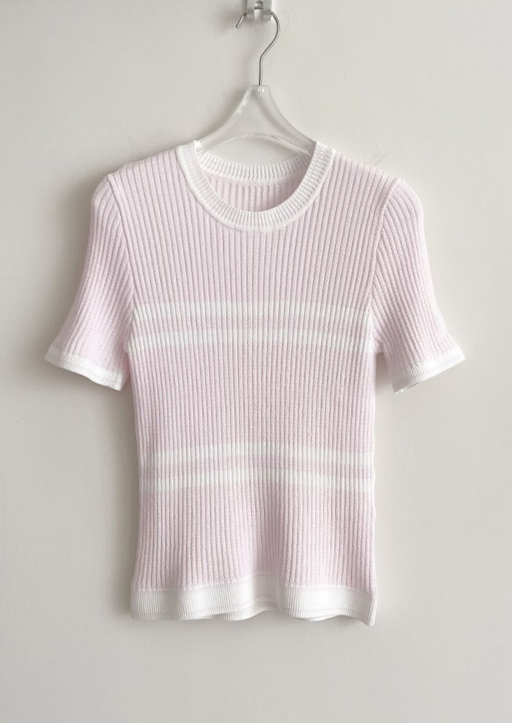 랑방블랑 울 블렌드 리브드 하프 슬리브 니트 탑