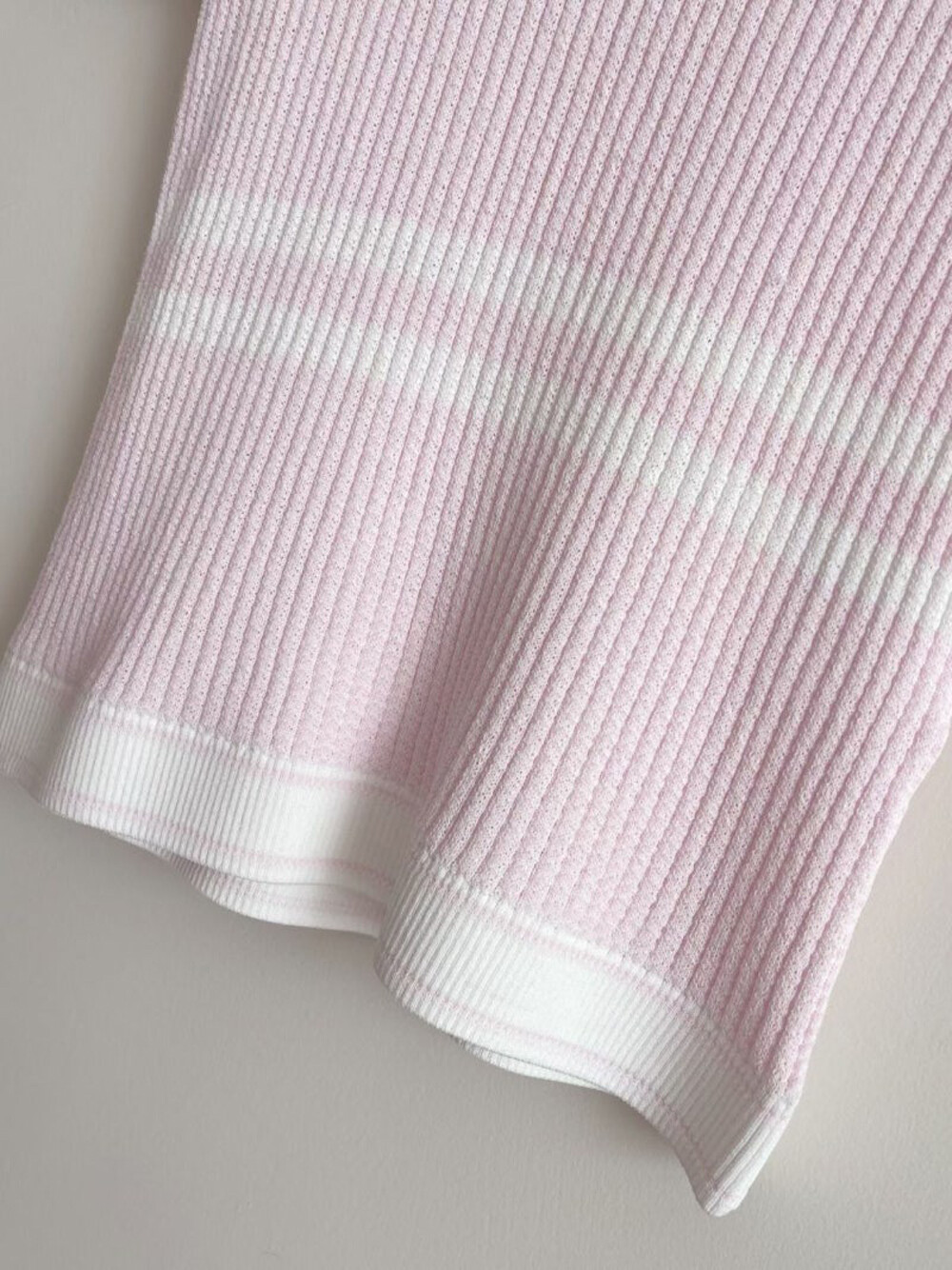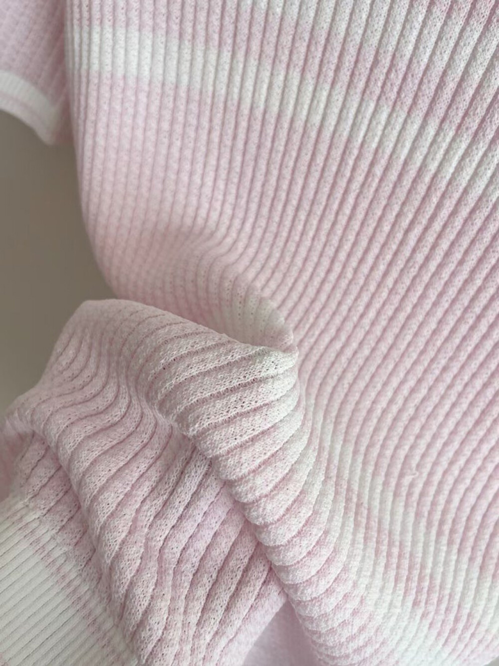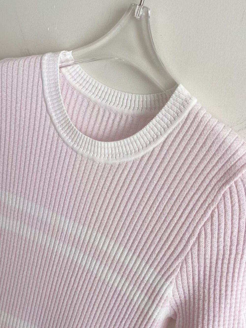 랑방블랑 울 블렌드 리브드 하프 슬리브 니트 탑