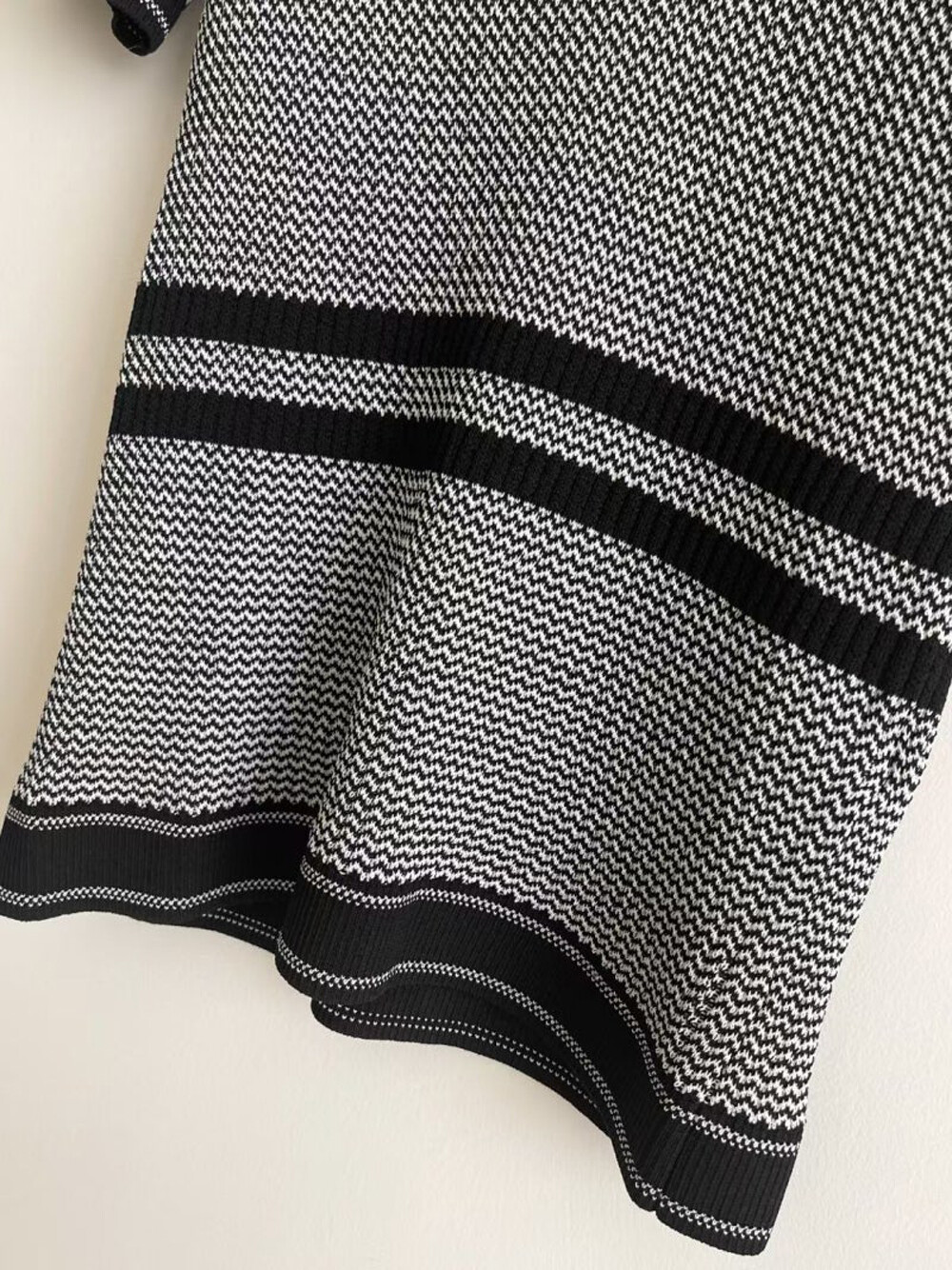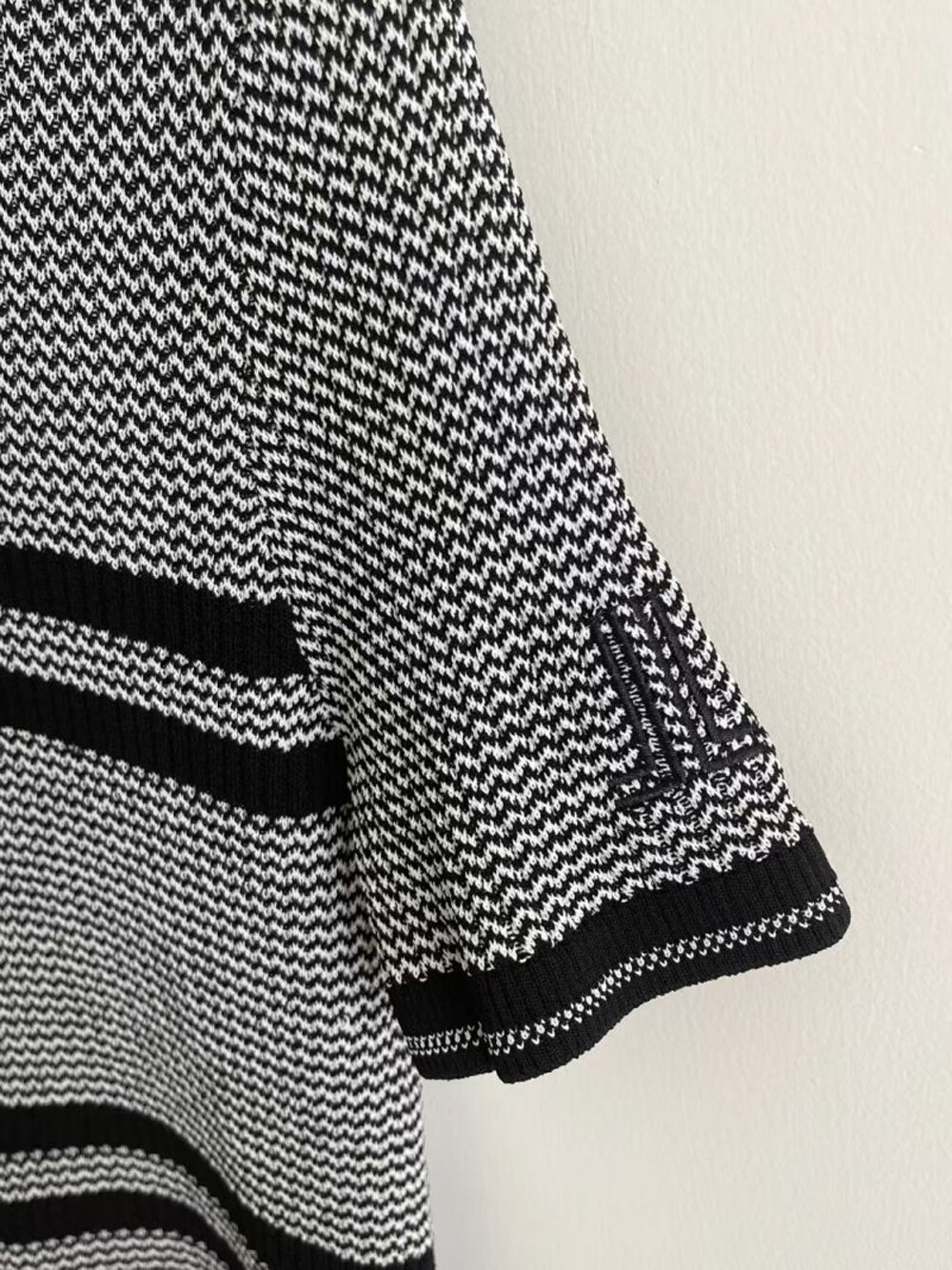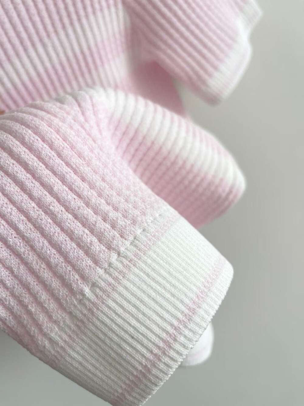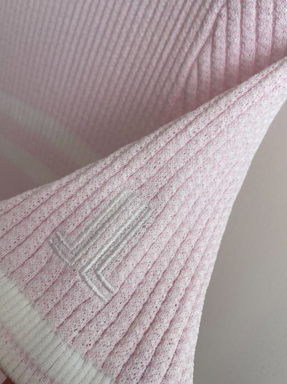 랑방블랑 울 블렌드 리브드 하프 슬리브 니트 탑