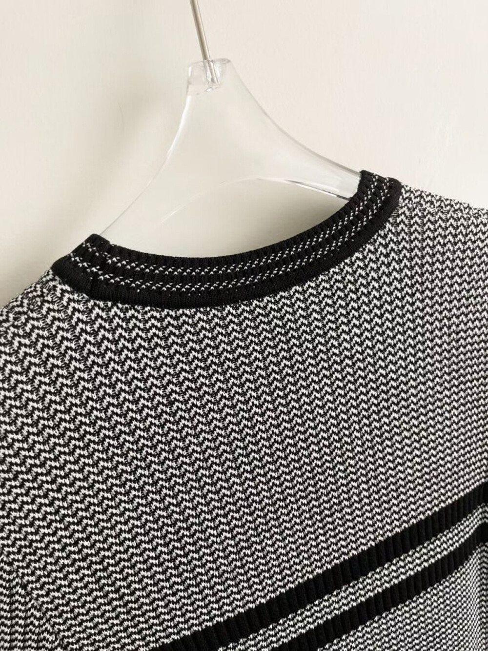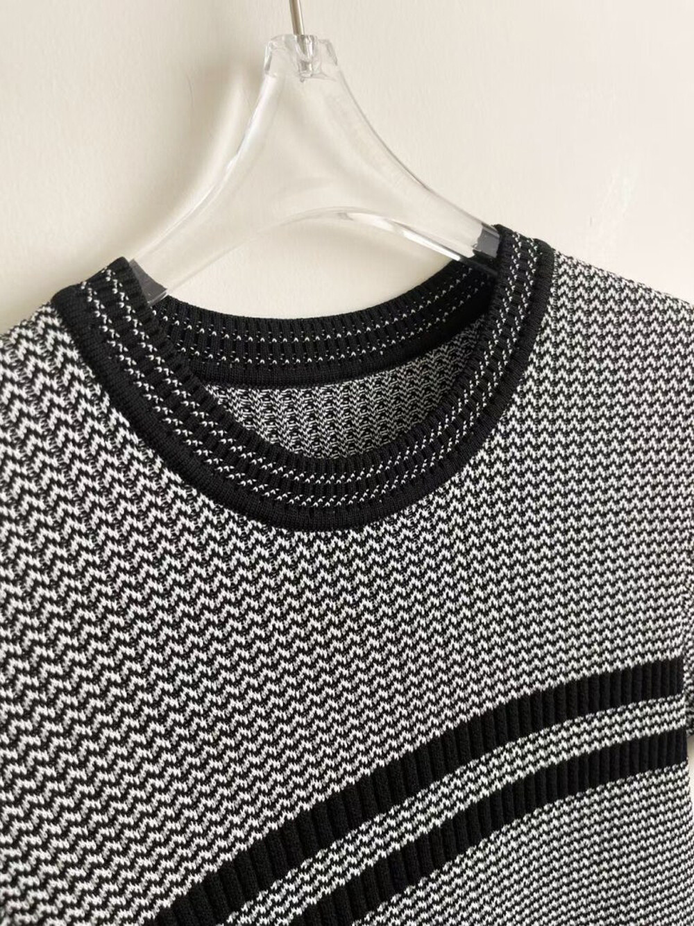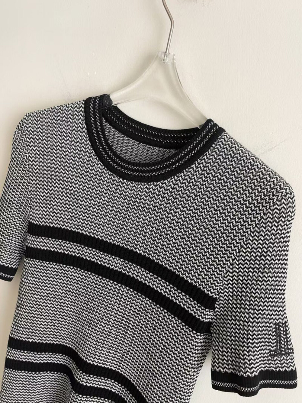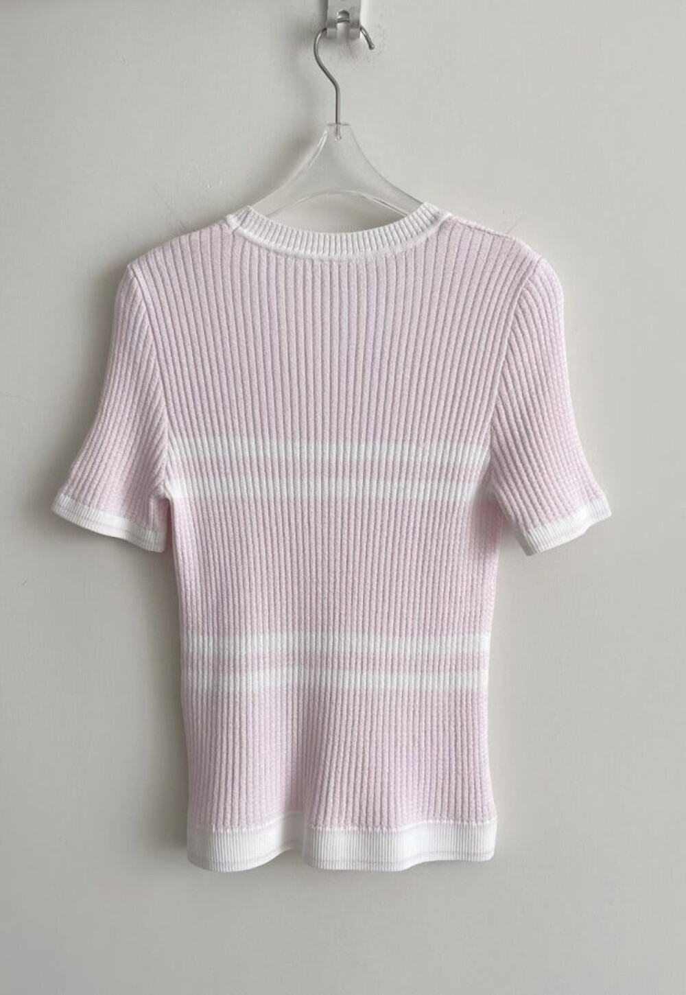 LANVIN BLANC. Wool Blend Ribbed Half Sleeve Knit Top
