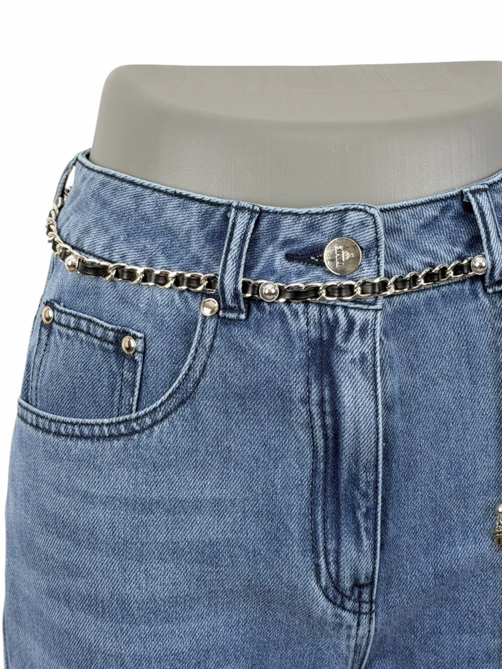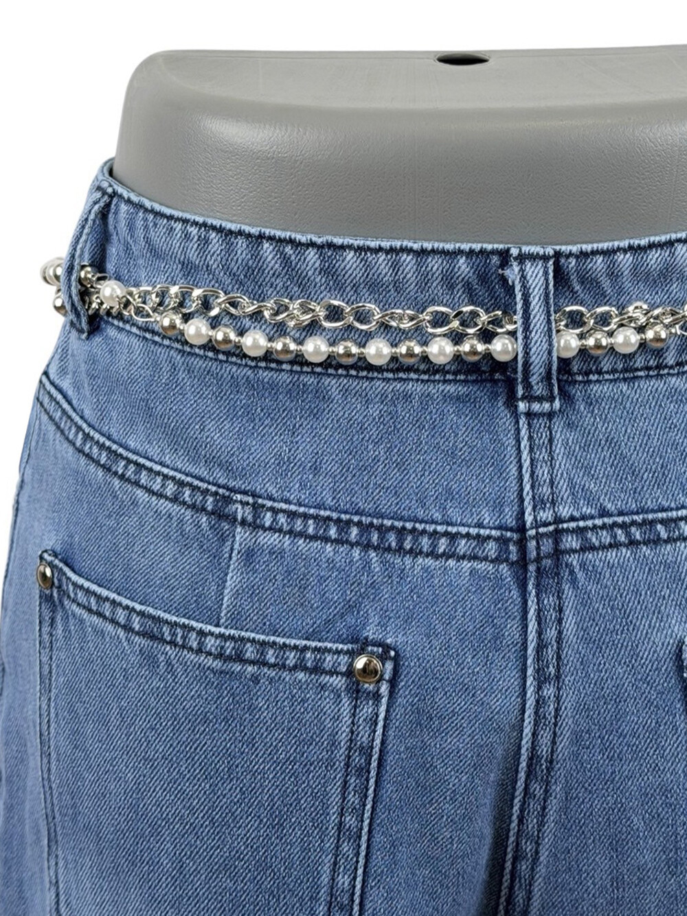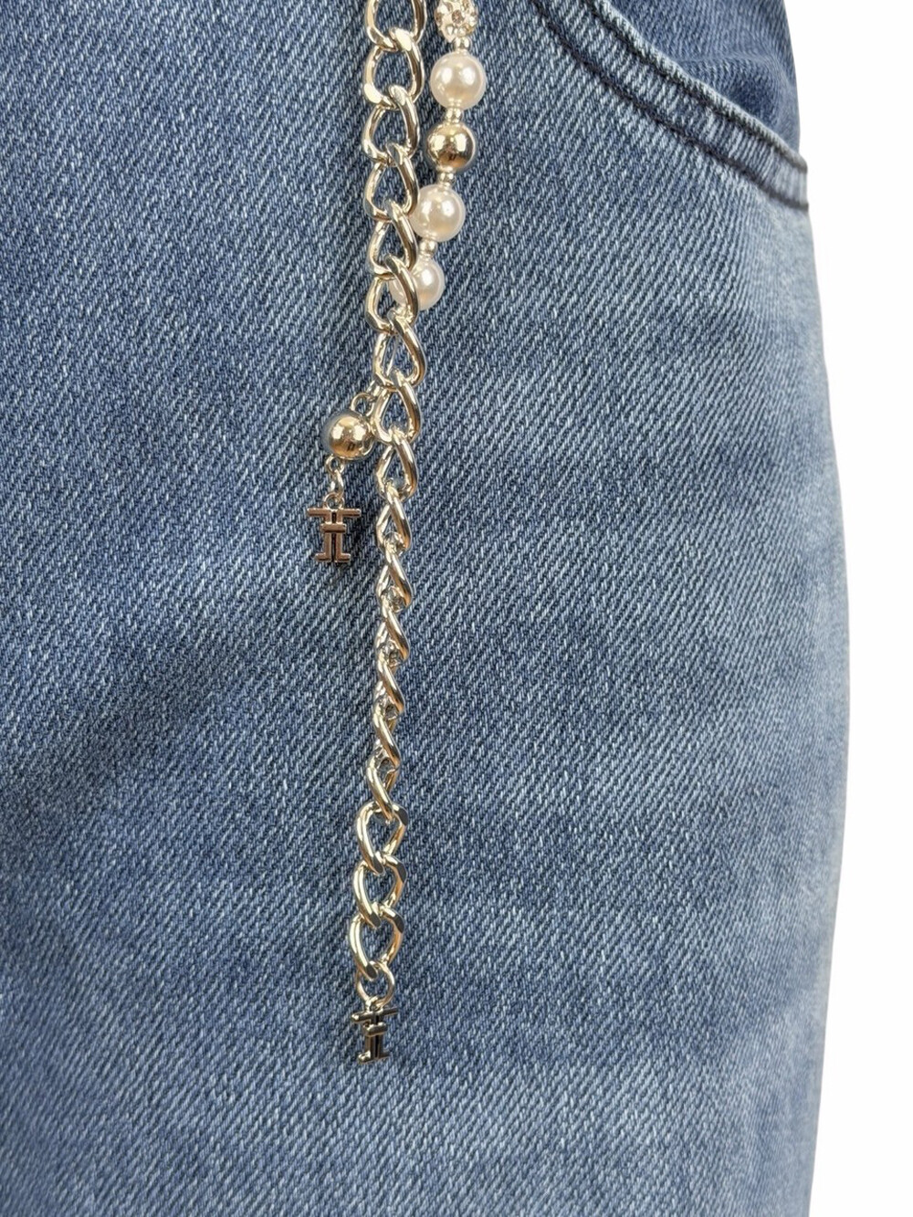 펄 장식이 더해진 체인 벨트가
