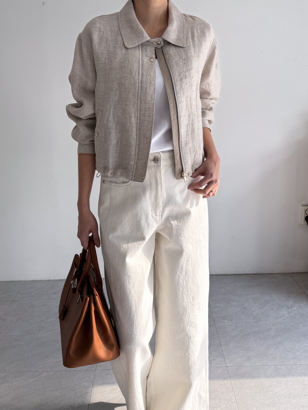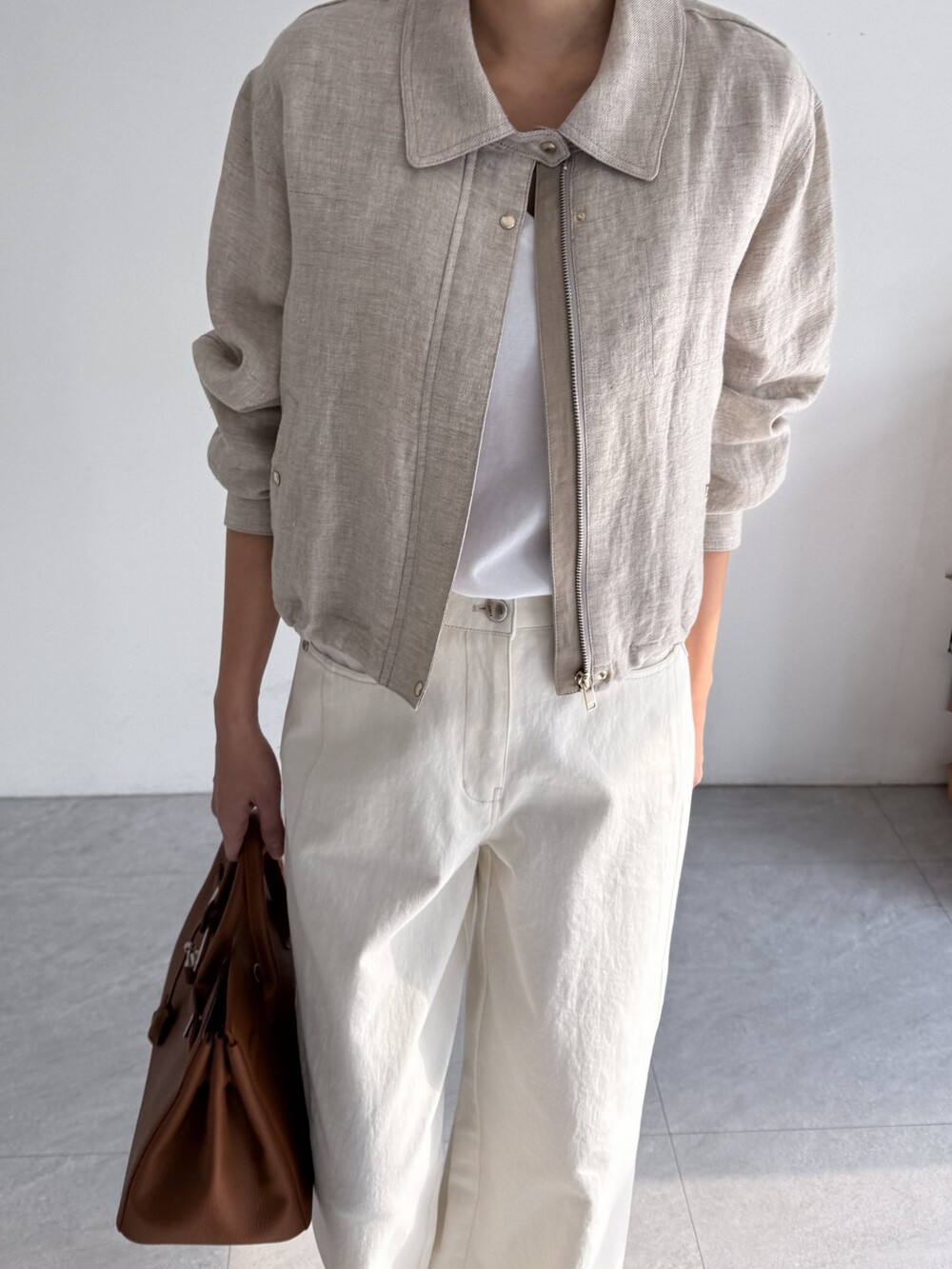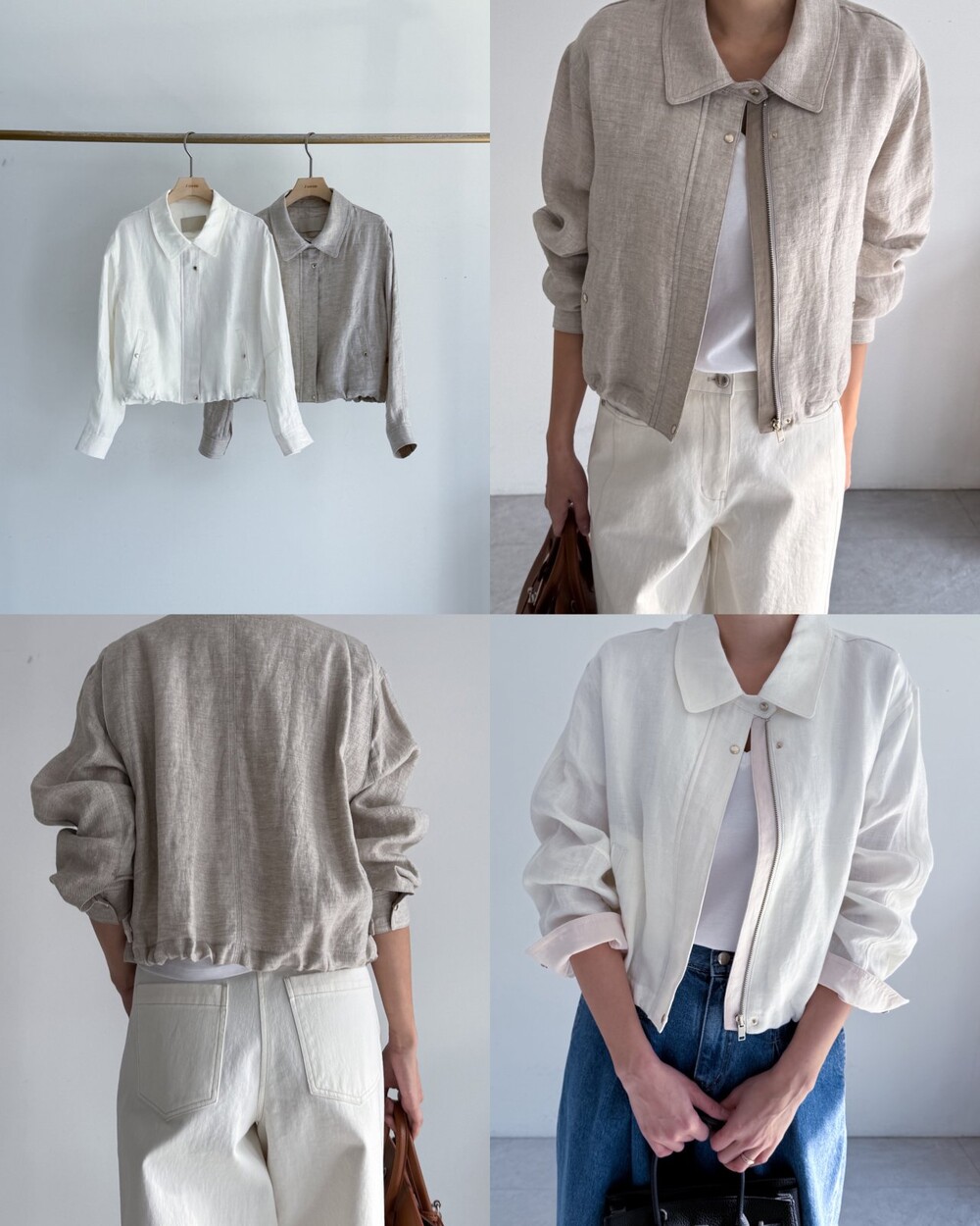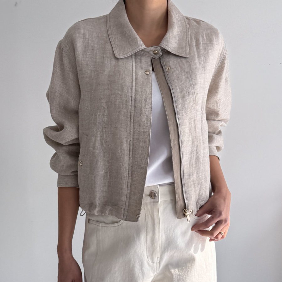 린넨 집업 크롭 점퍼