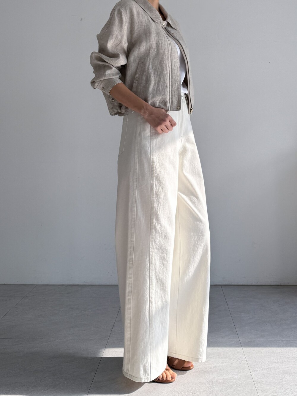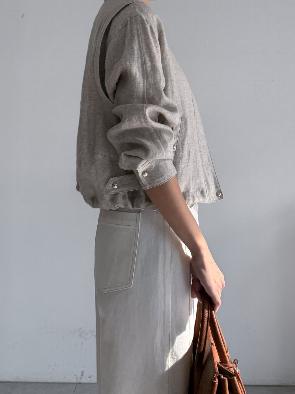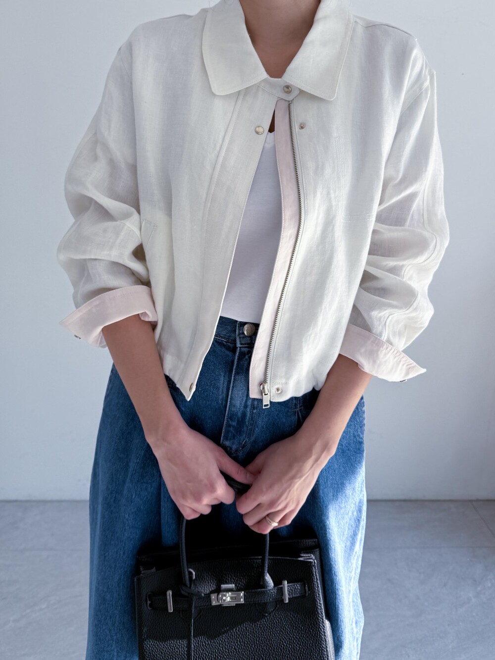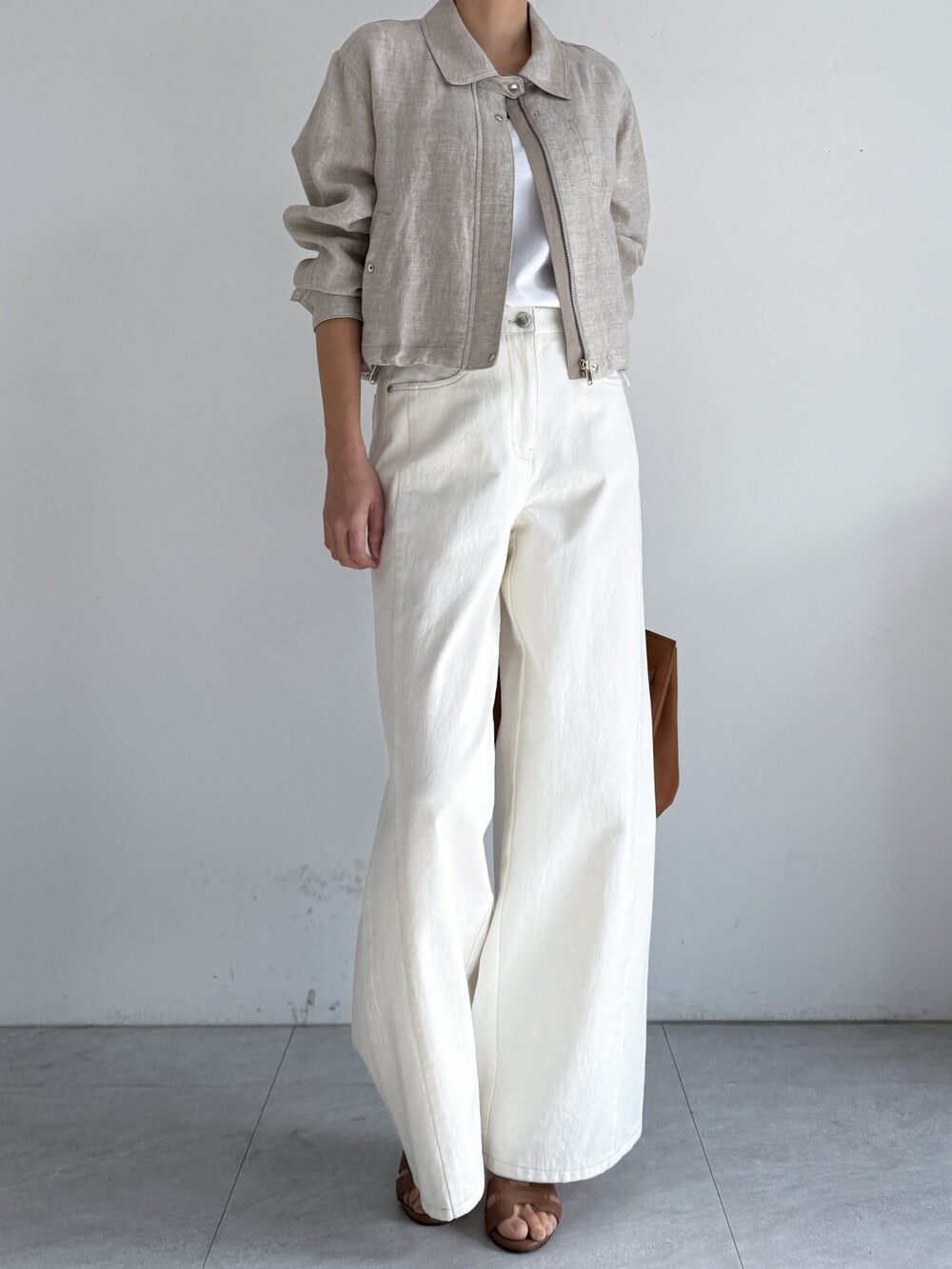린넨 집업 크롭 점퍼