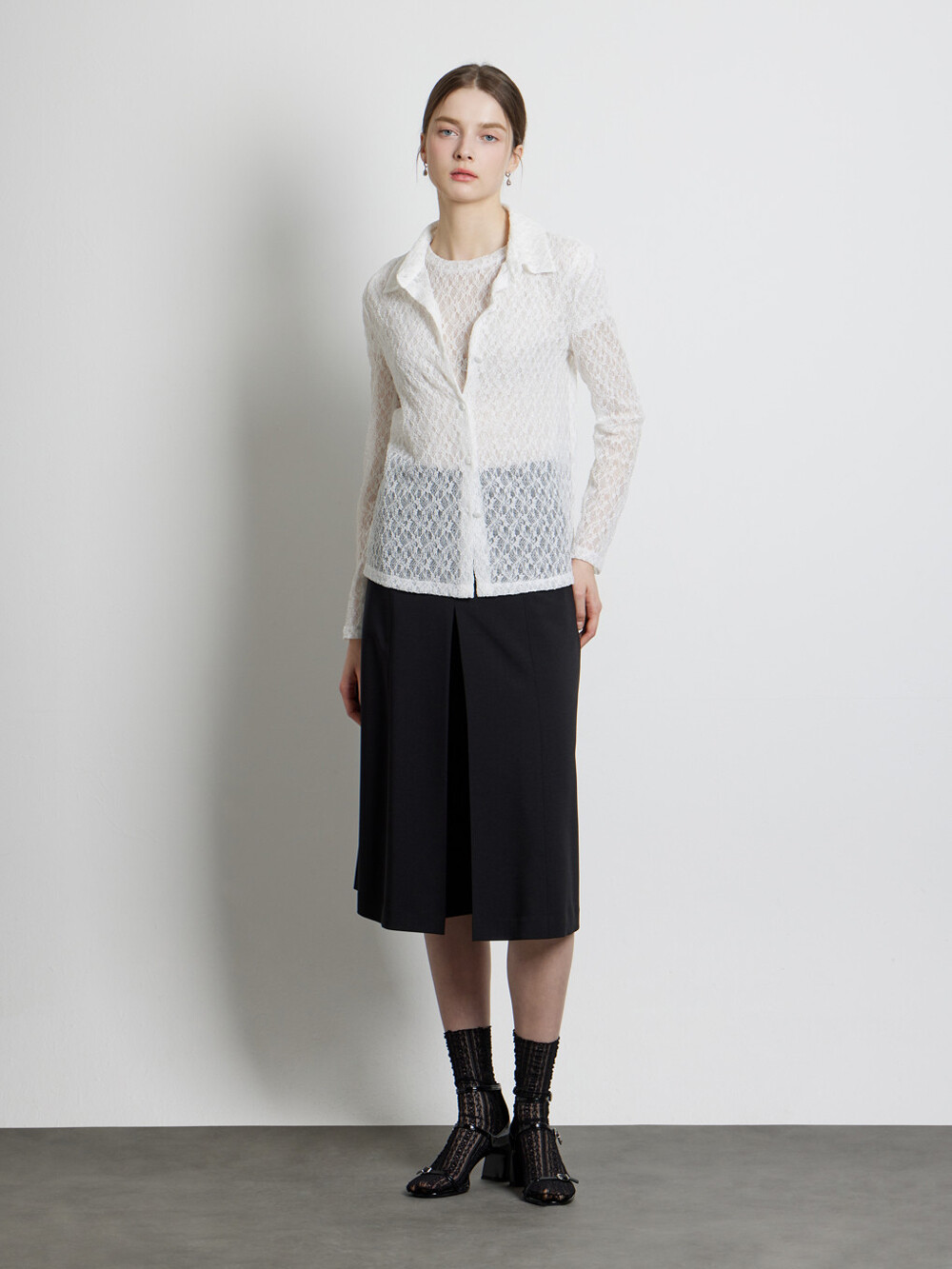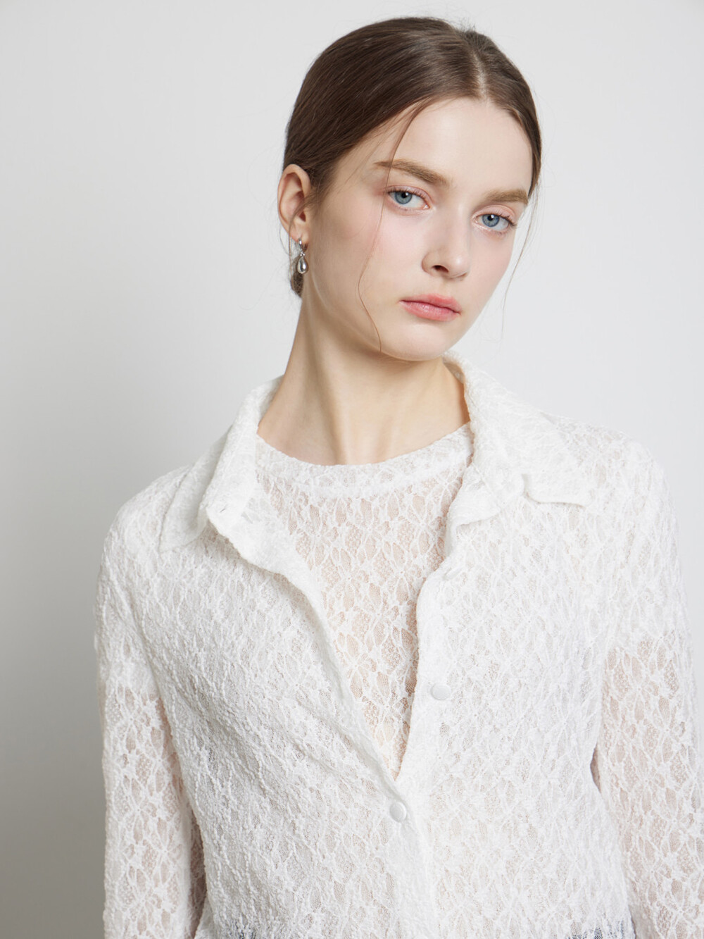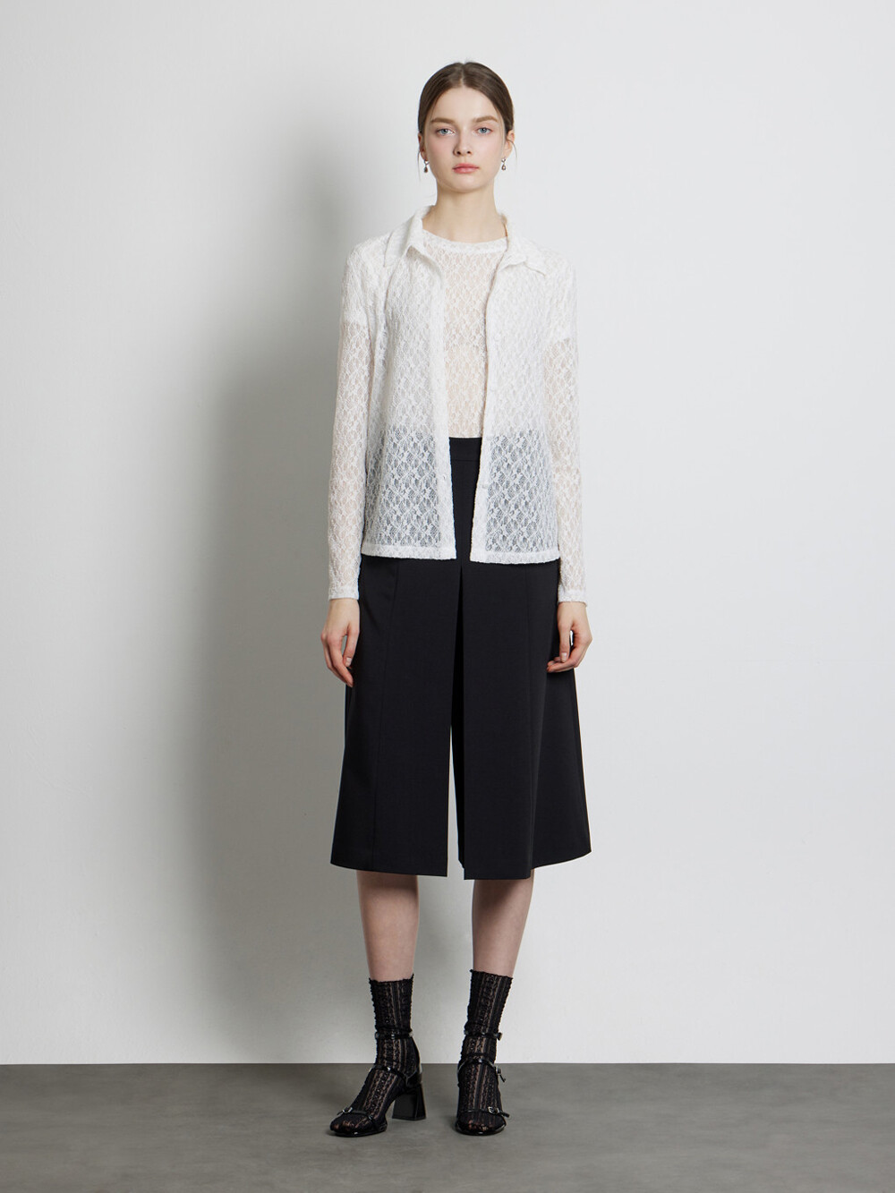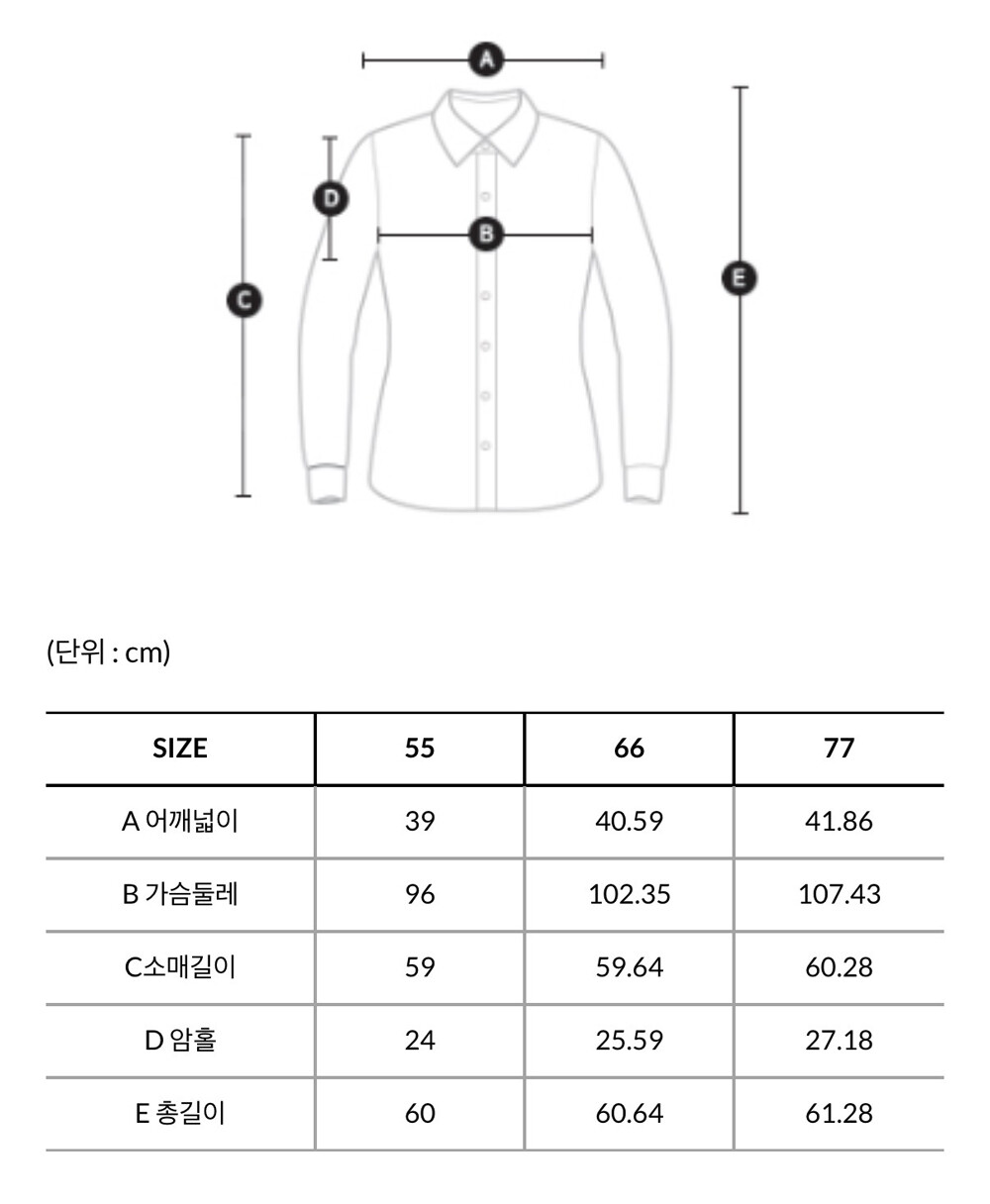 - 셔츠 카라가 적용된 풀 버튼 여밈이