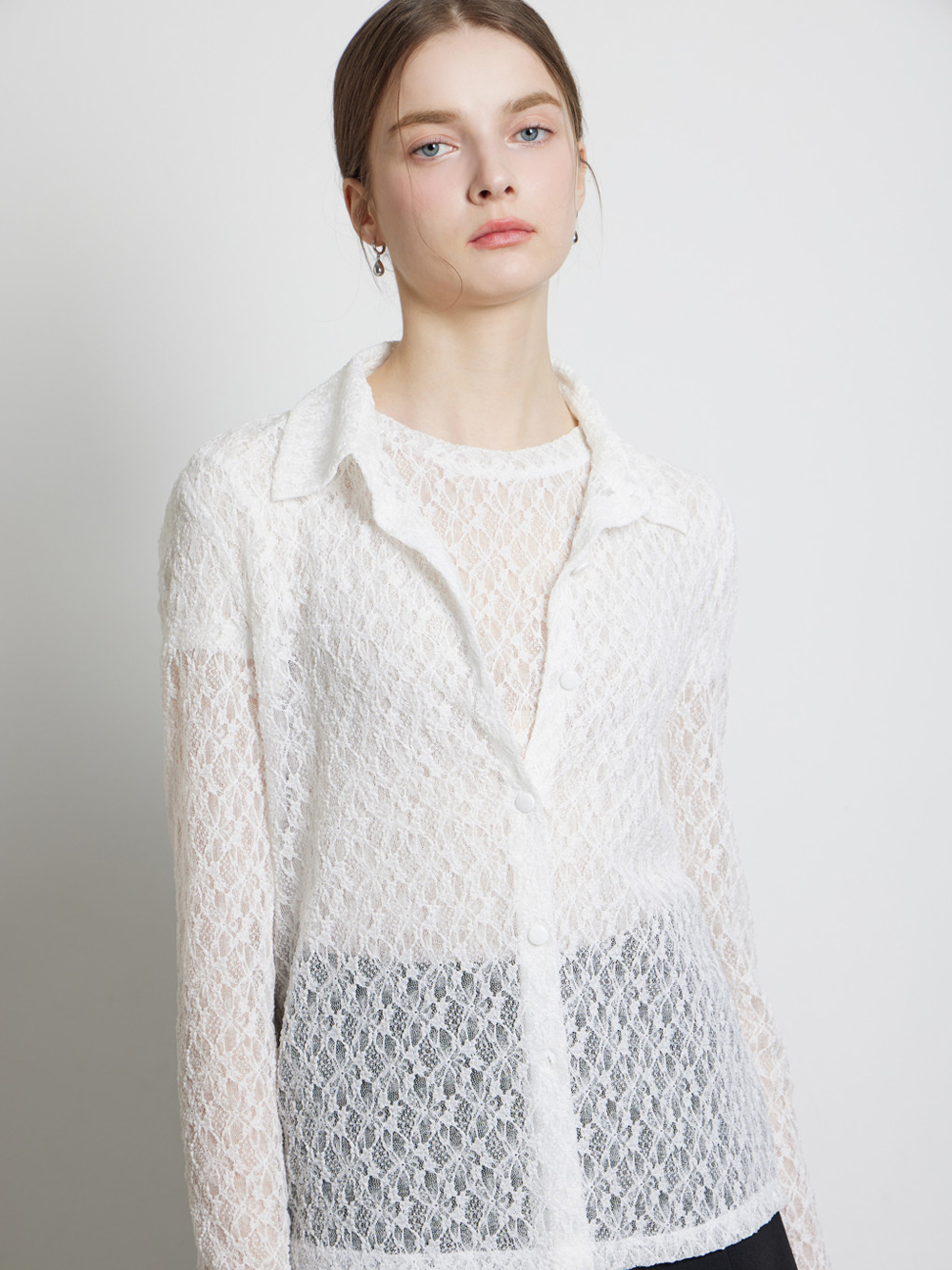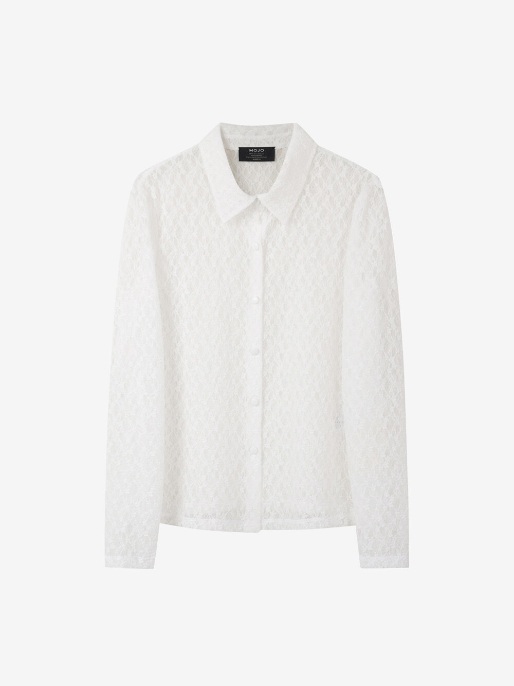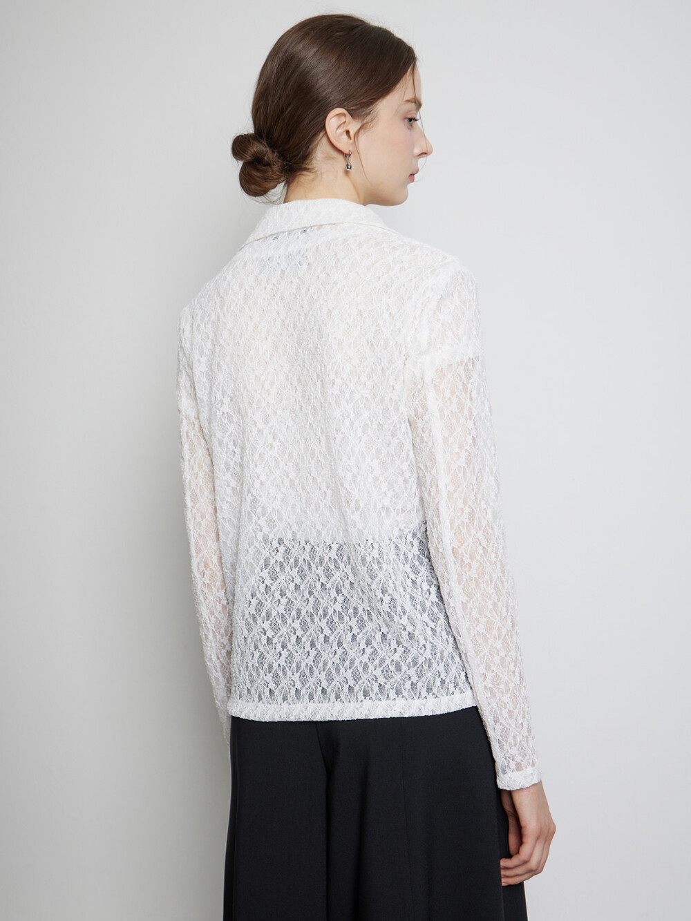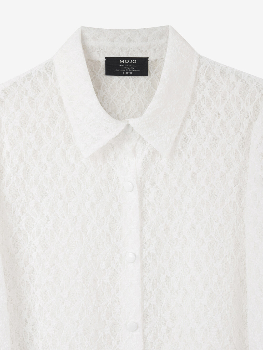- 셔츠 카라가 적용된 풀 버튼 여밈이