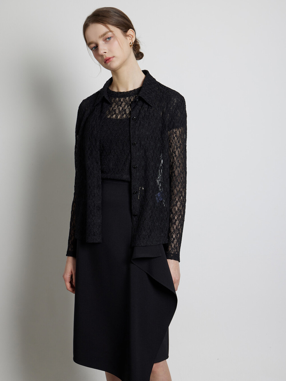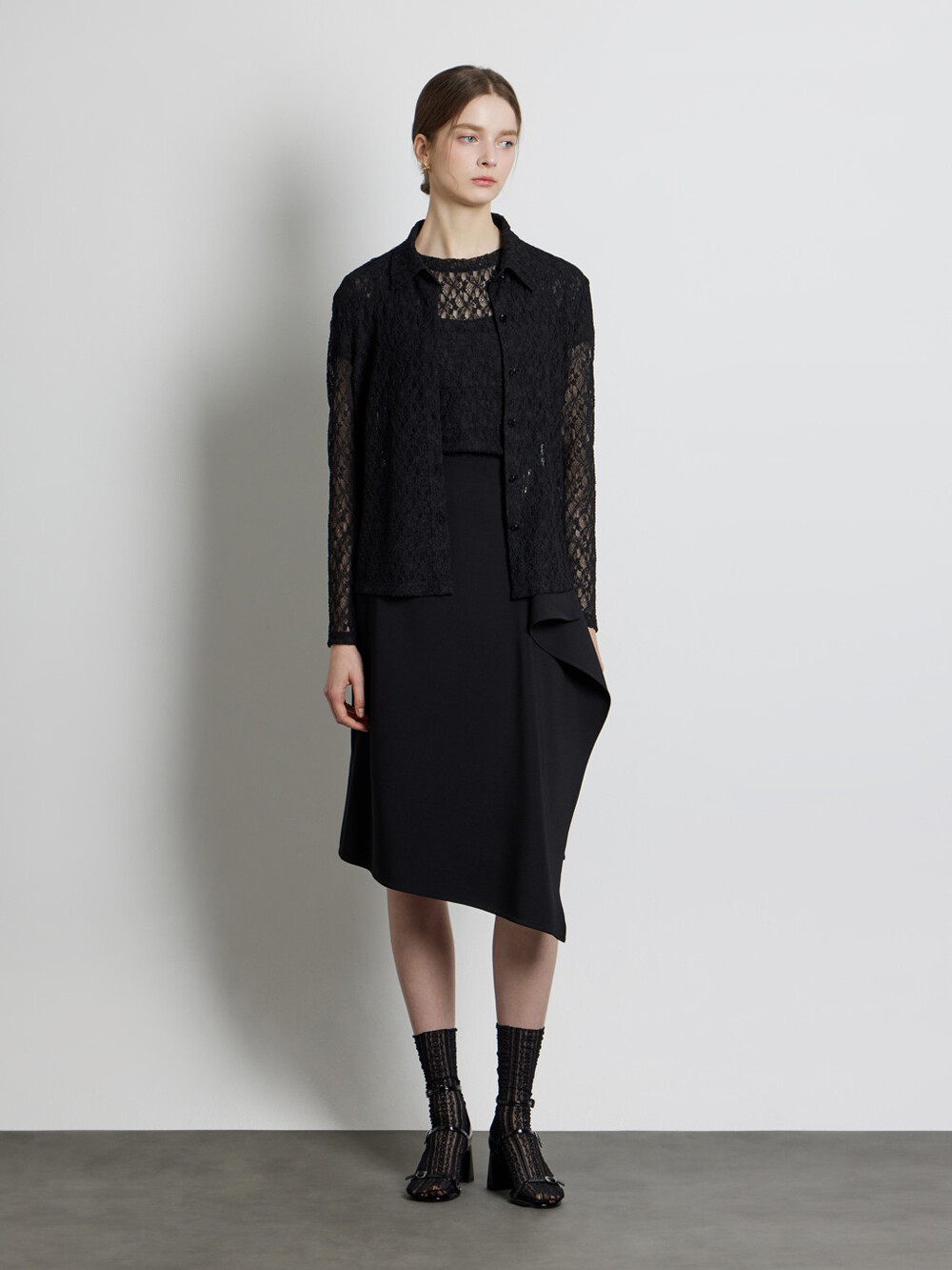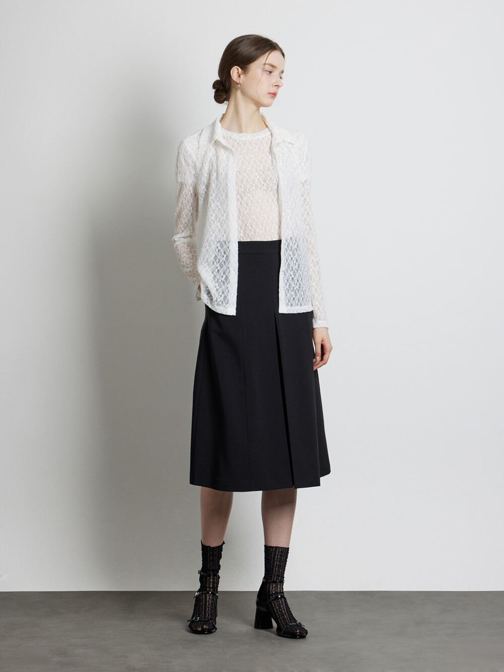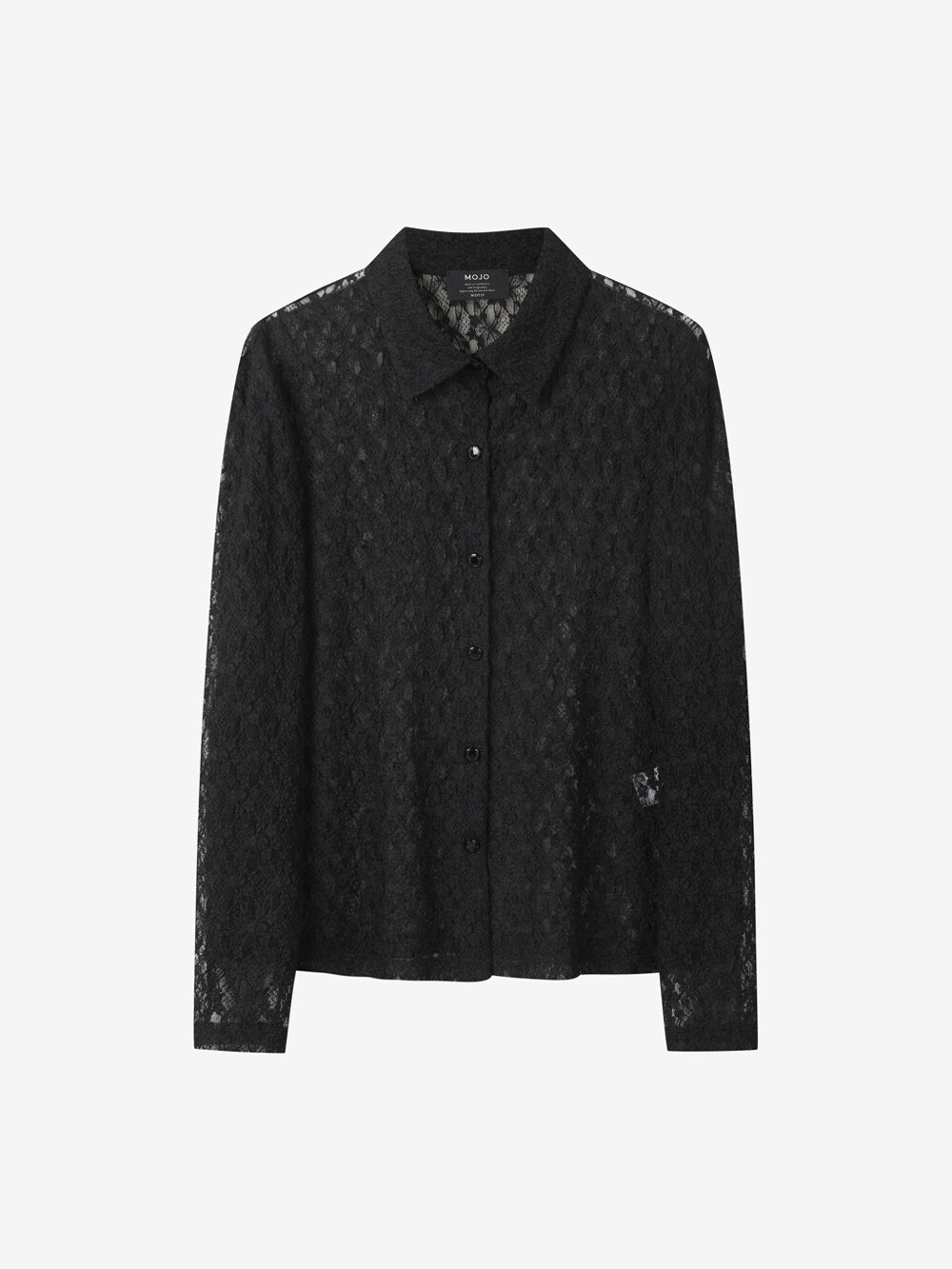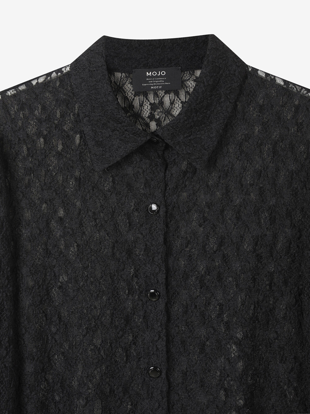 - 셔츠 카라가 적용된 풀 버튼 여밈이