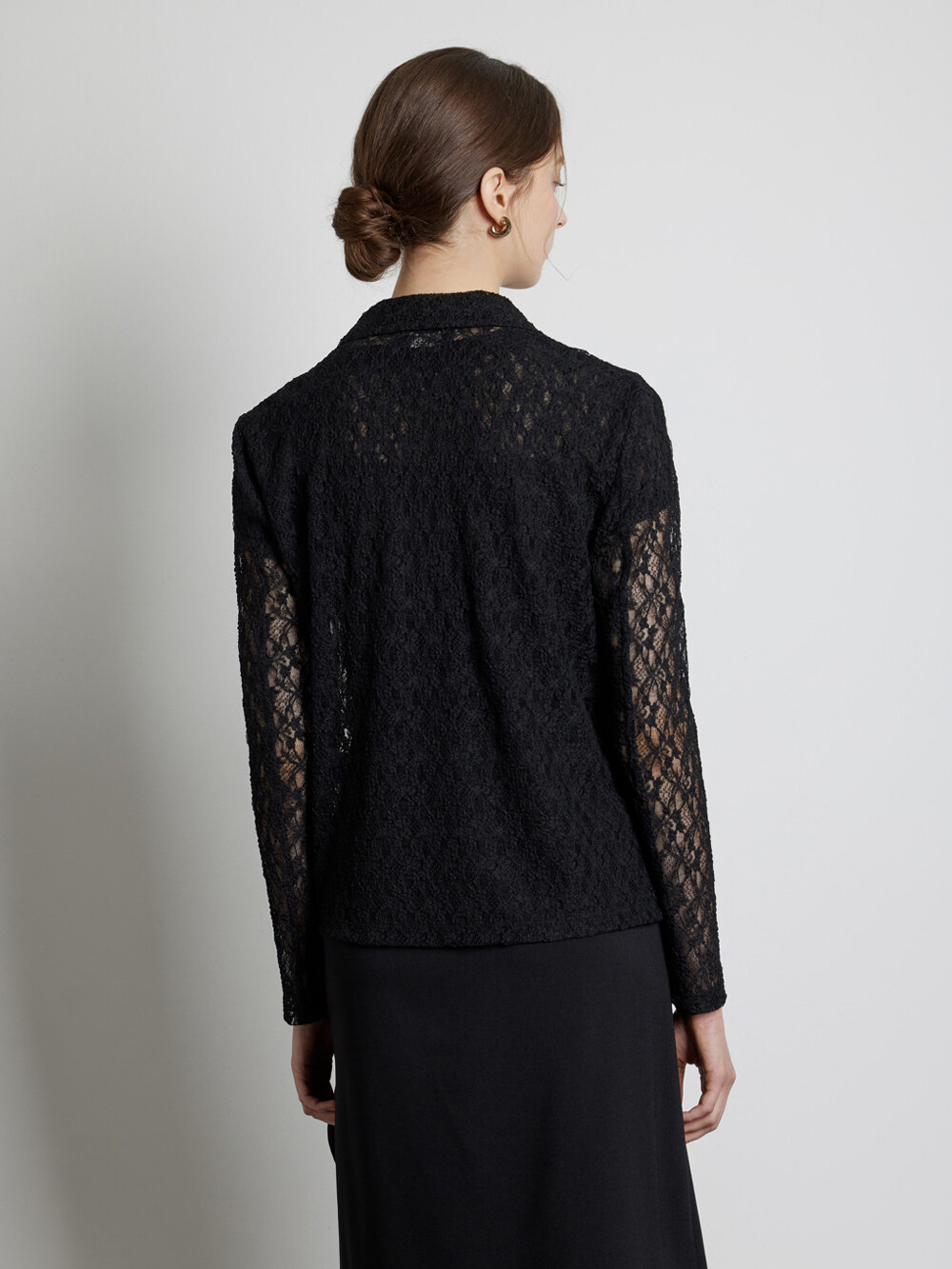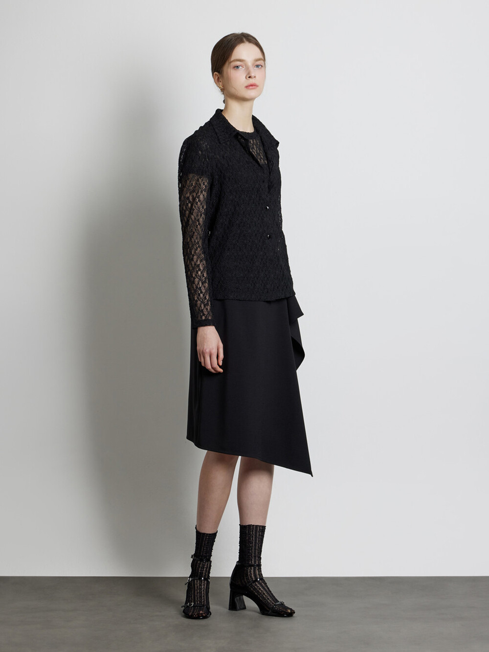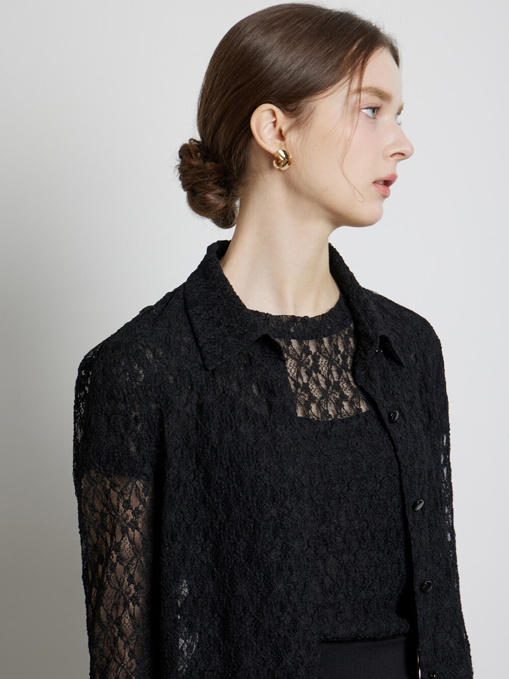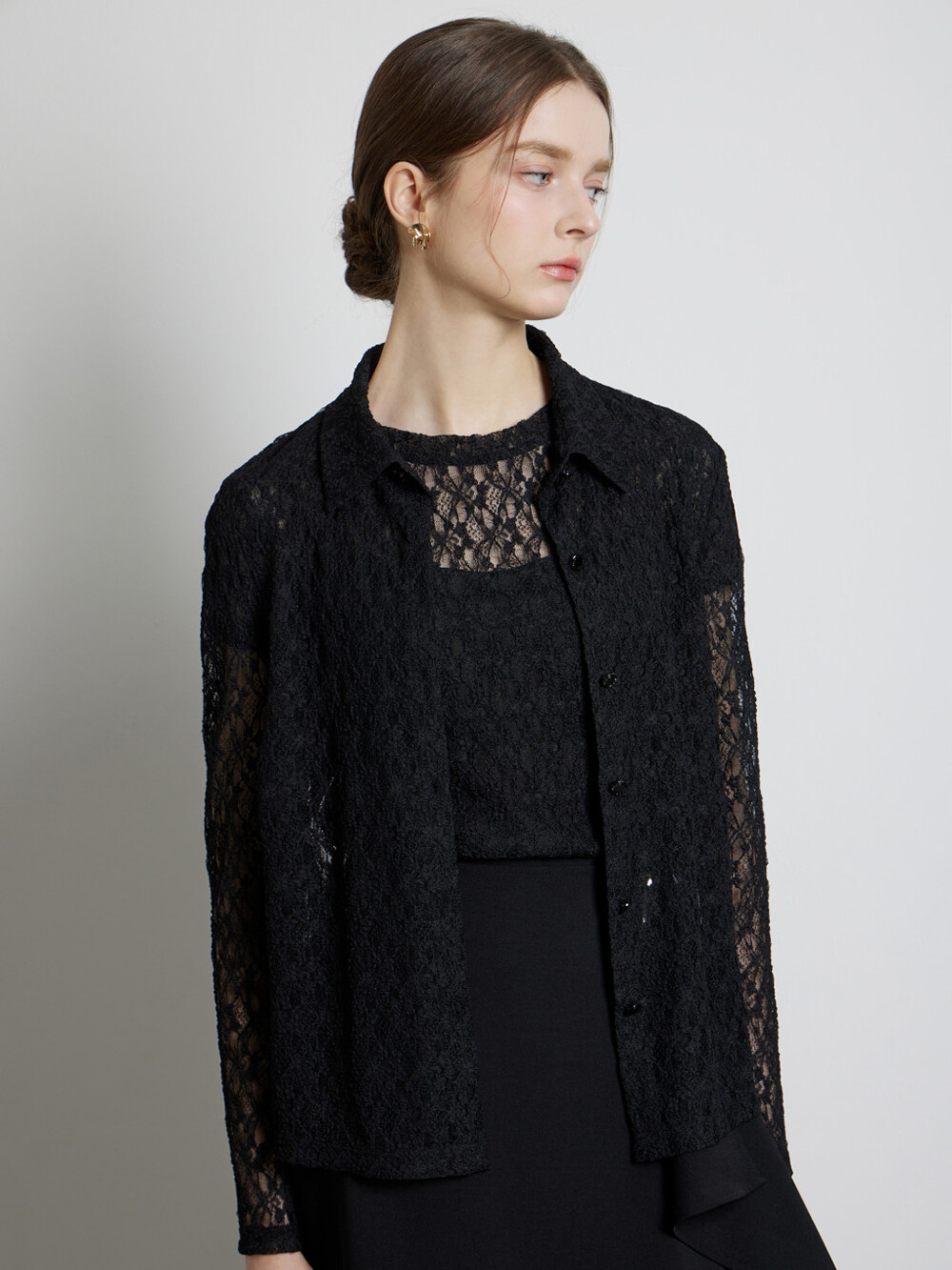 - 셔츠 카라가 적용된 풀 버튼 여밈이
