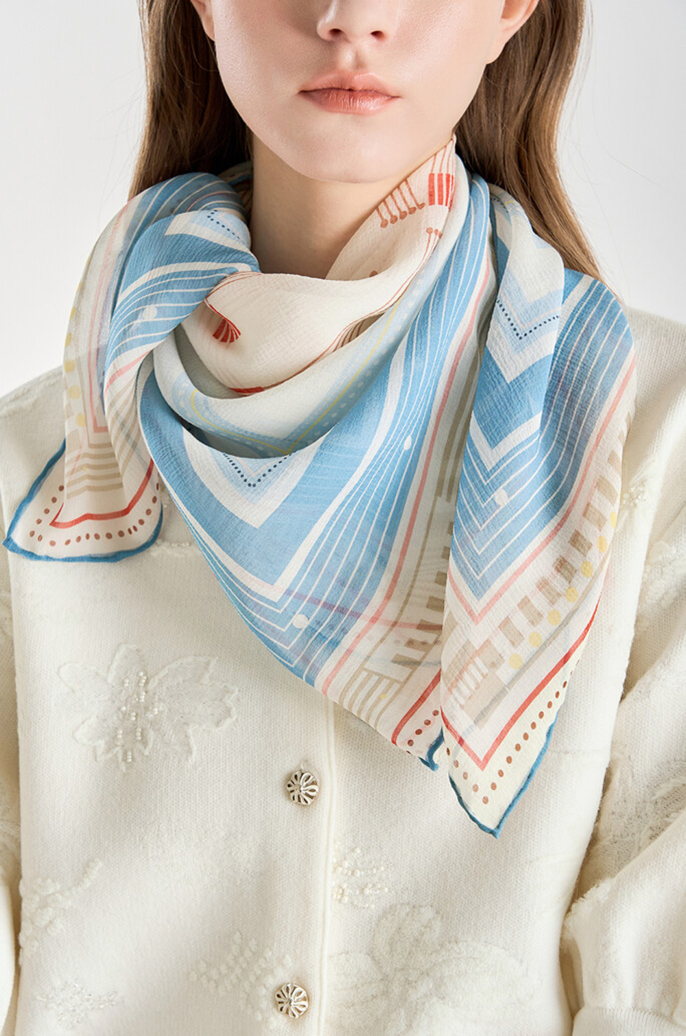 랑방컬렉션 실크 컬러 라인 프린티드 스카프
