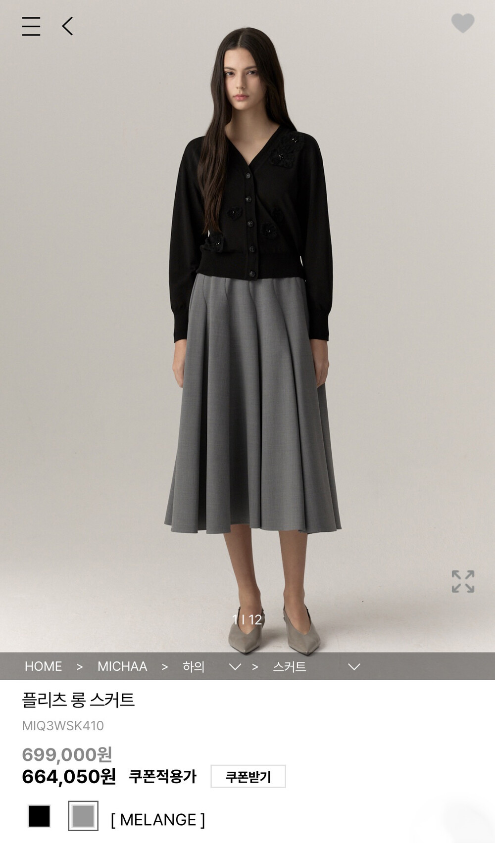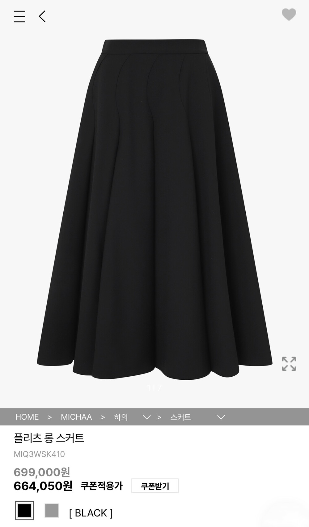 미샤 플리츠 롱 스커트