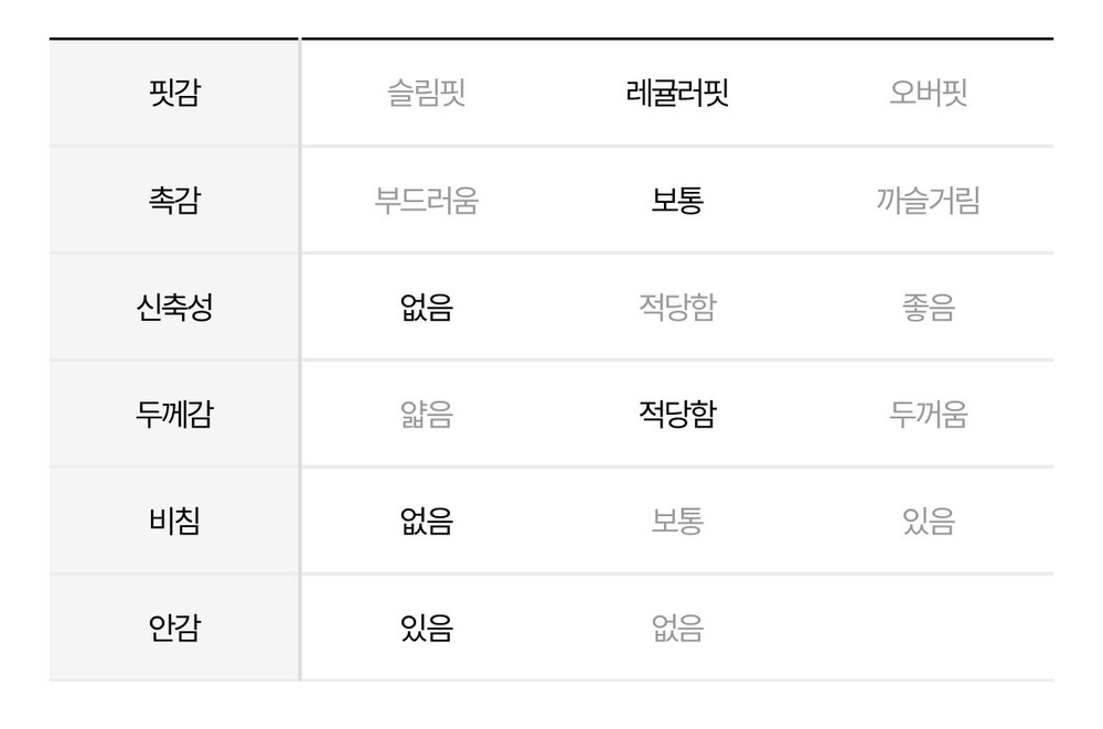 겉감 : 모 49%, 폴리에스터 46%, 폴리우레탄 5%