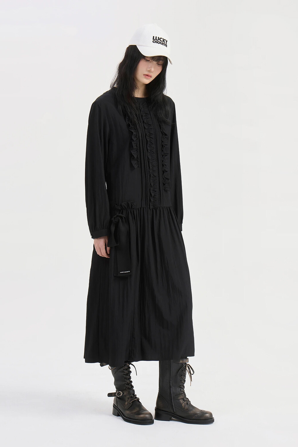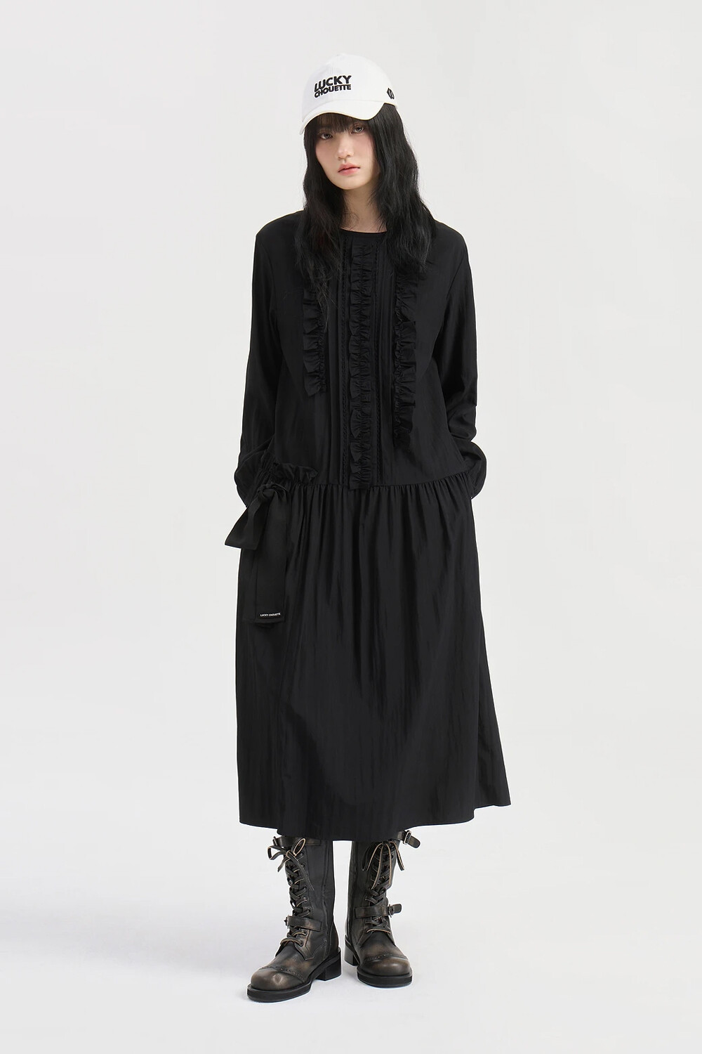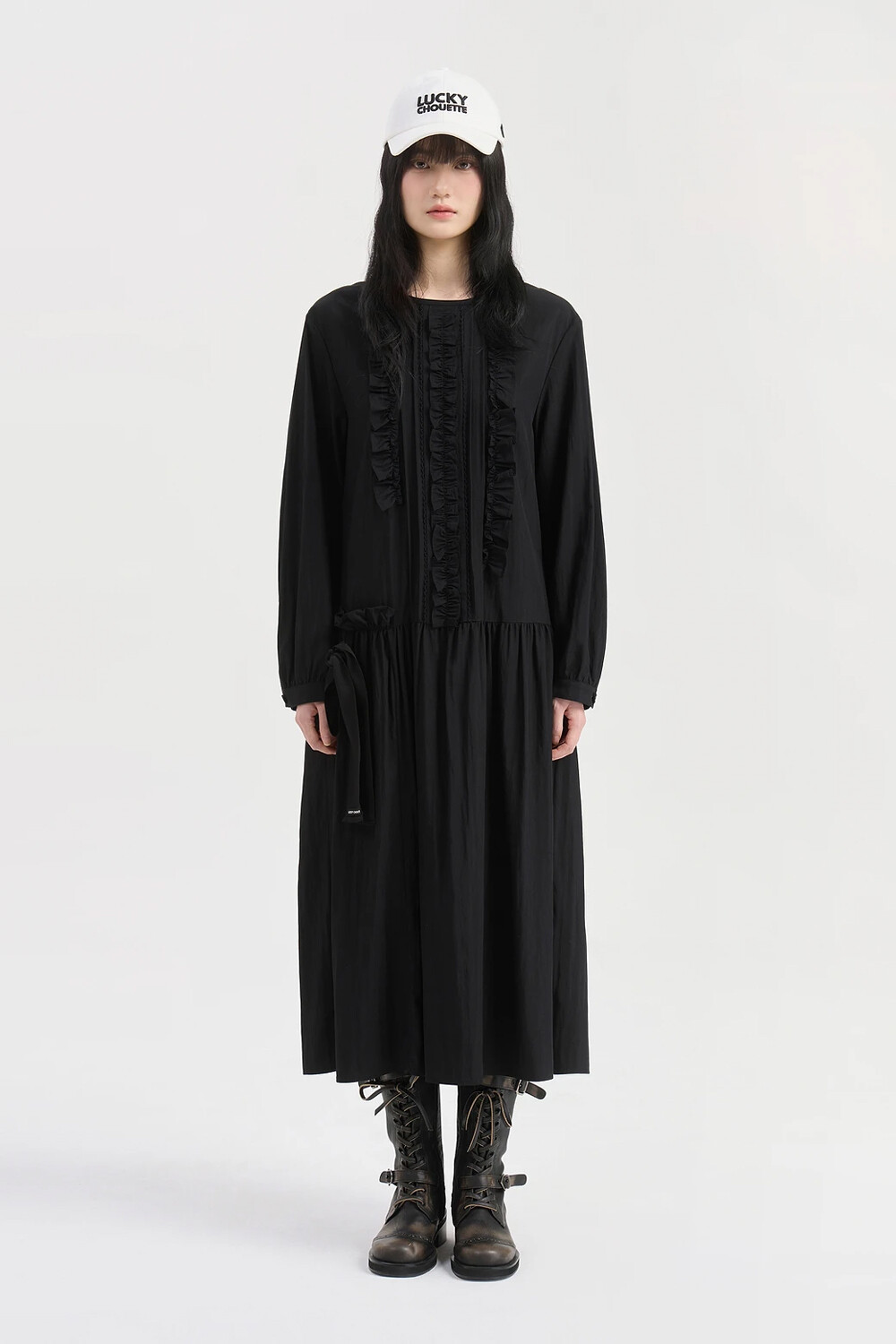 럭키슈에뜨 프릴 포인트 라운드 롱 드레스