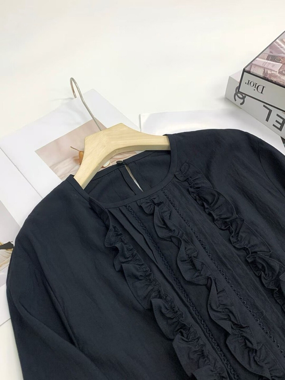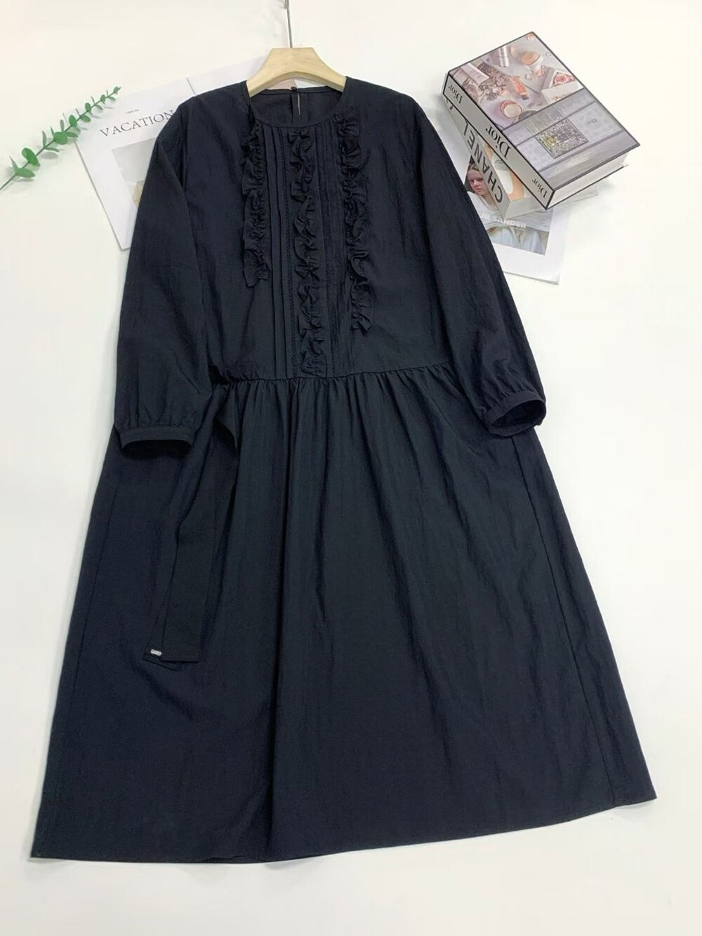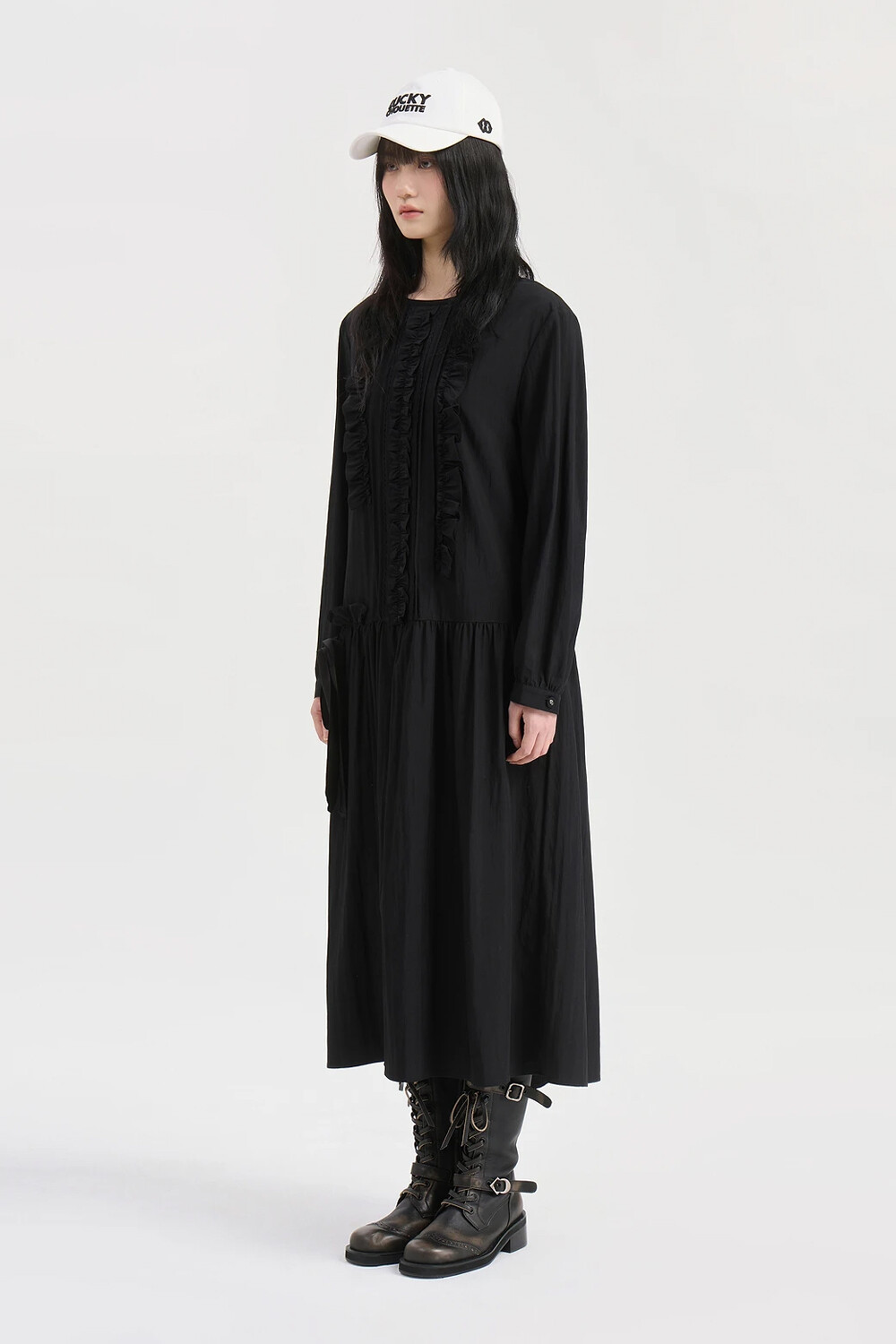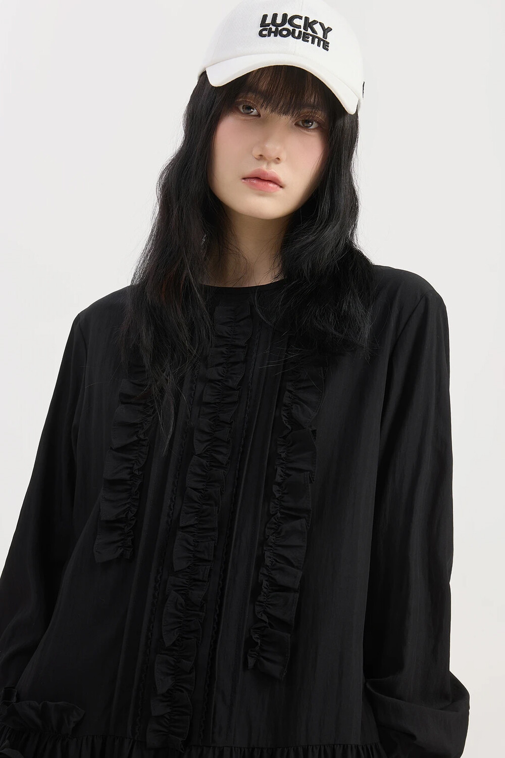 럭키슈에뜨 프릴 포인트 라운드 롱 드레스
