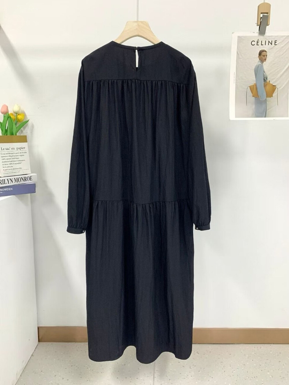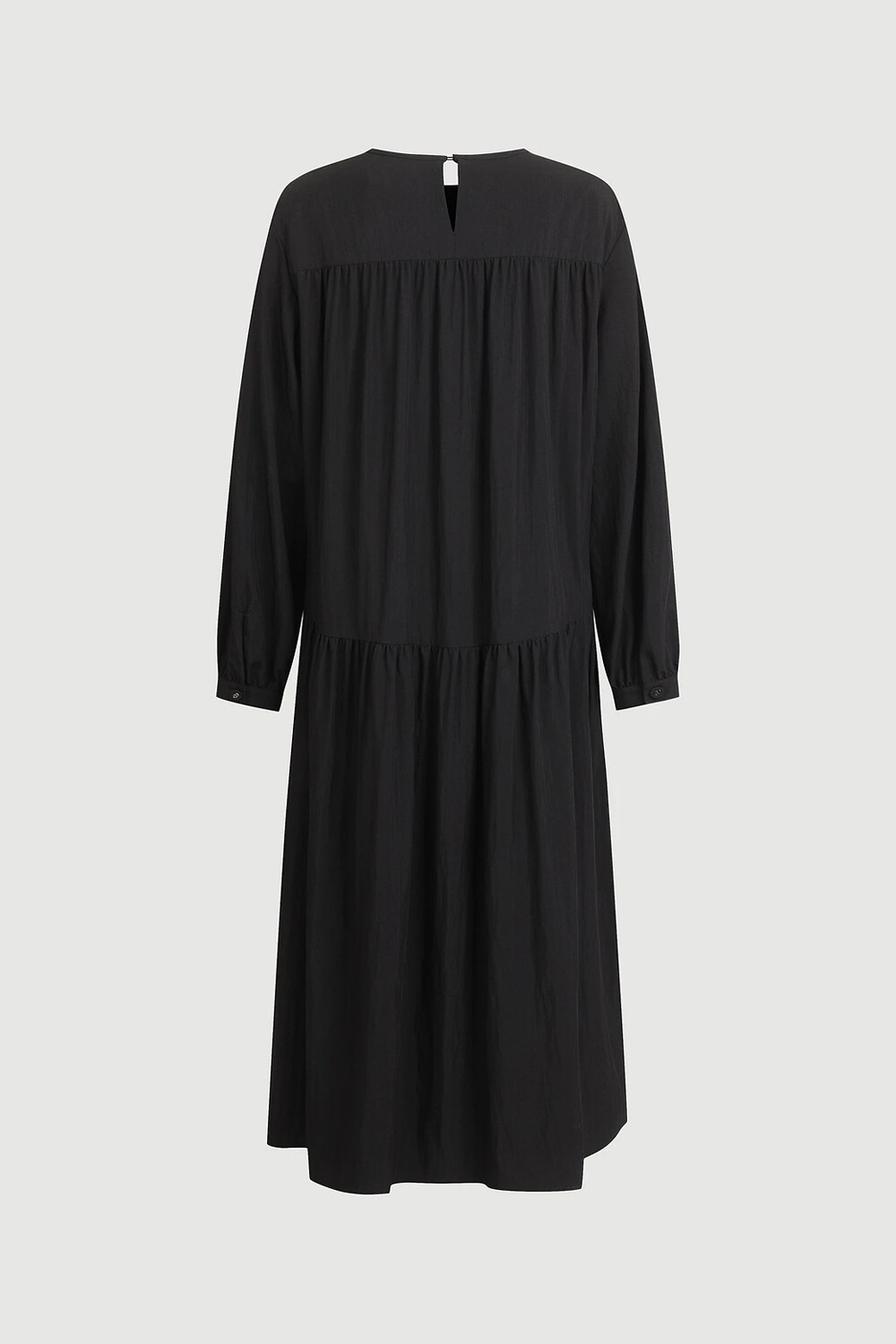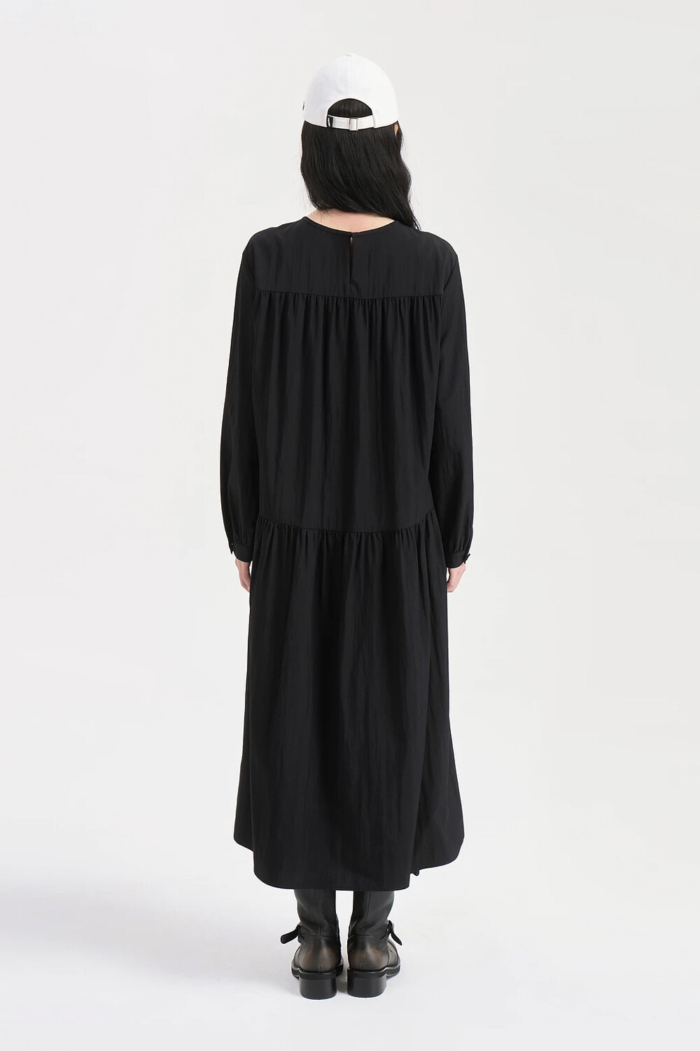 - 여유 있는 실루엣의 라운드넥 롱 원피스.