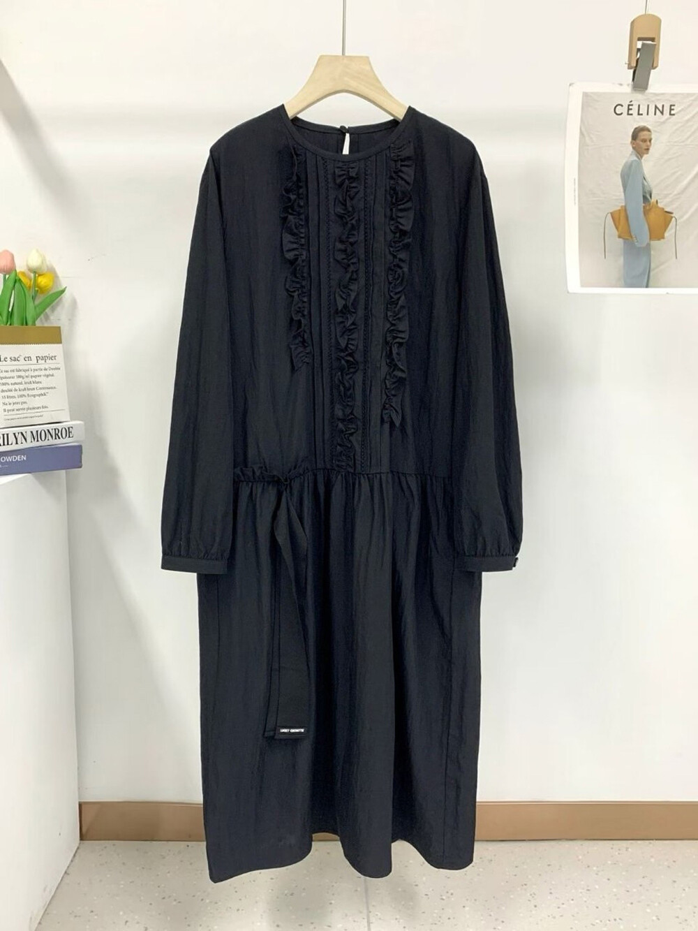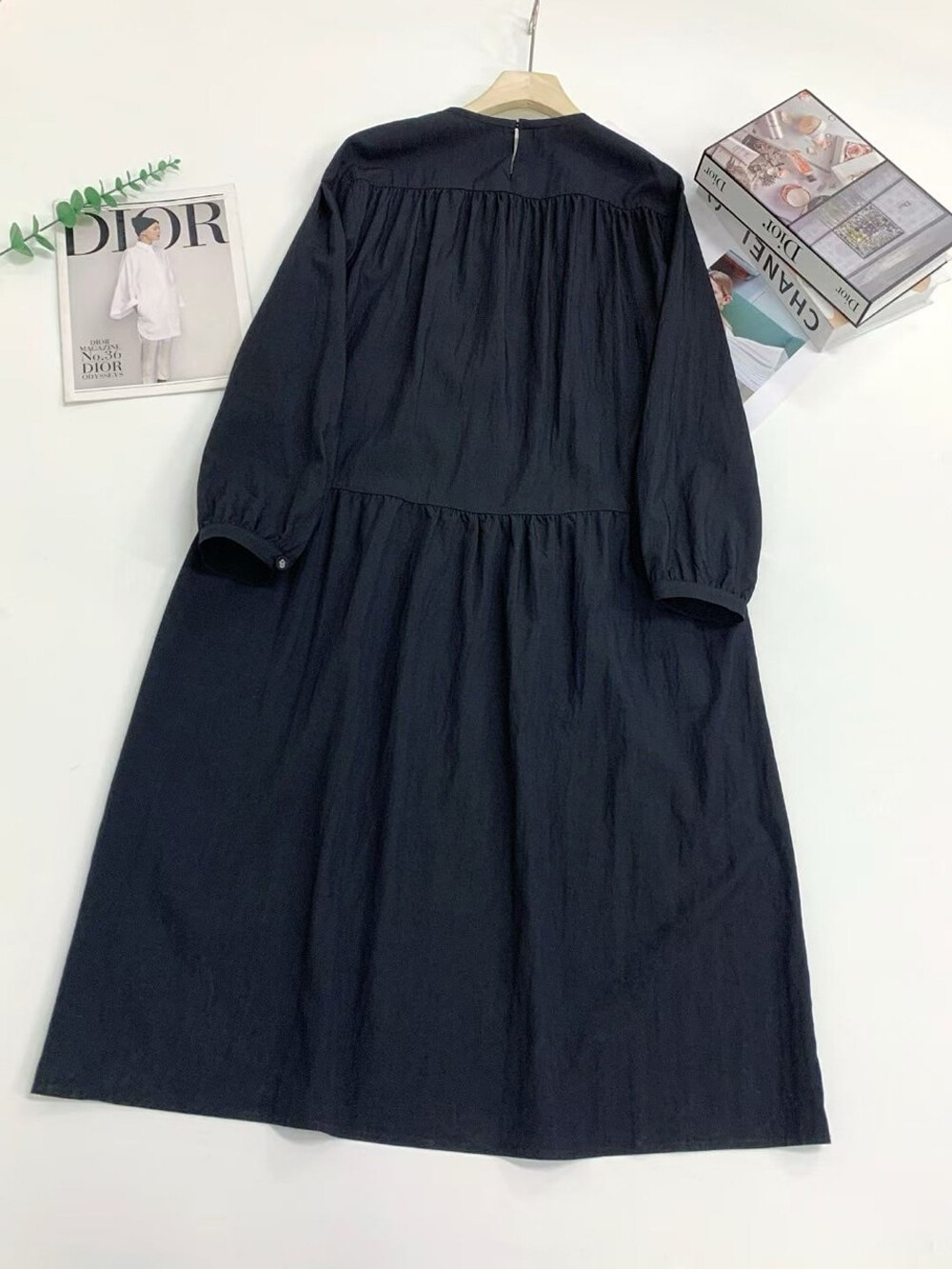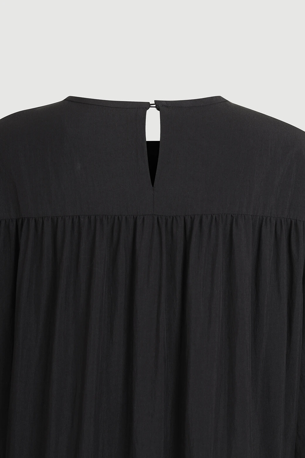 - 여유 있는 실루엣의 라운드넥 롱 원피스.