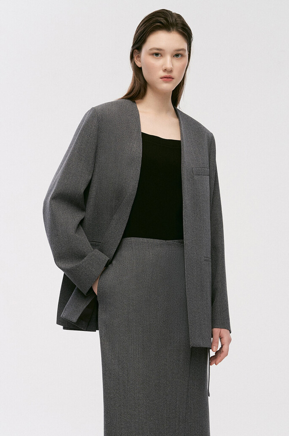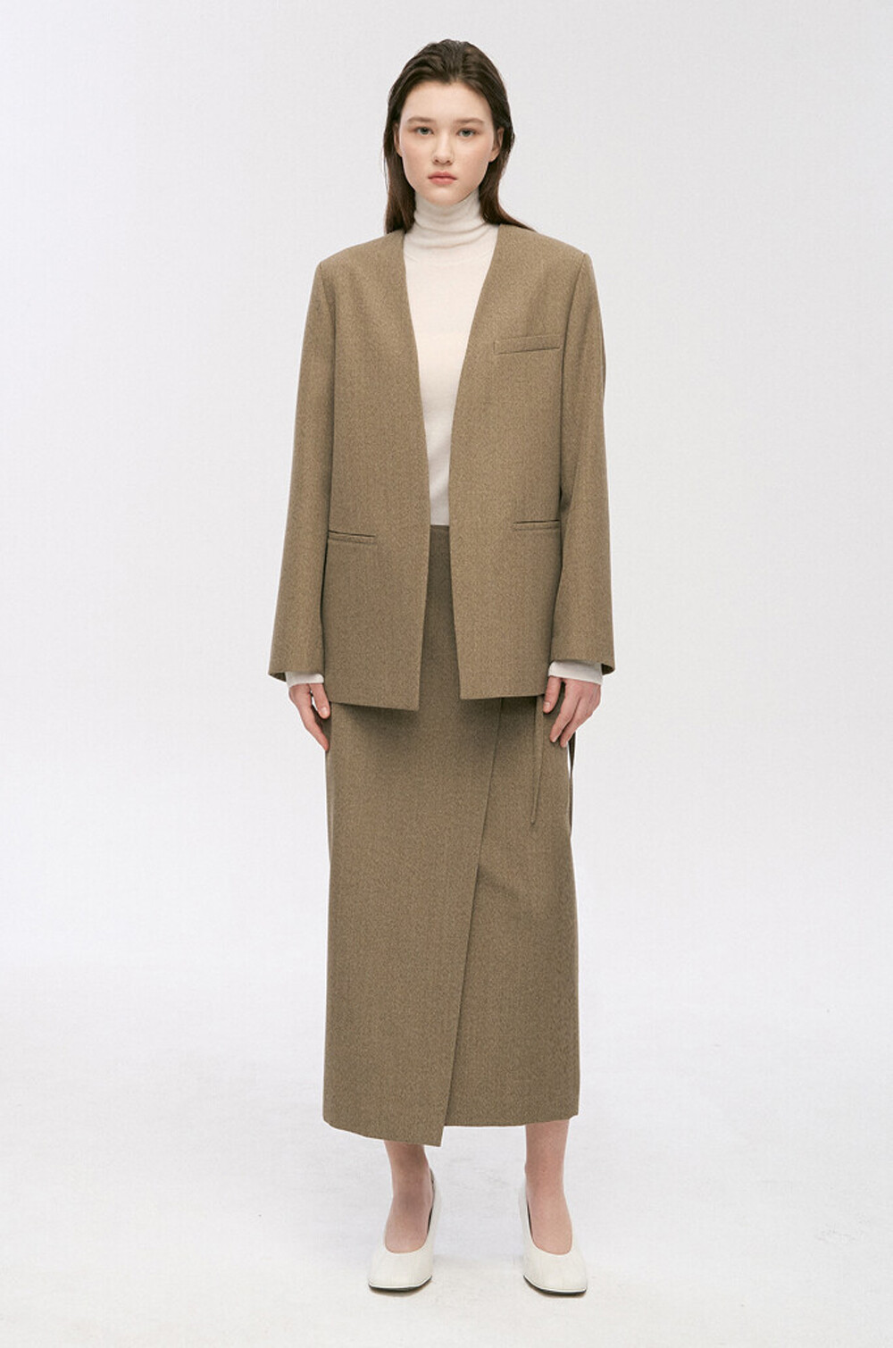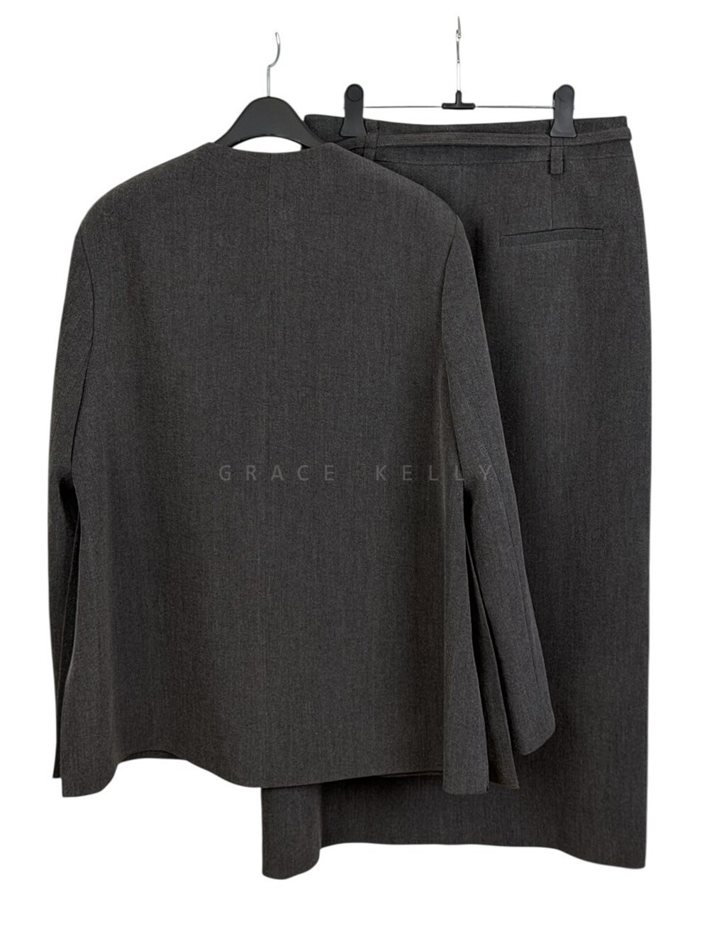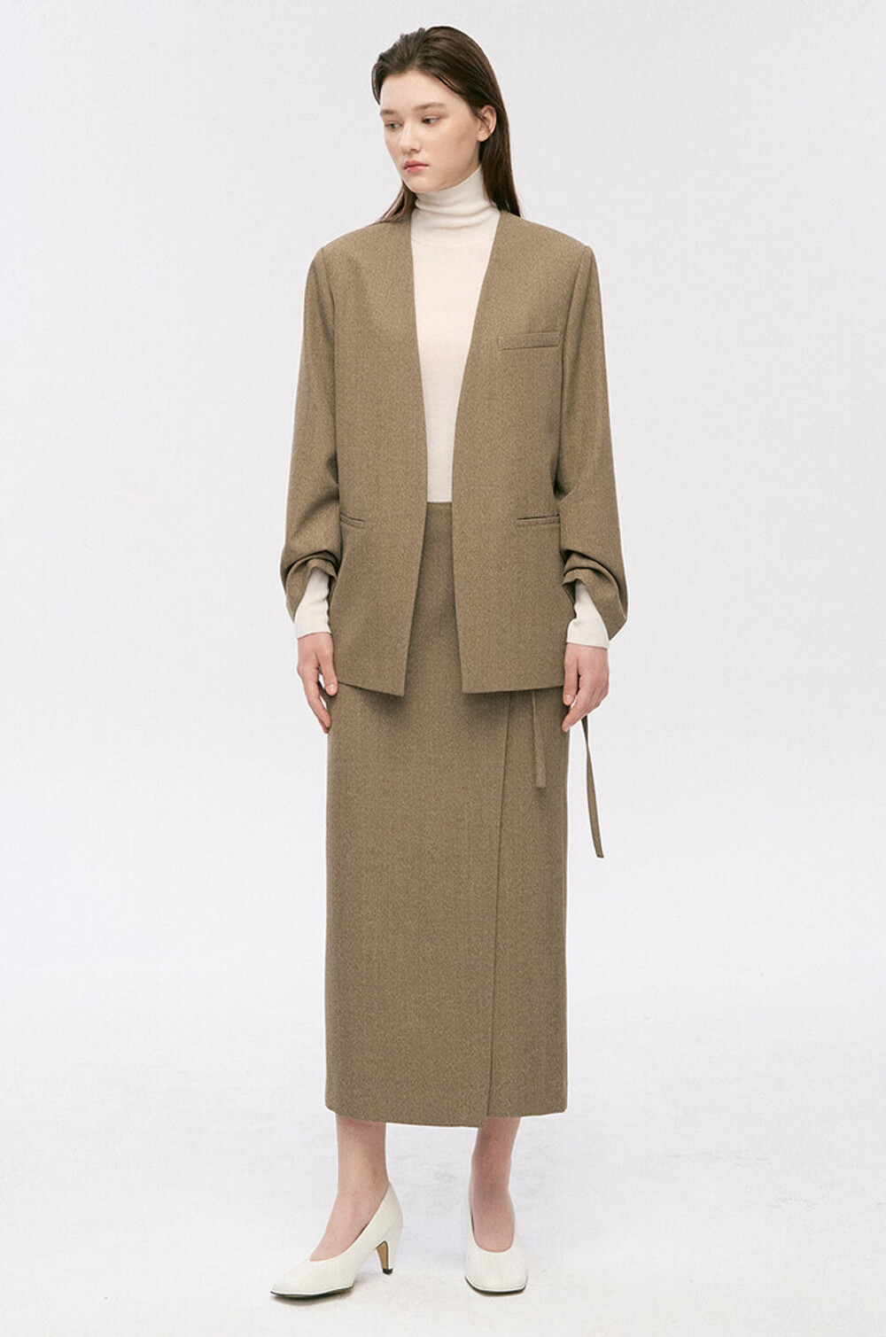 타임 울 칼라리스 슬릿 오픈 자켓 & 스커트