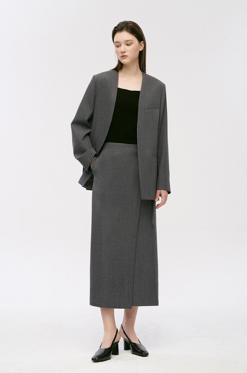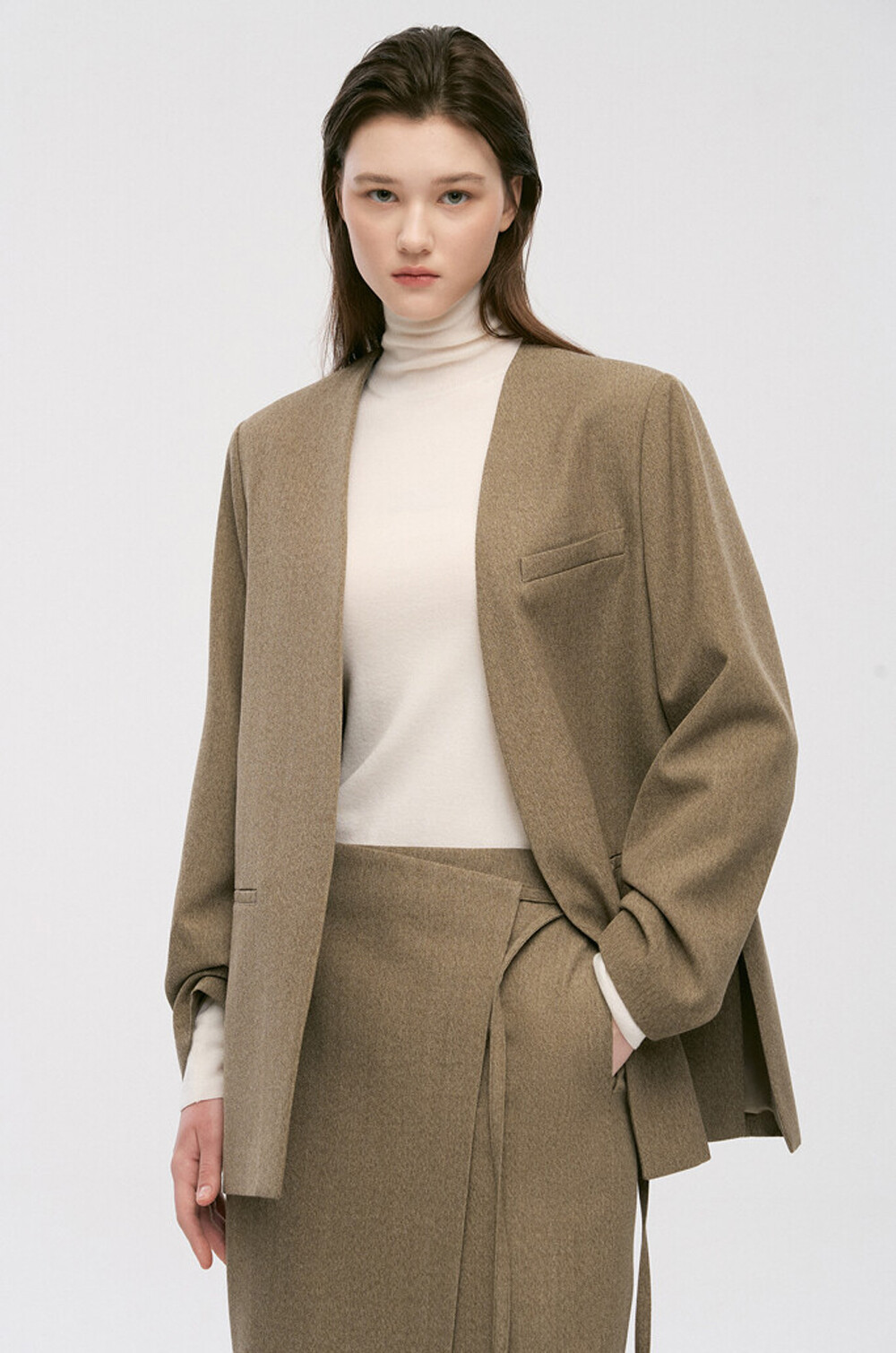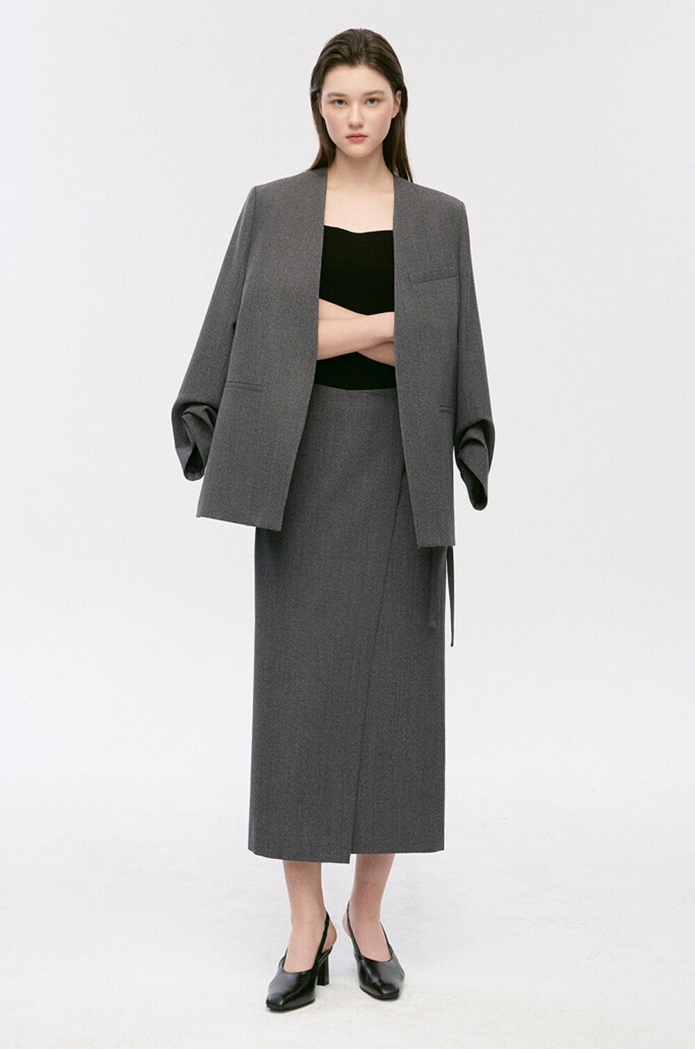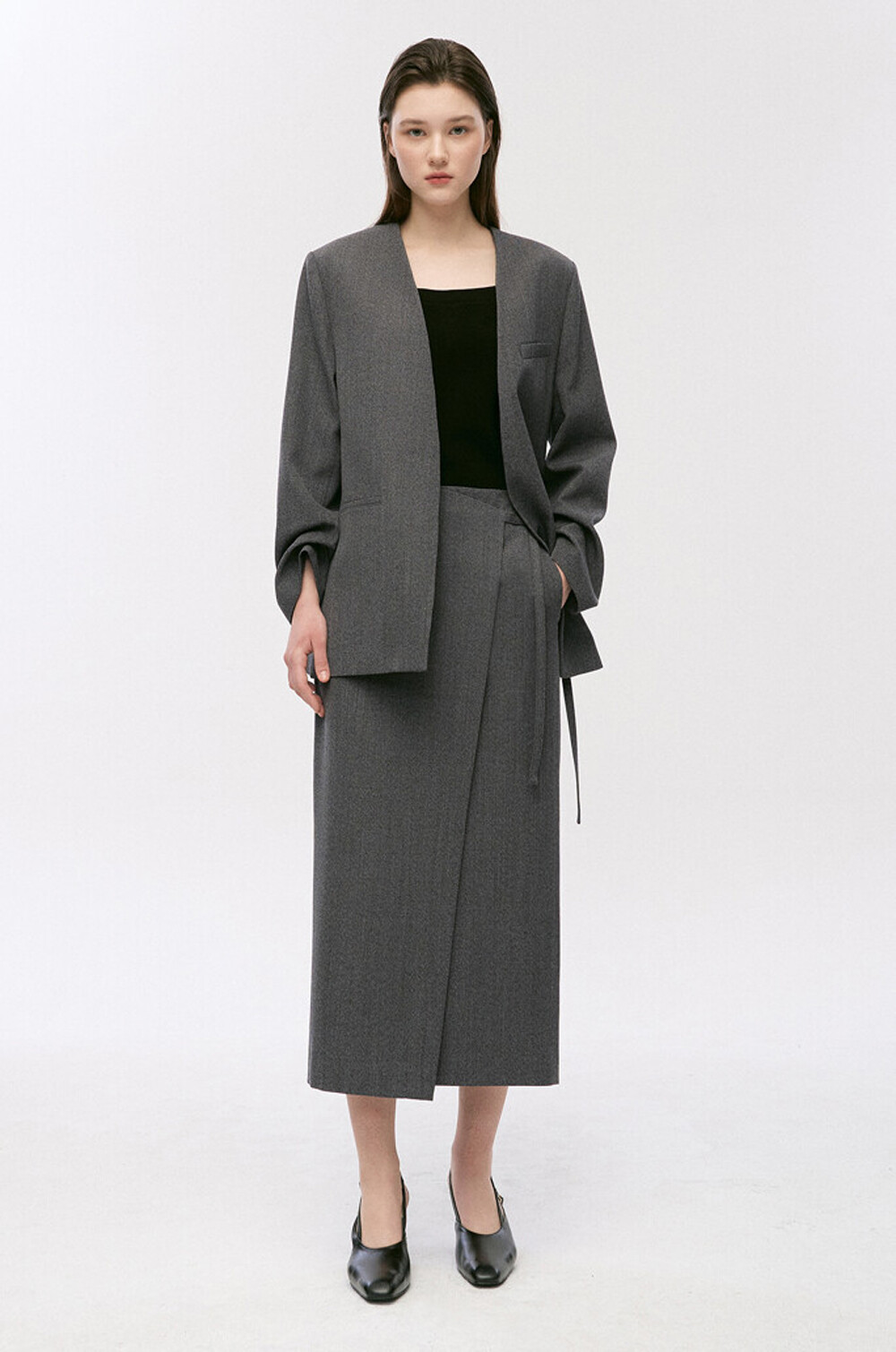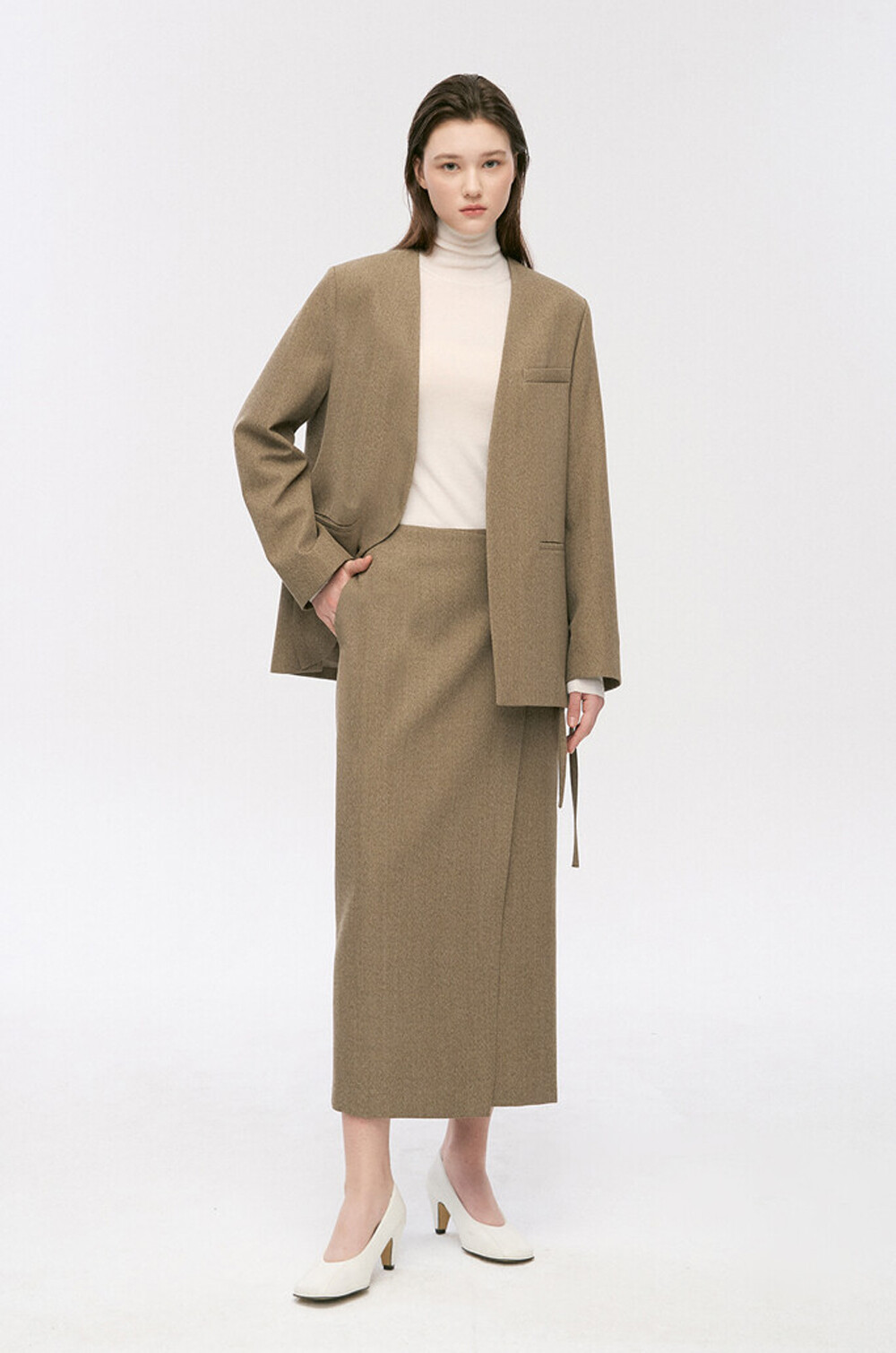 타임 울 칼라리스 슬릿 오픈 자켓 & 스커트
