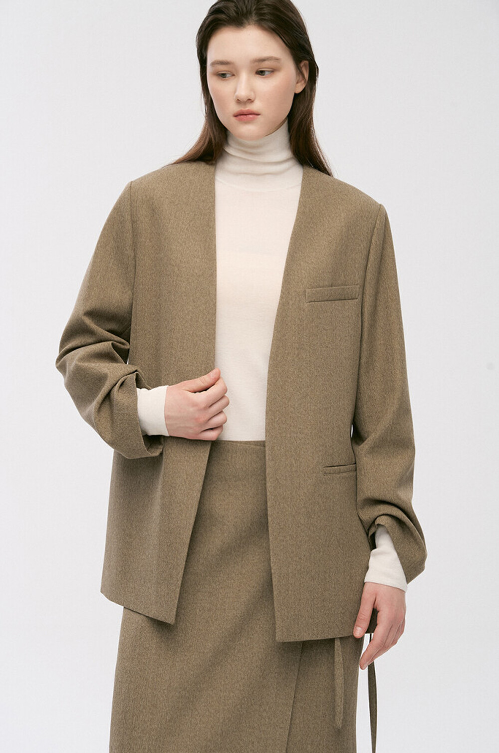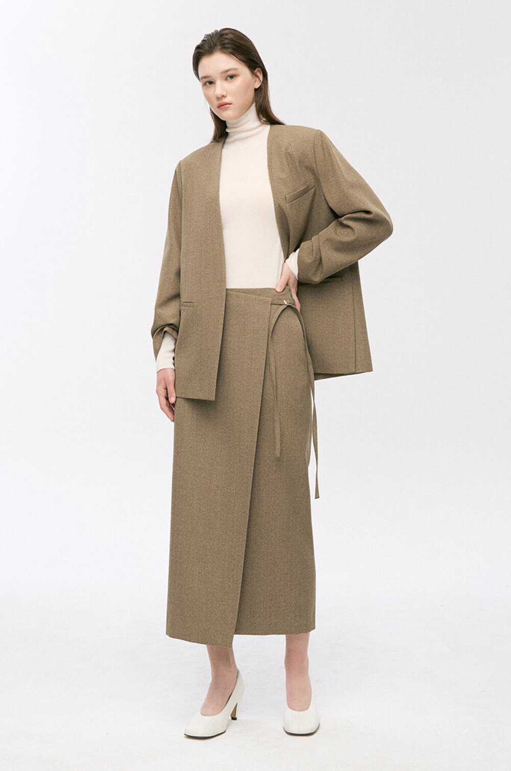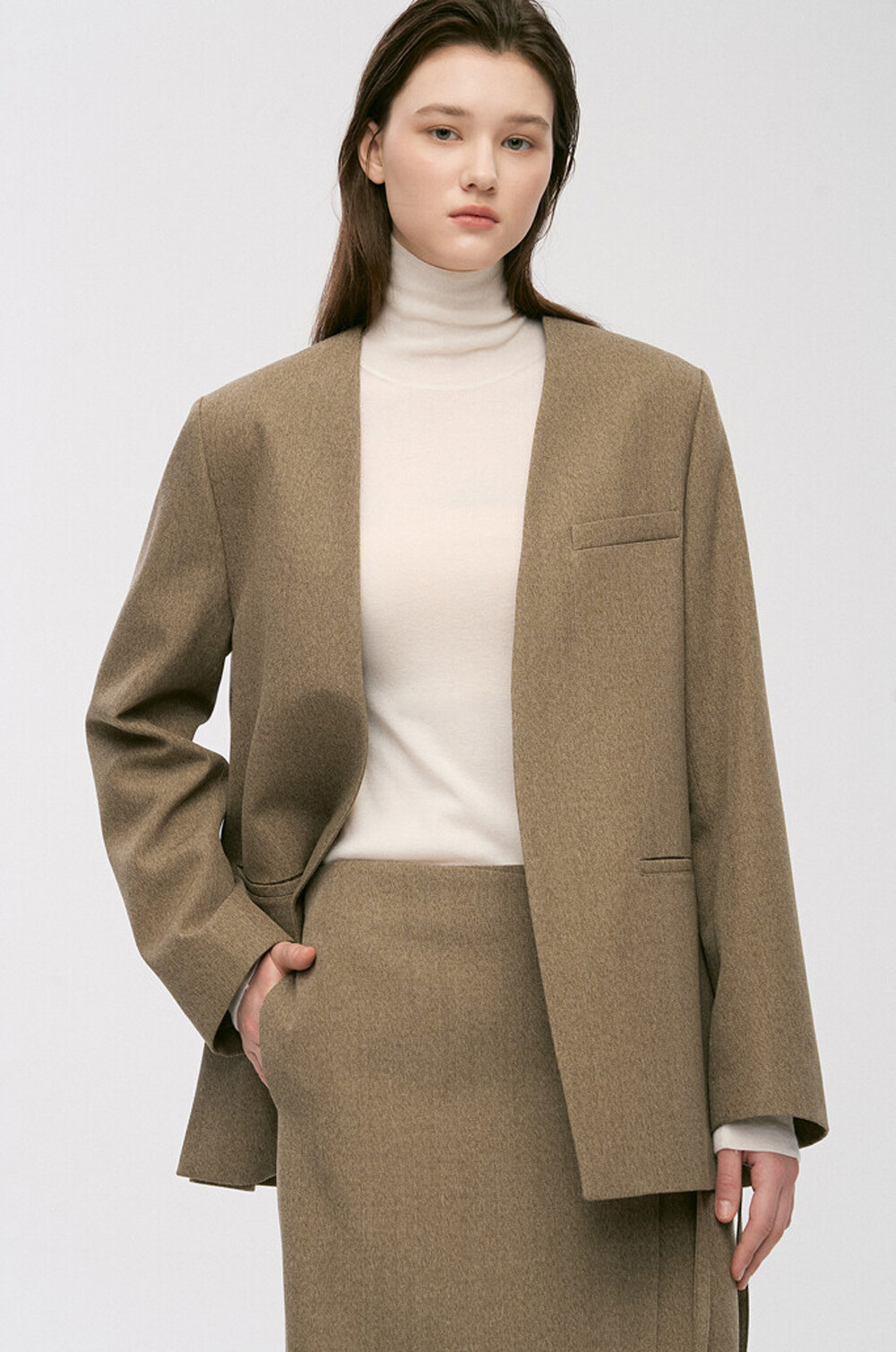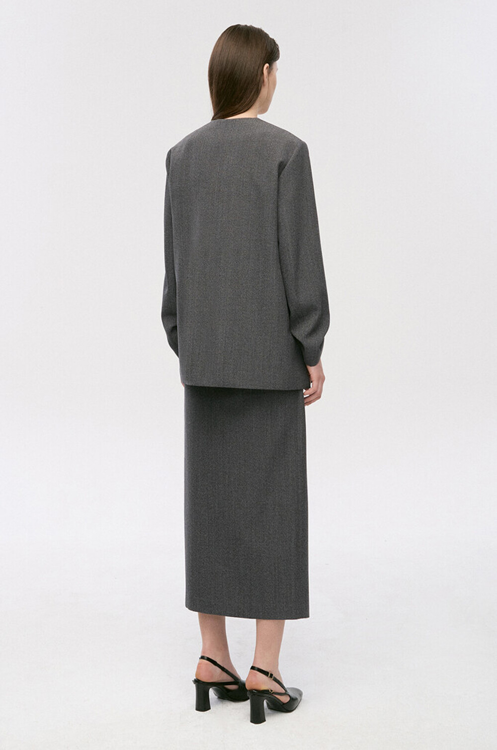 타임 울 칼라리스 슬릿 오픈 자켓 & 스커트