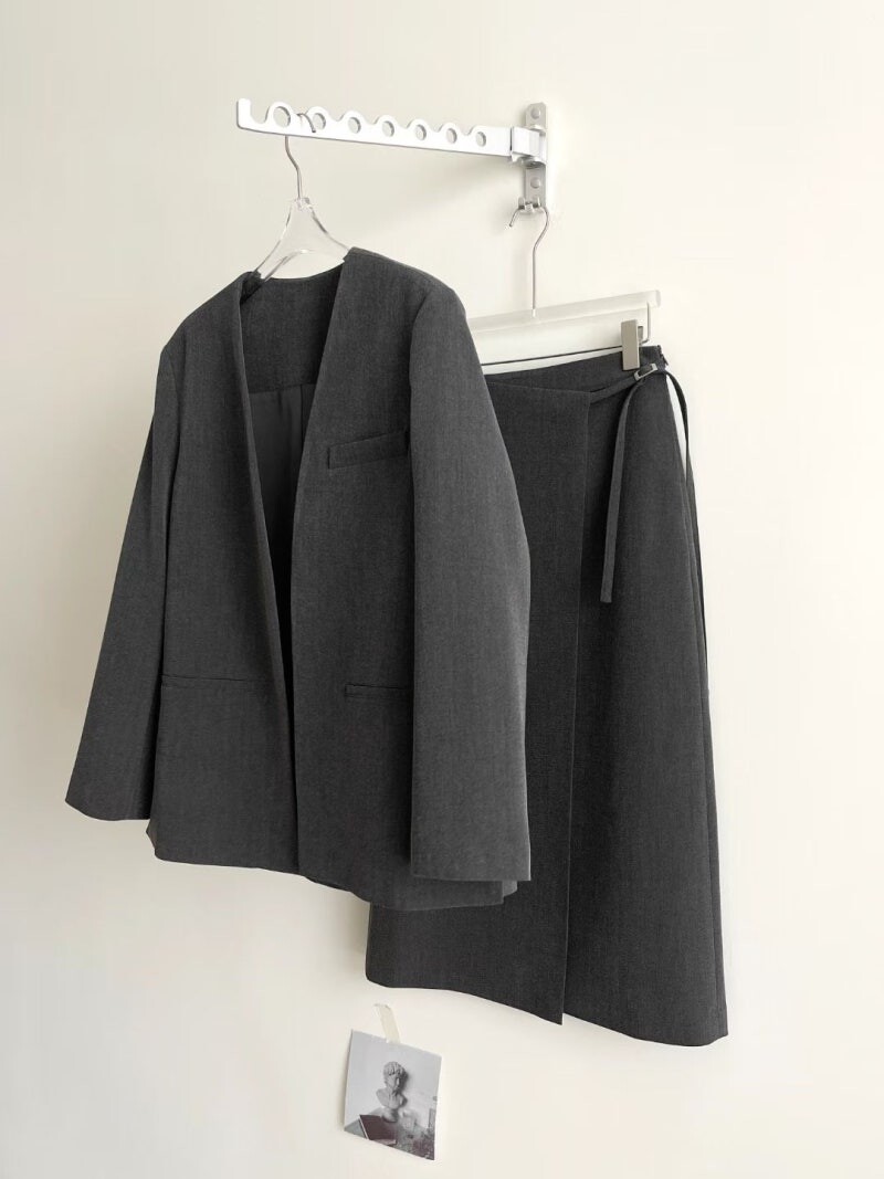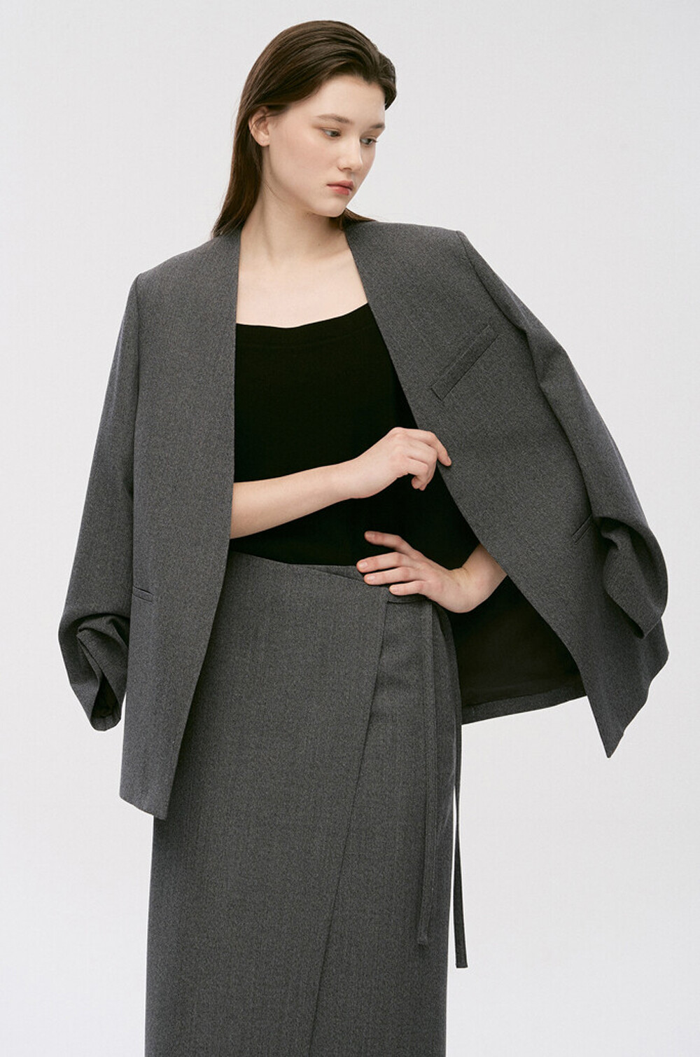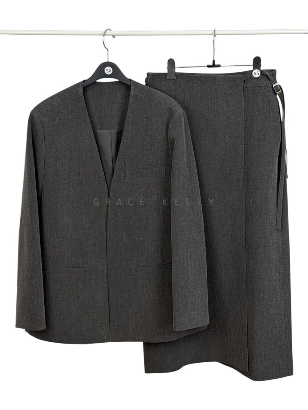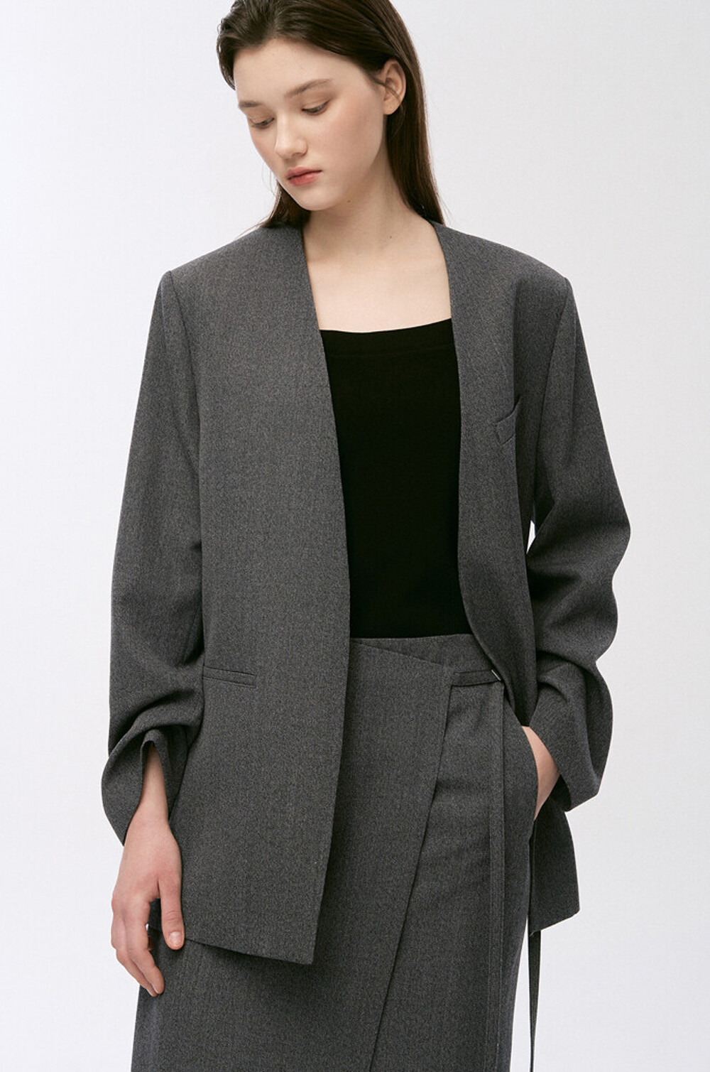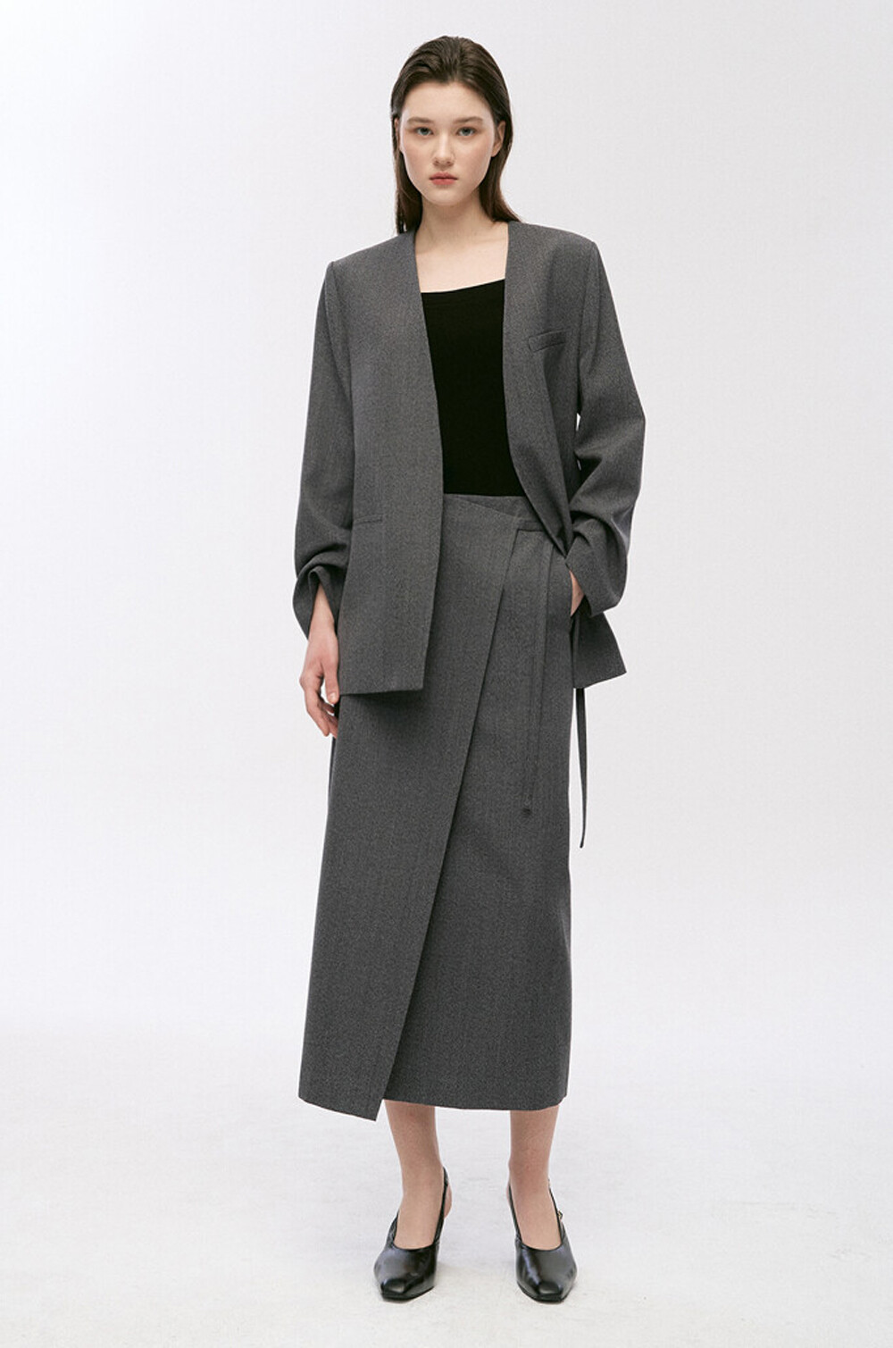 타임 울 칼라리스 슬릿 오픈 자켓 & 스커트