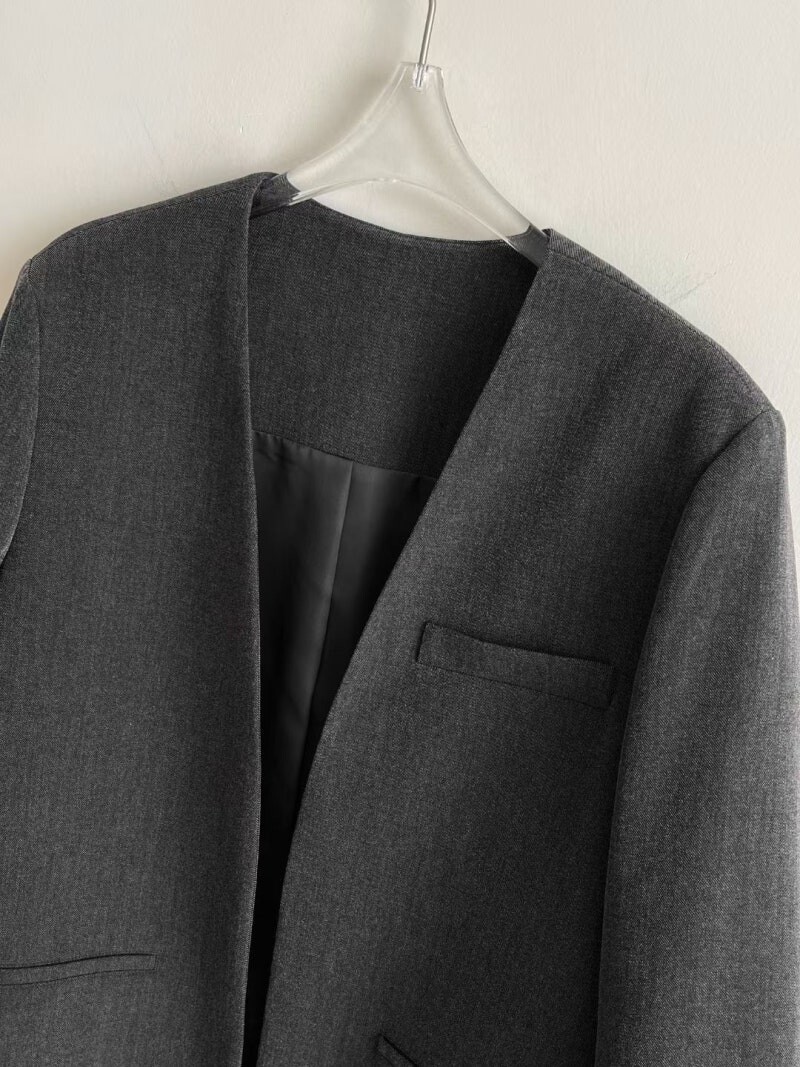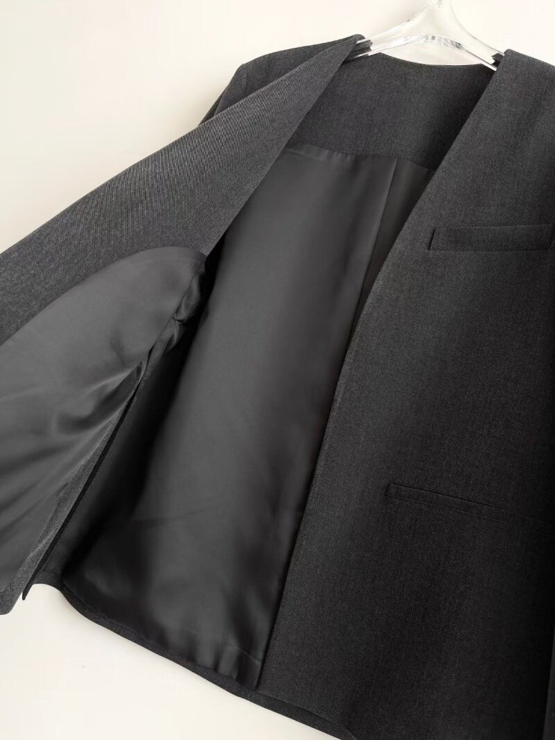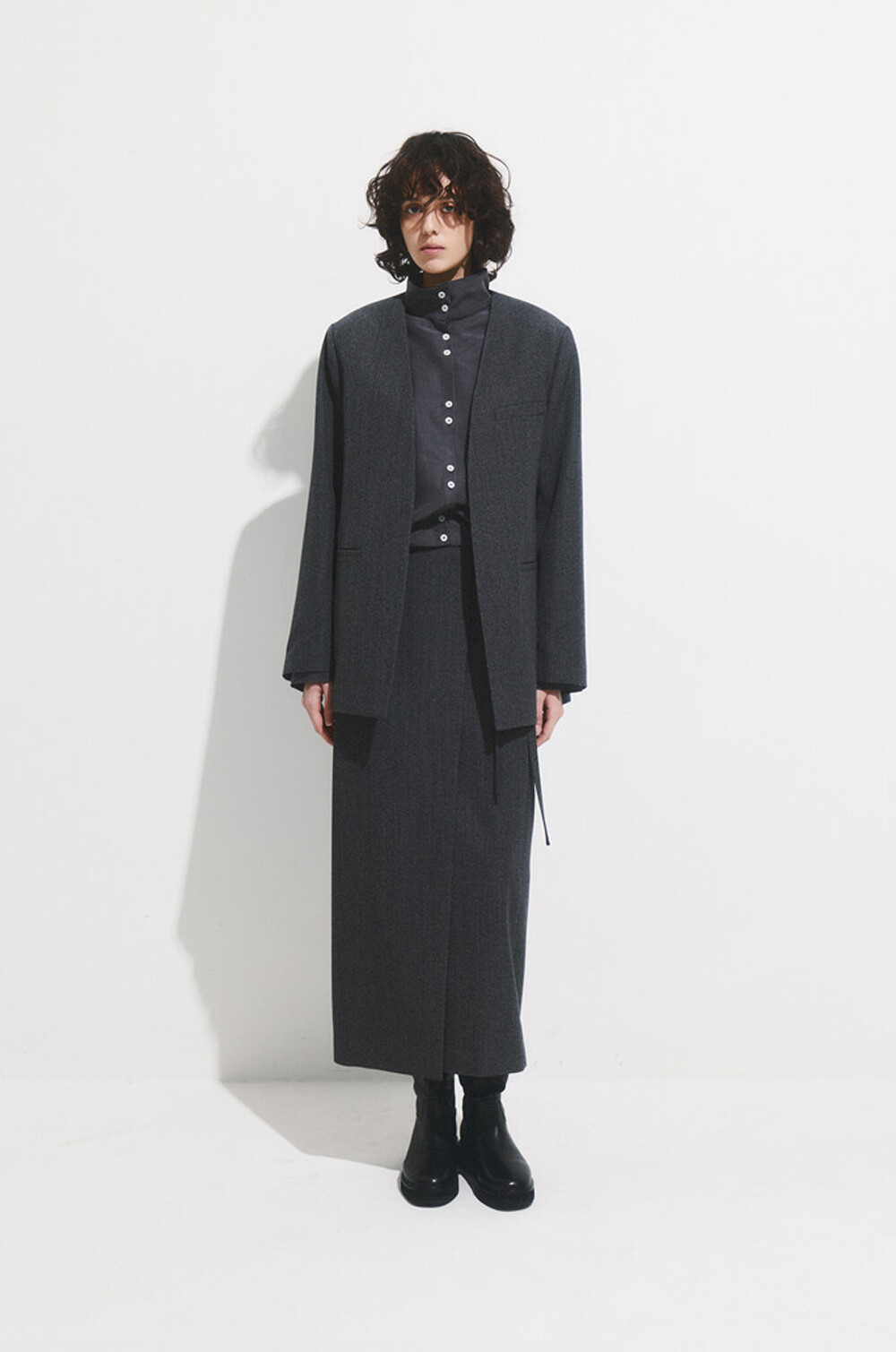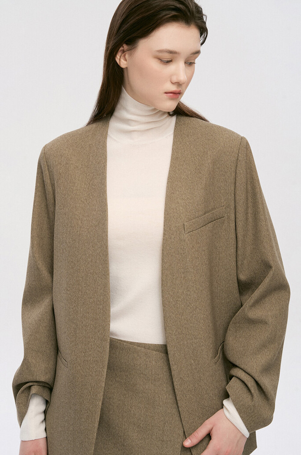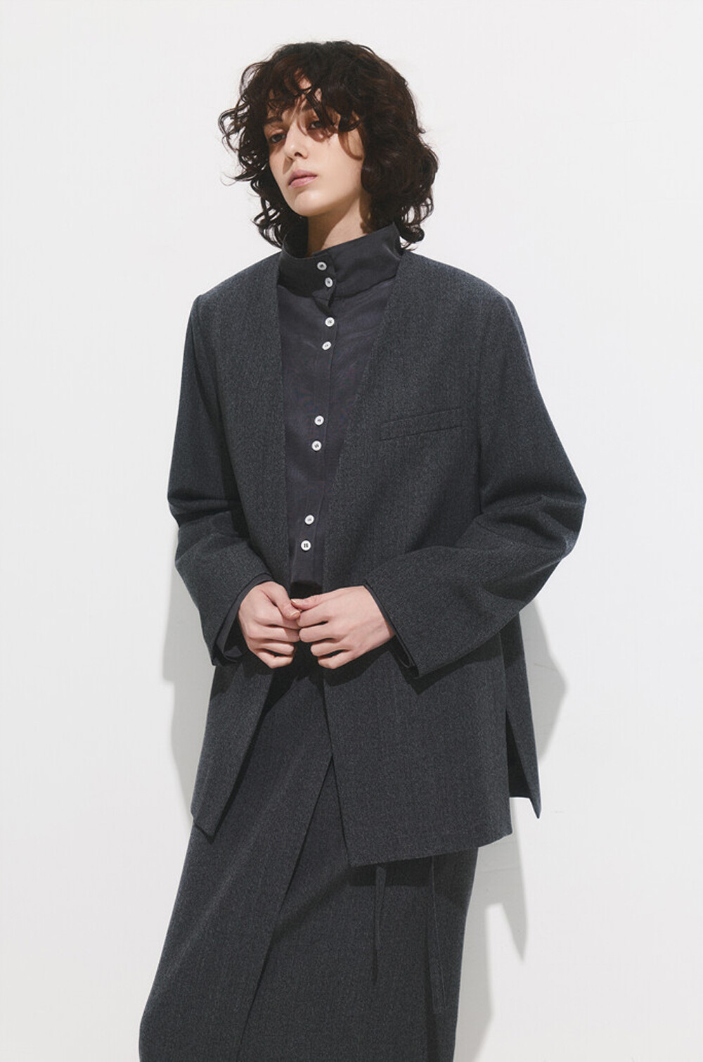 타임 울 칼라리스 슬릿 오픈 자켓 & 스커트