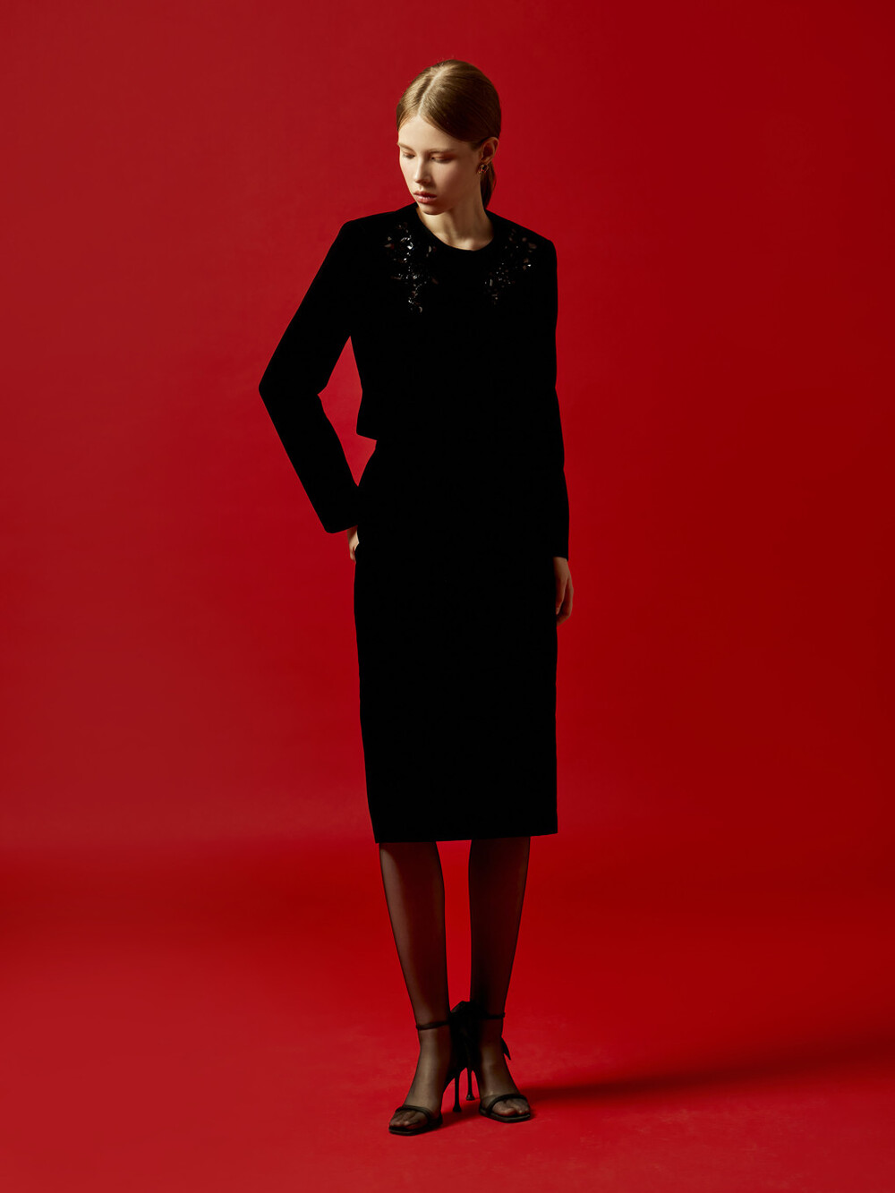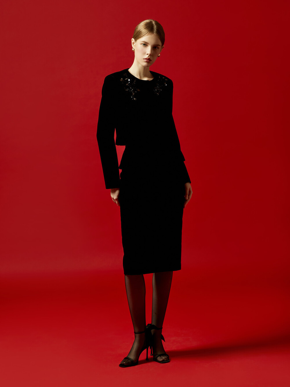 MOJO. Beads Velvet Jacket & Frill Skirt