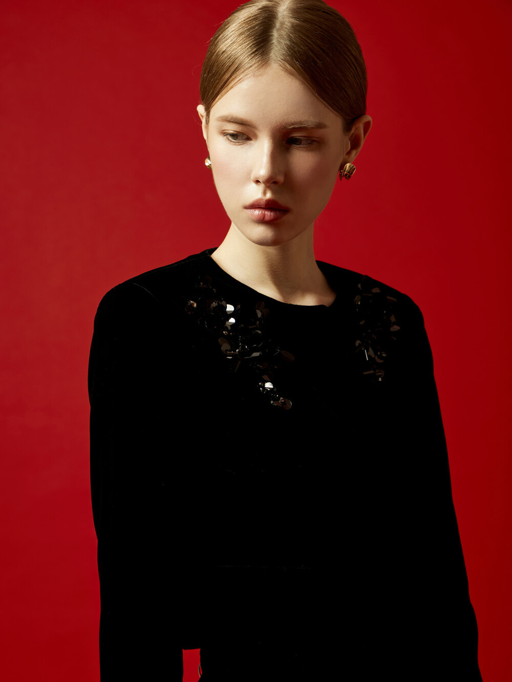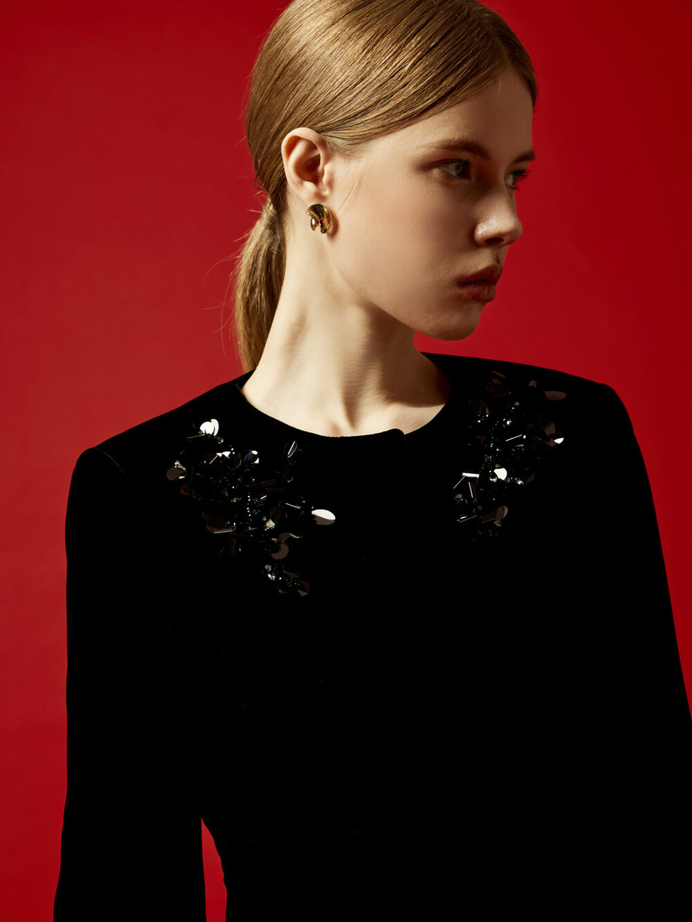 소프트 벨벳에 비즈 장식을 더한