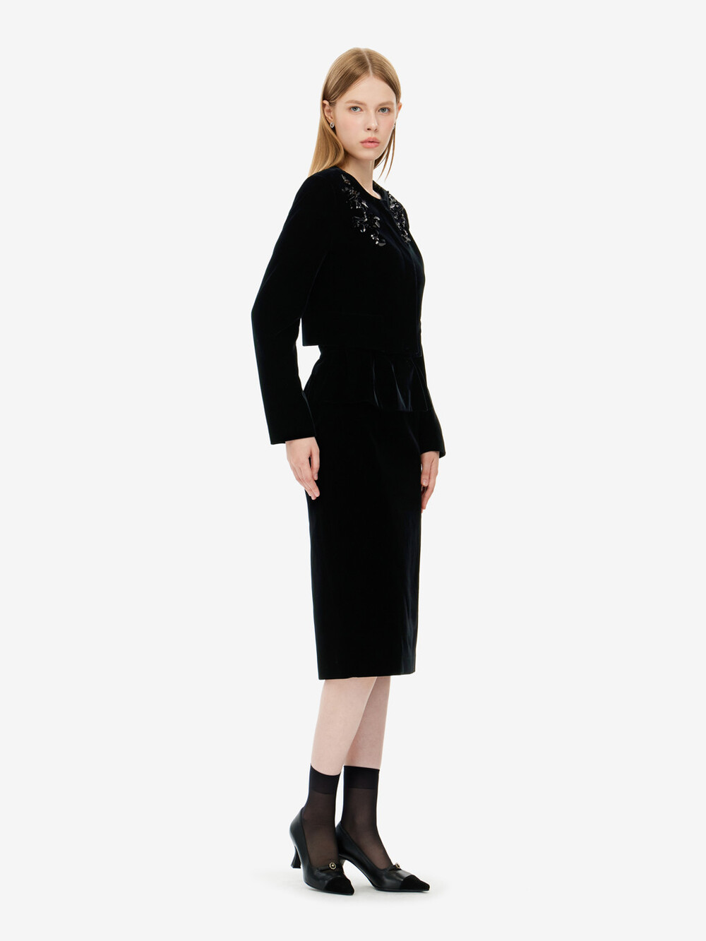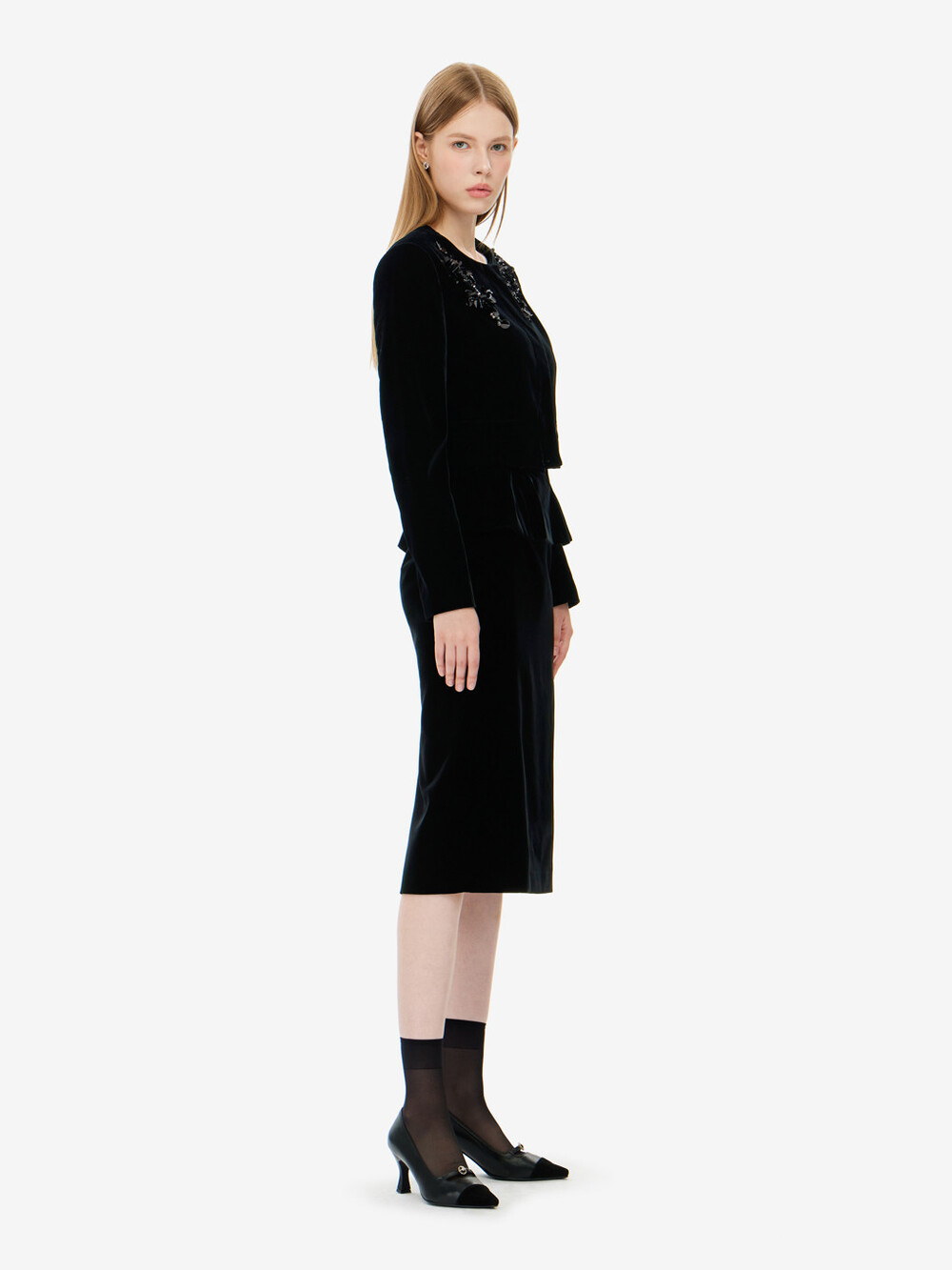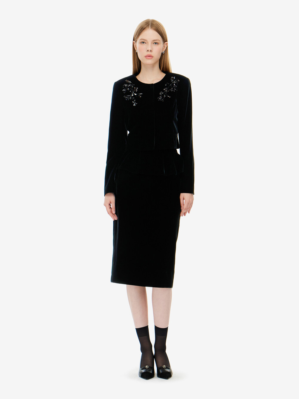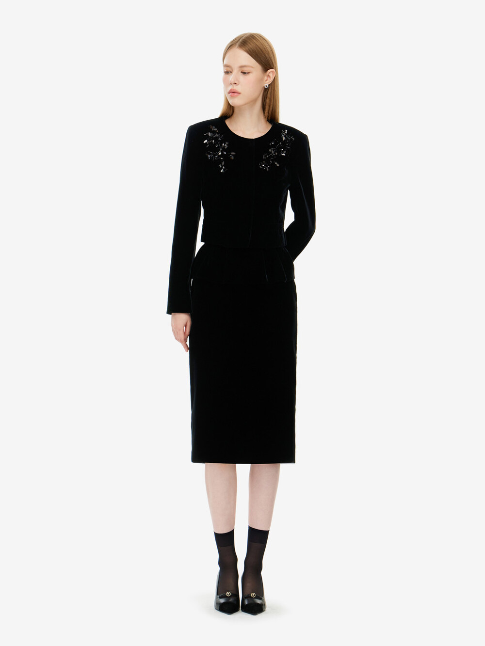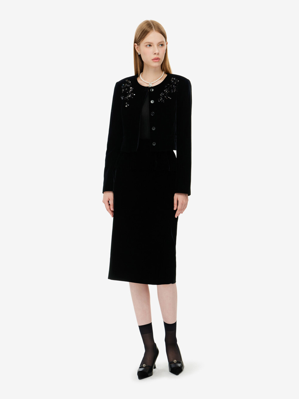 모조 비즈장식 벨벳 자켓 & 스커트