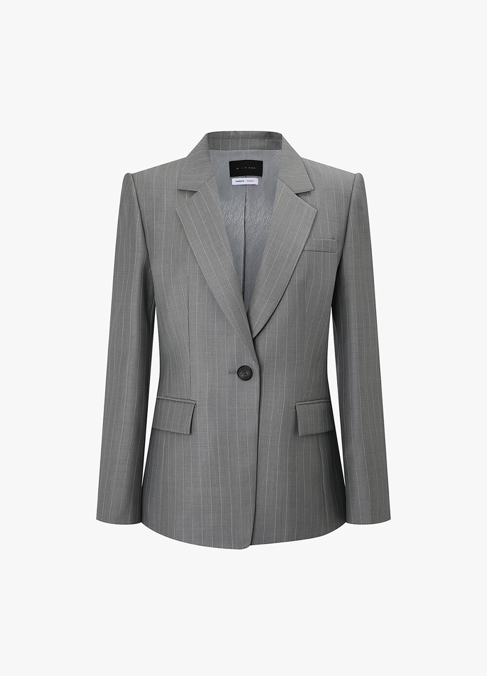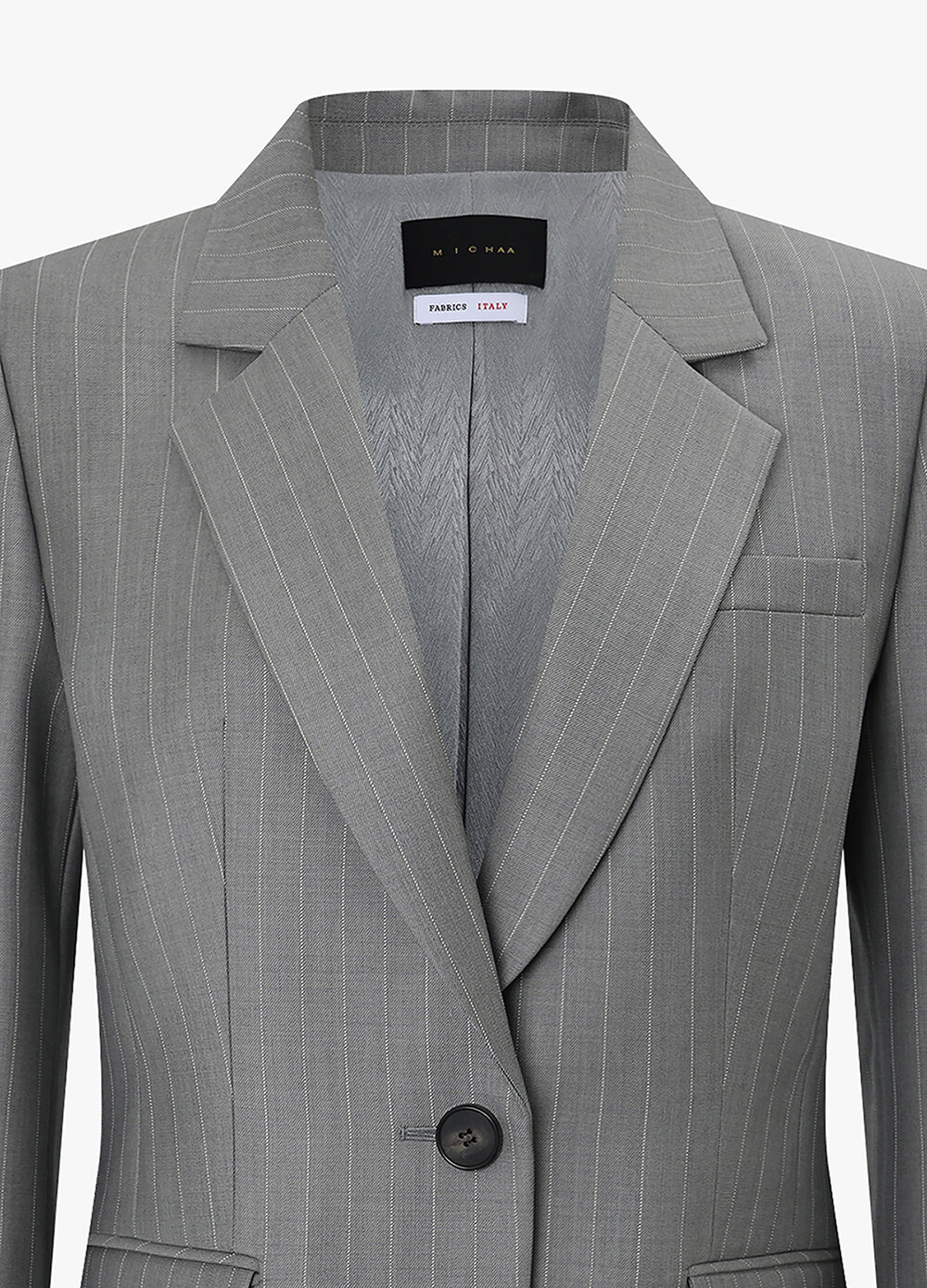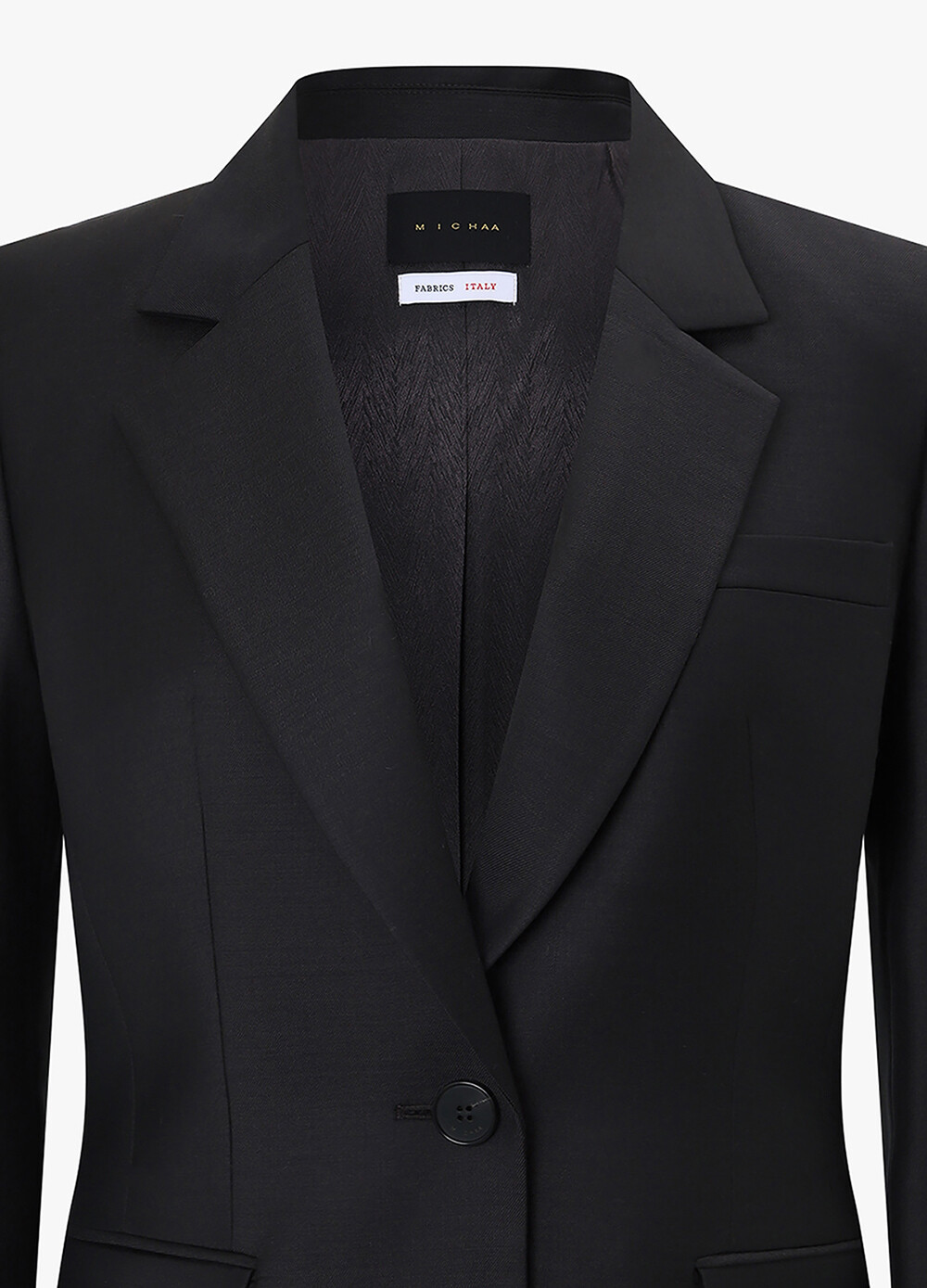 정제된 라펠과 원 버튼 디자인으로
