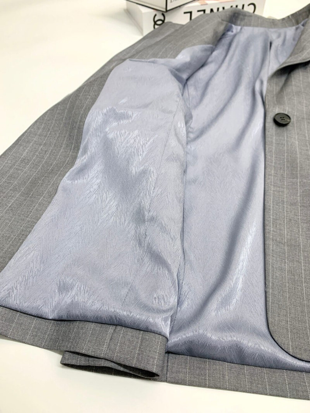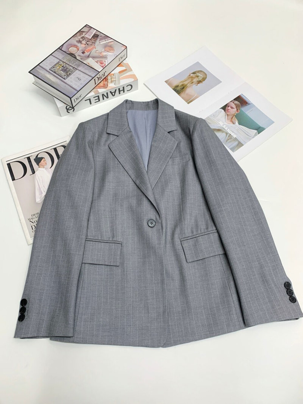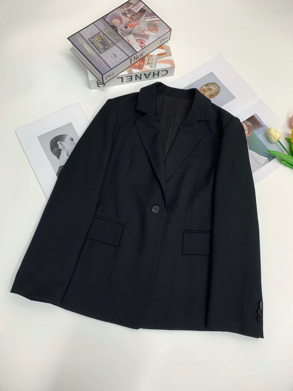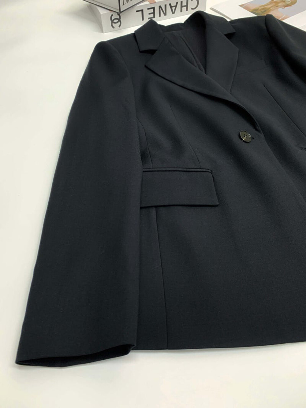 정제된 라펠과 원 버튼 디자인으로