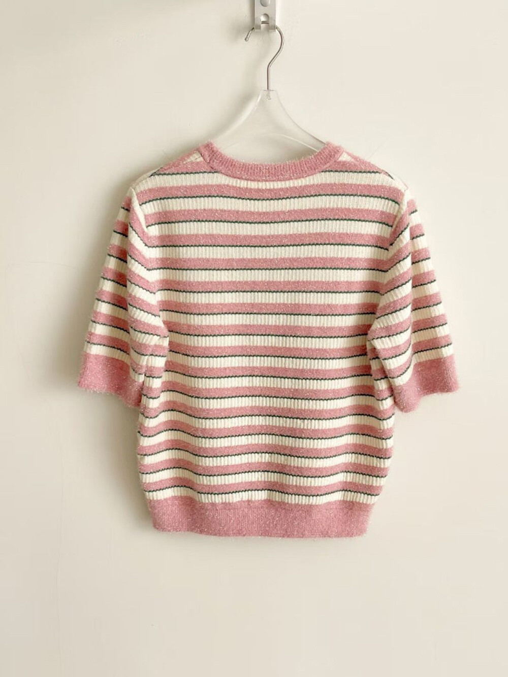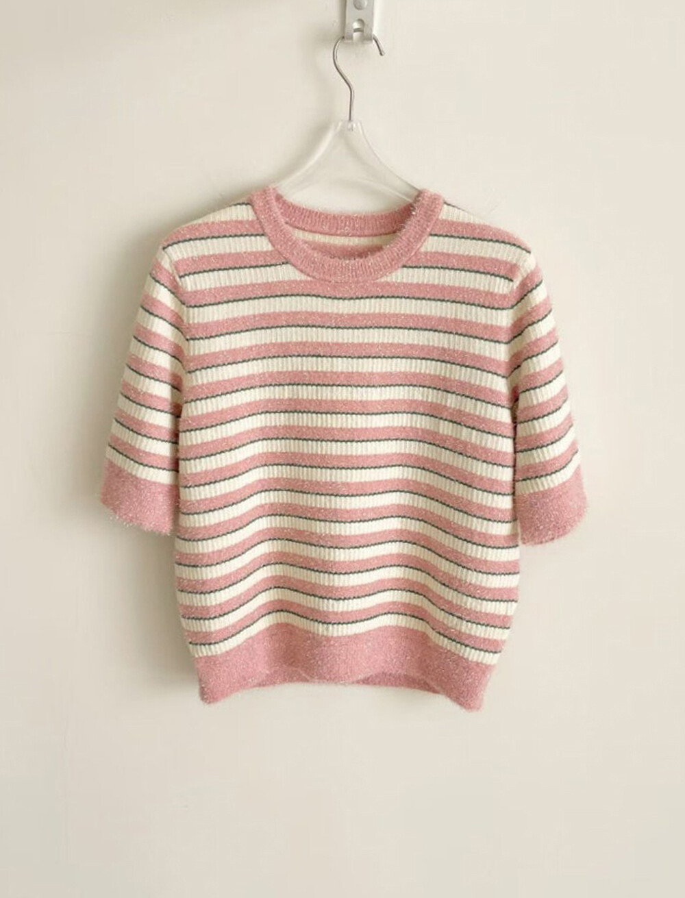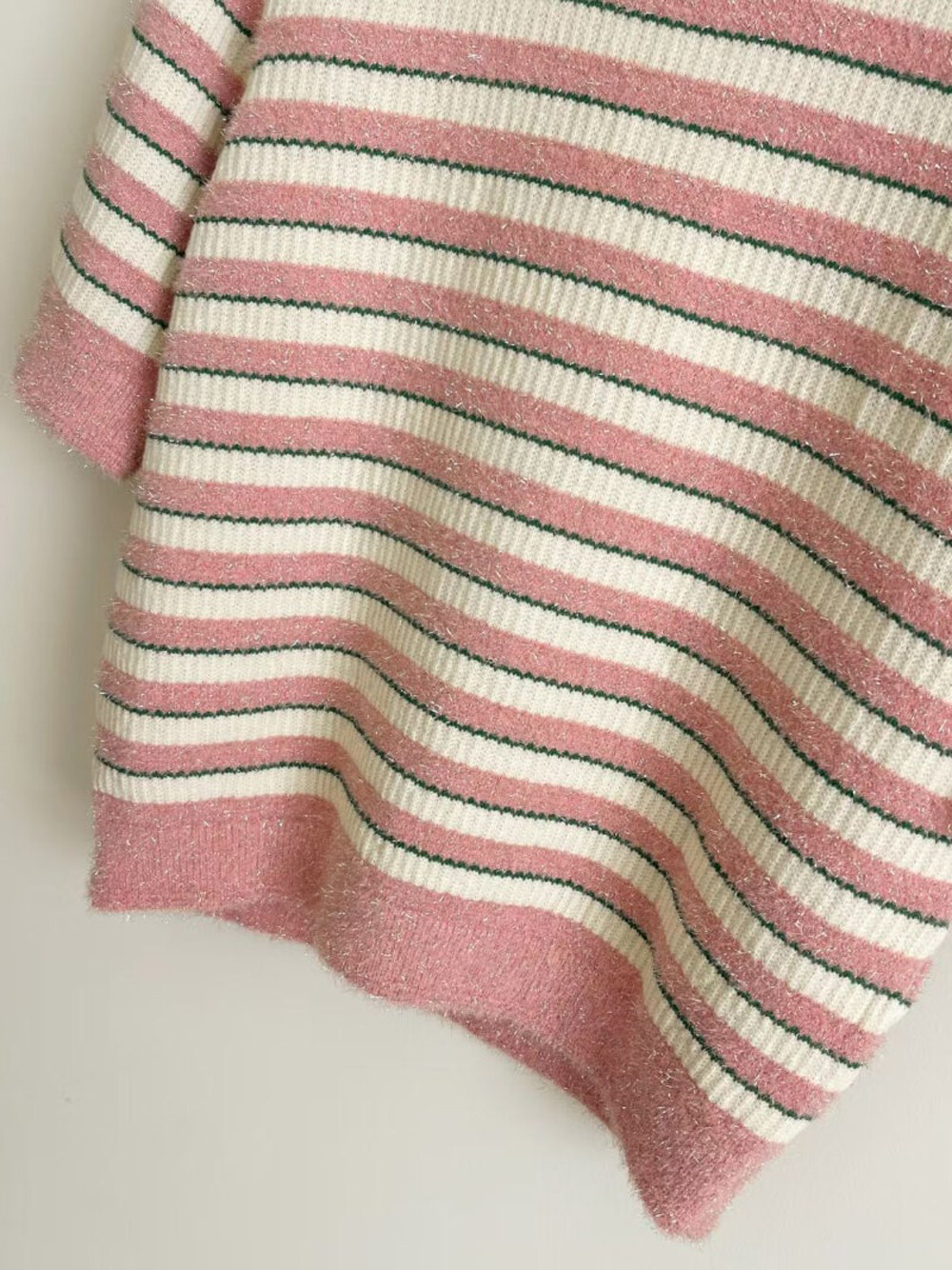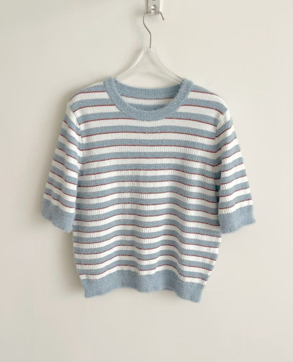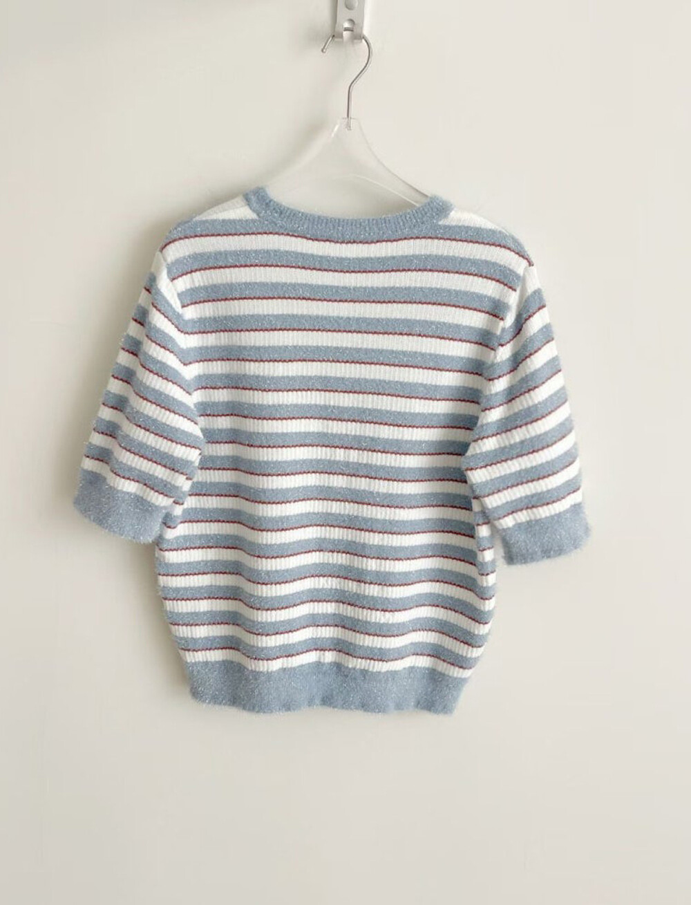 랑방컬렉션 글리터 스트라이프 하프 니트 탑