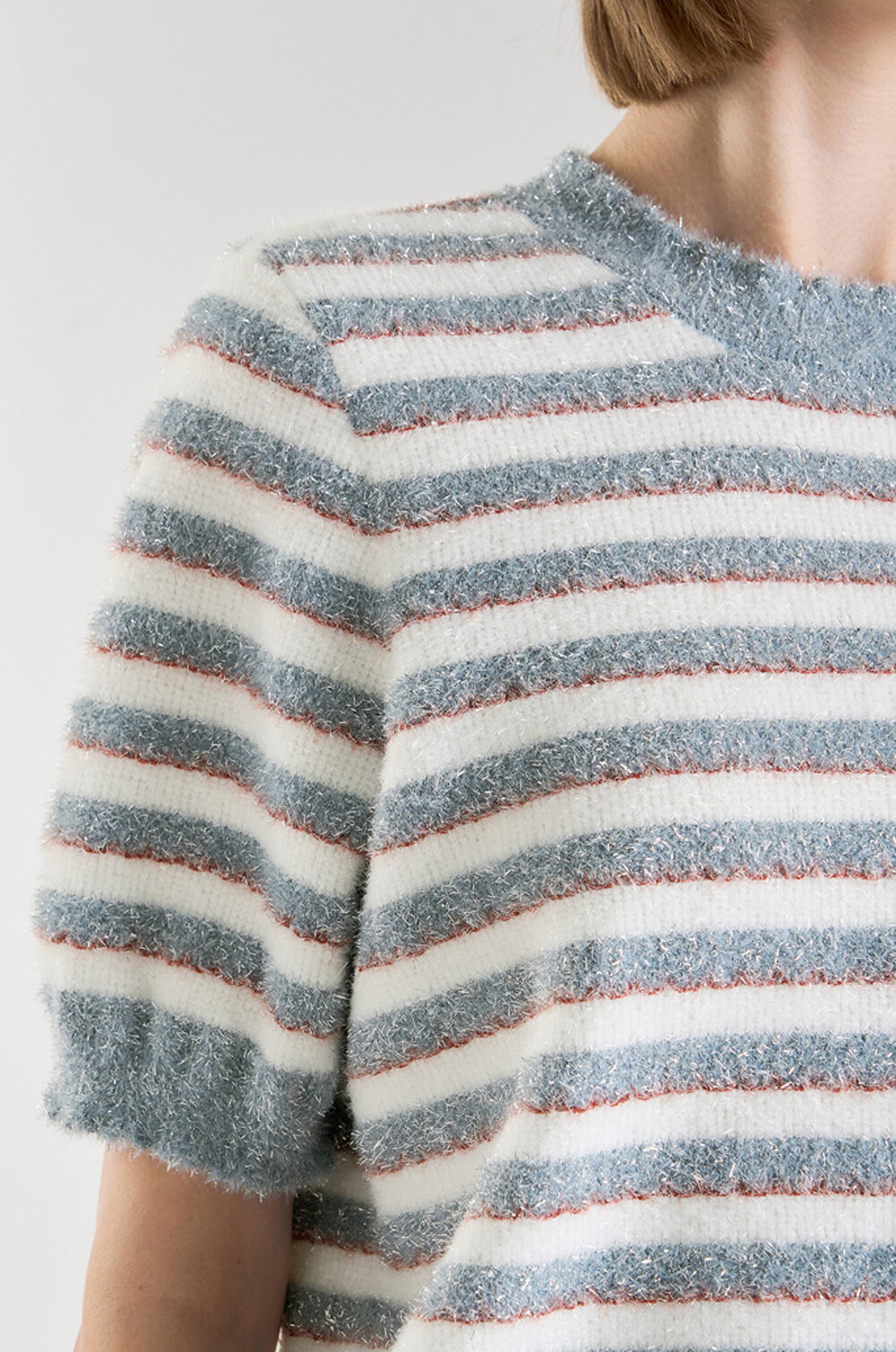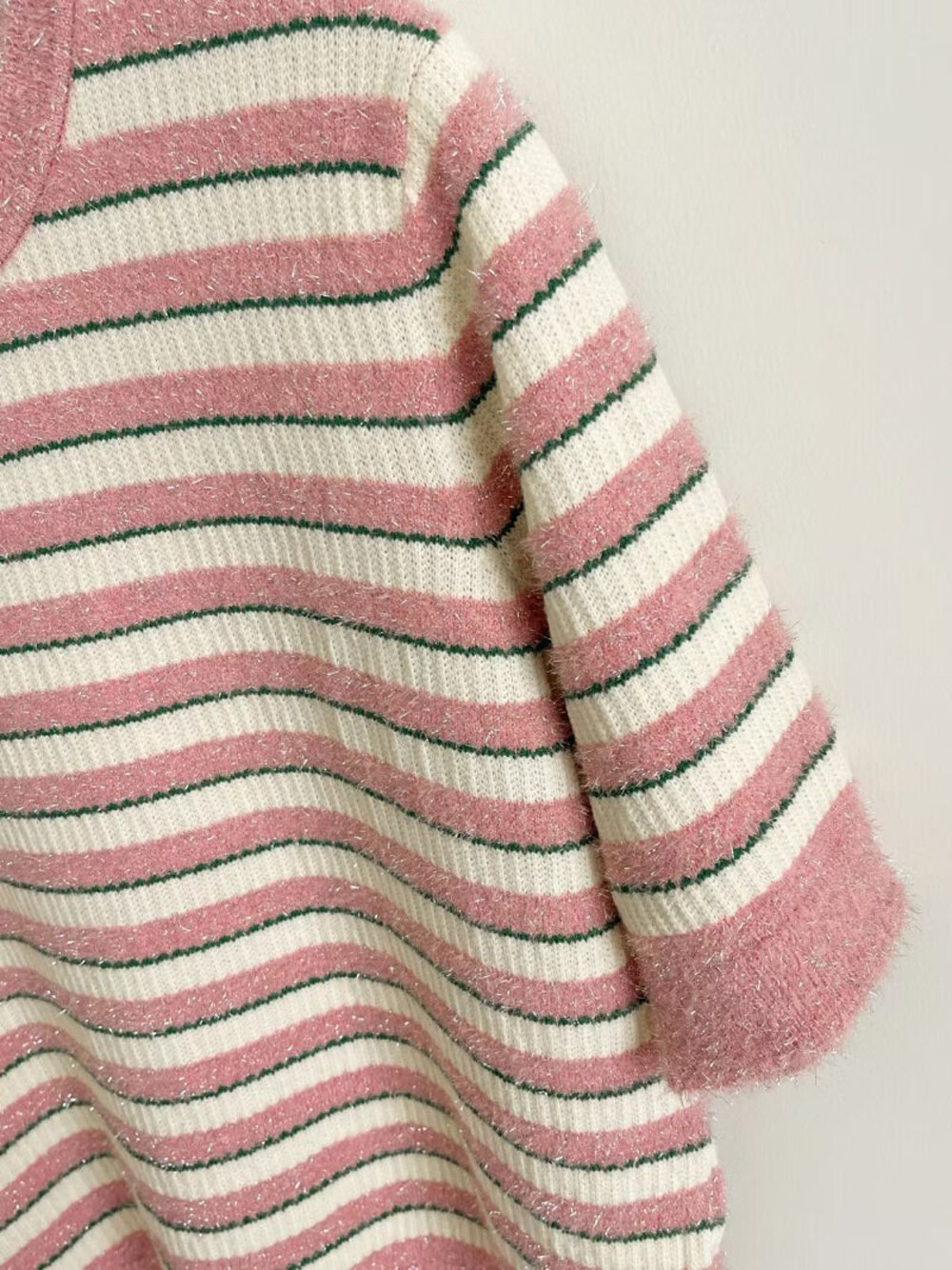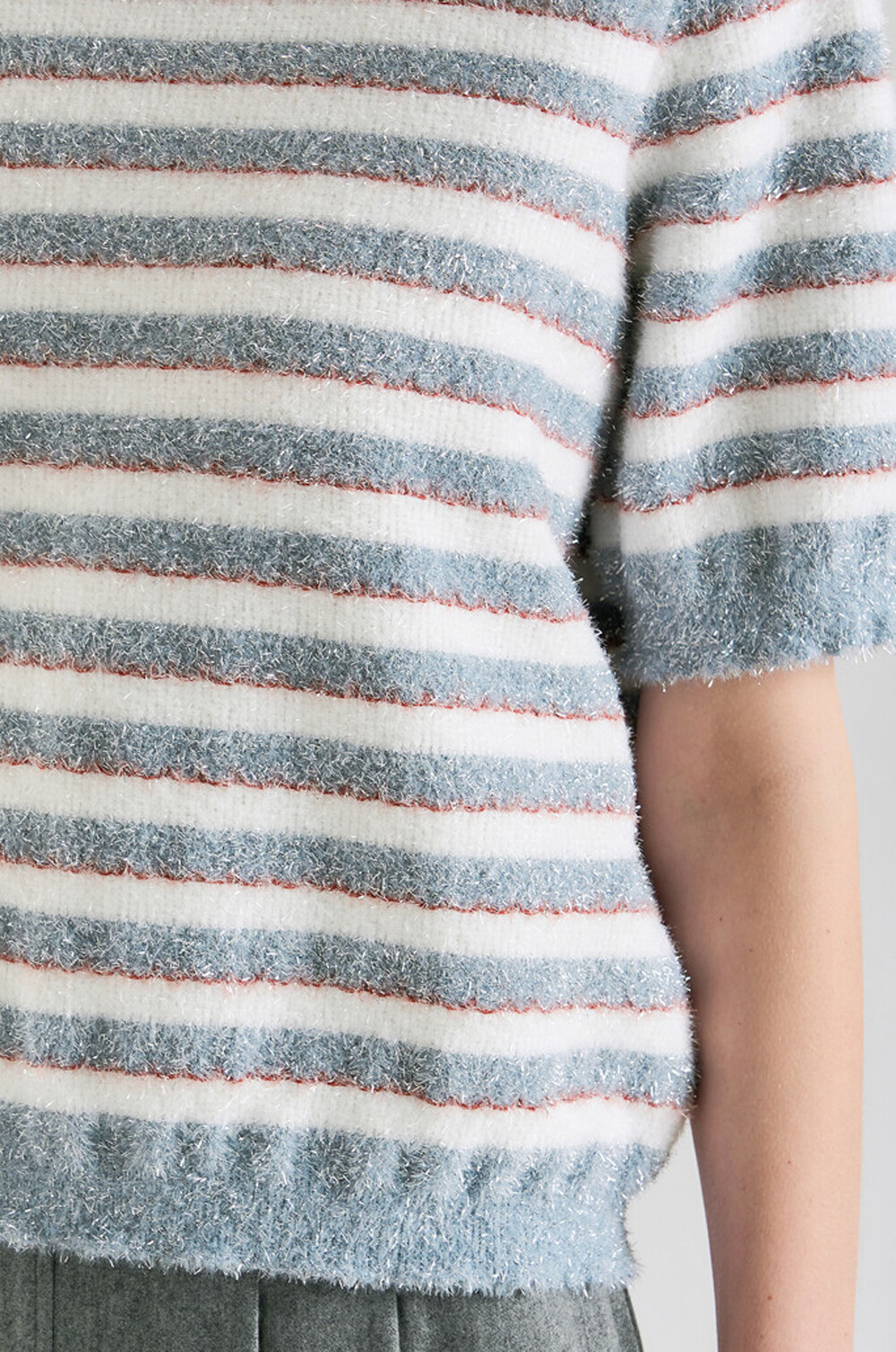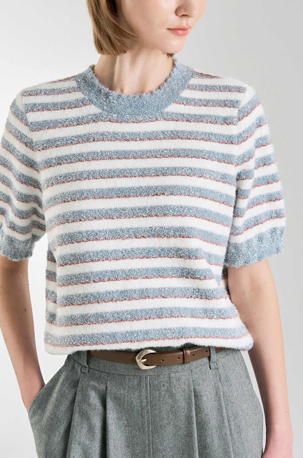랑방컬렉션 글리터 스트라이프 하프 니트 탑
