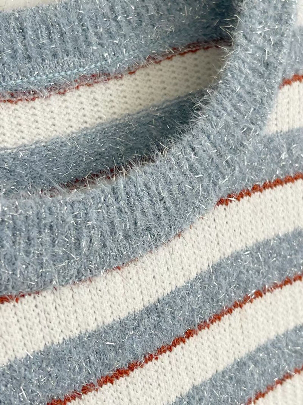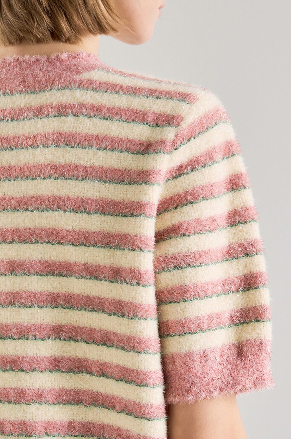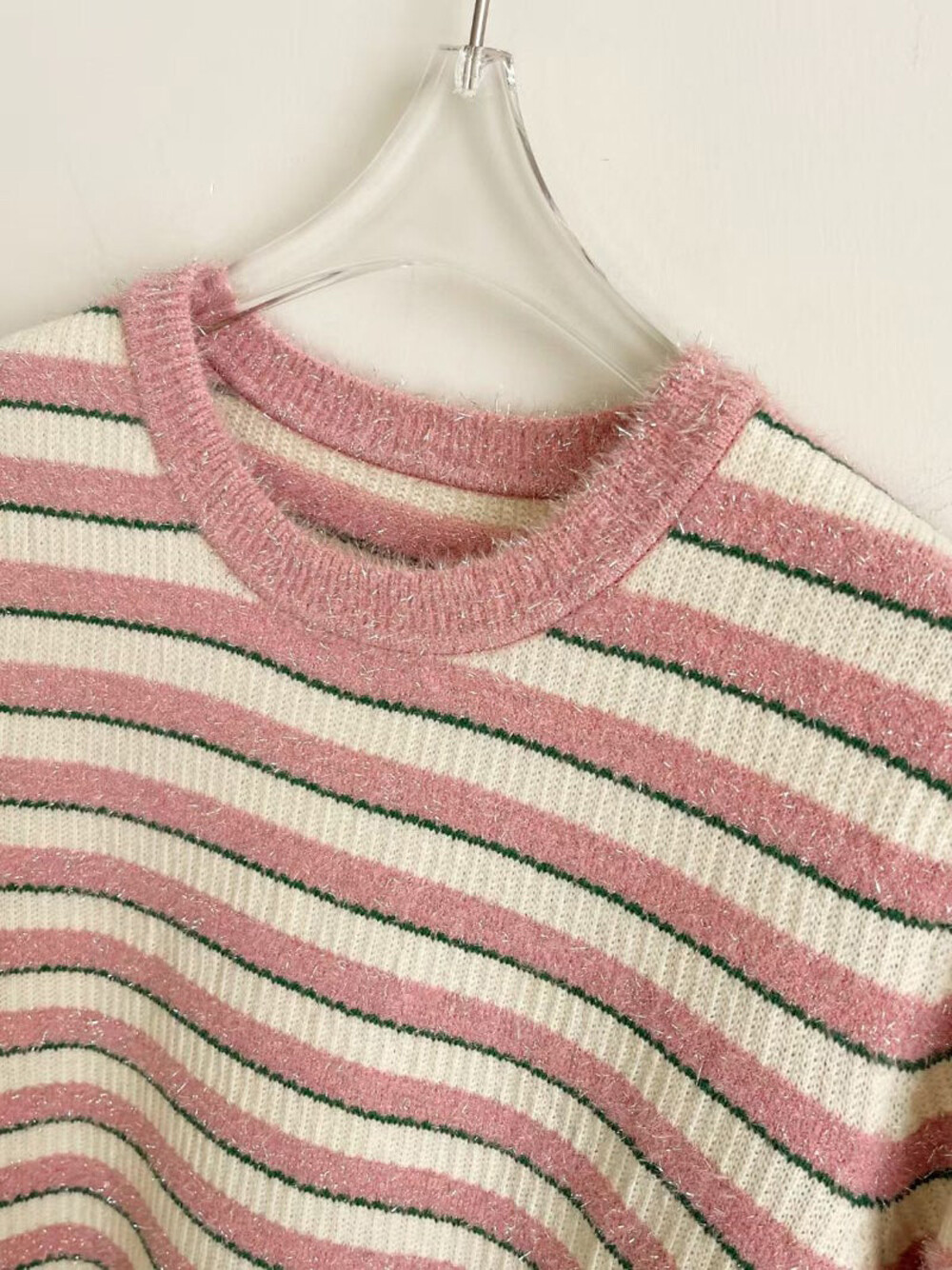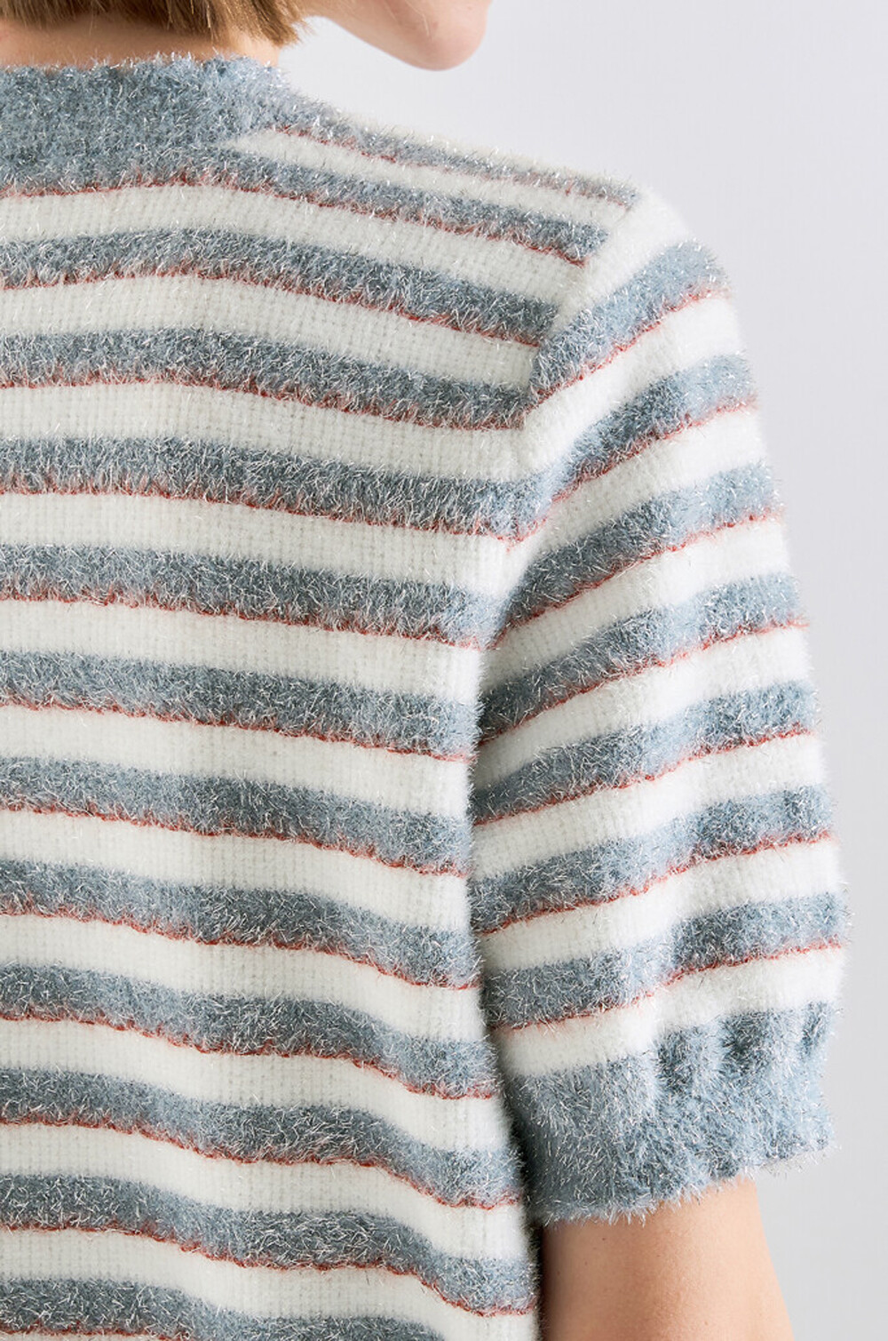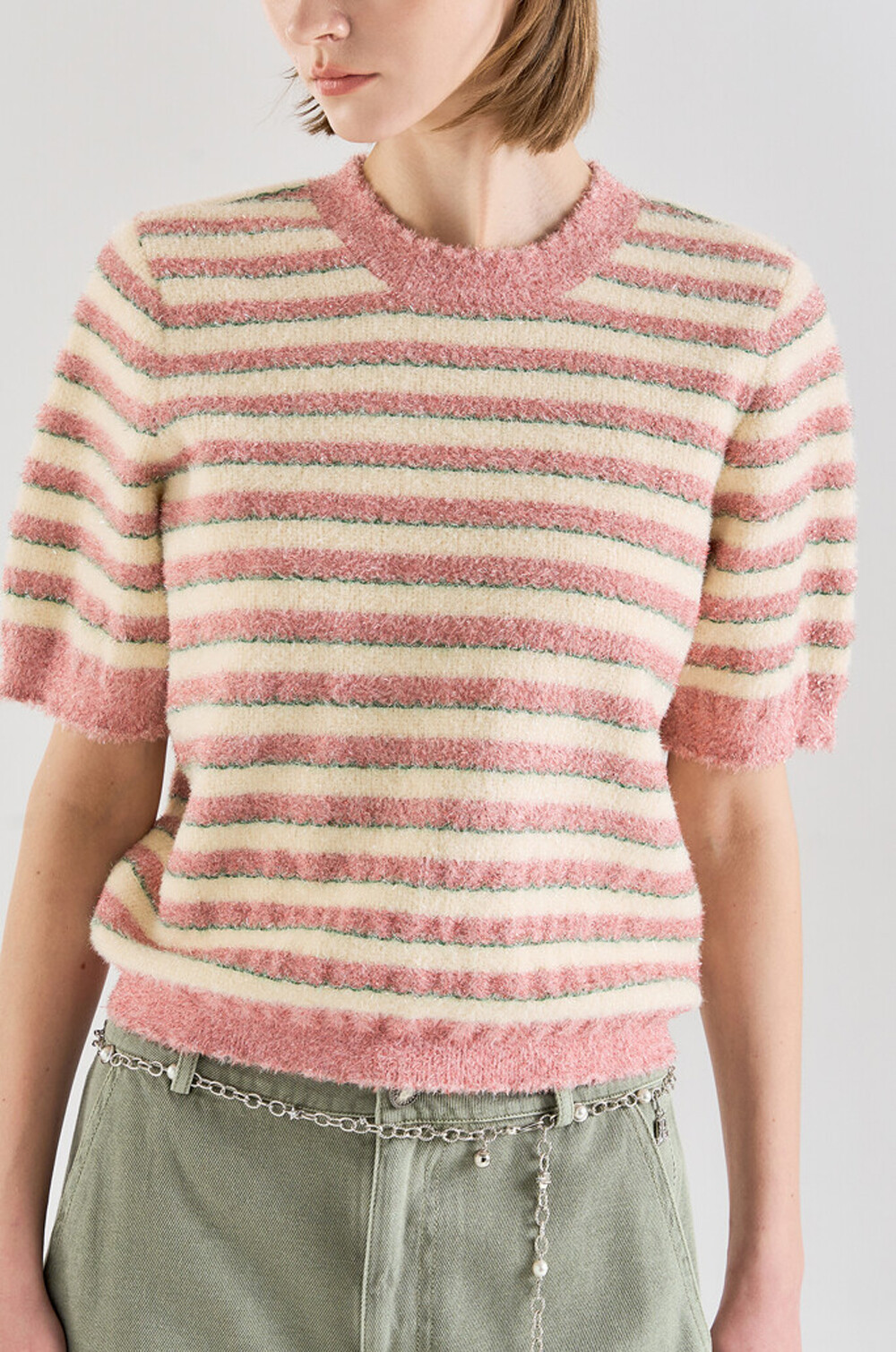 랑방컬렉션 글리터 스트라이프 하프 니트 탑