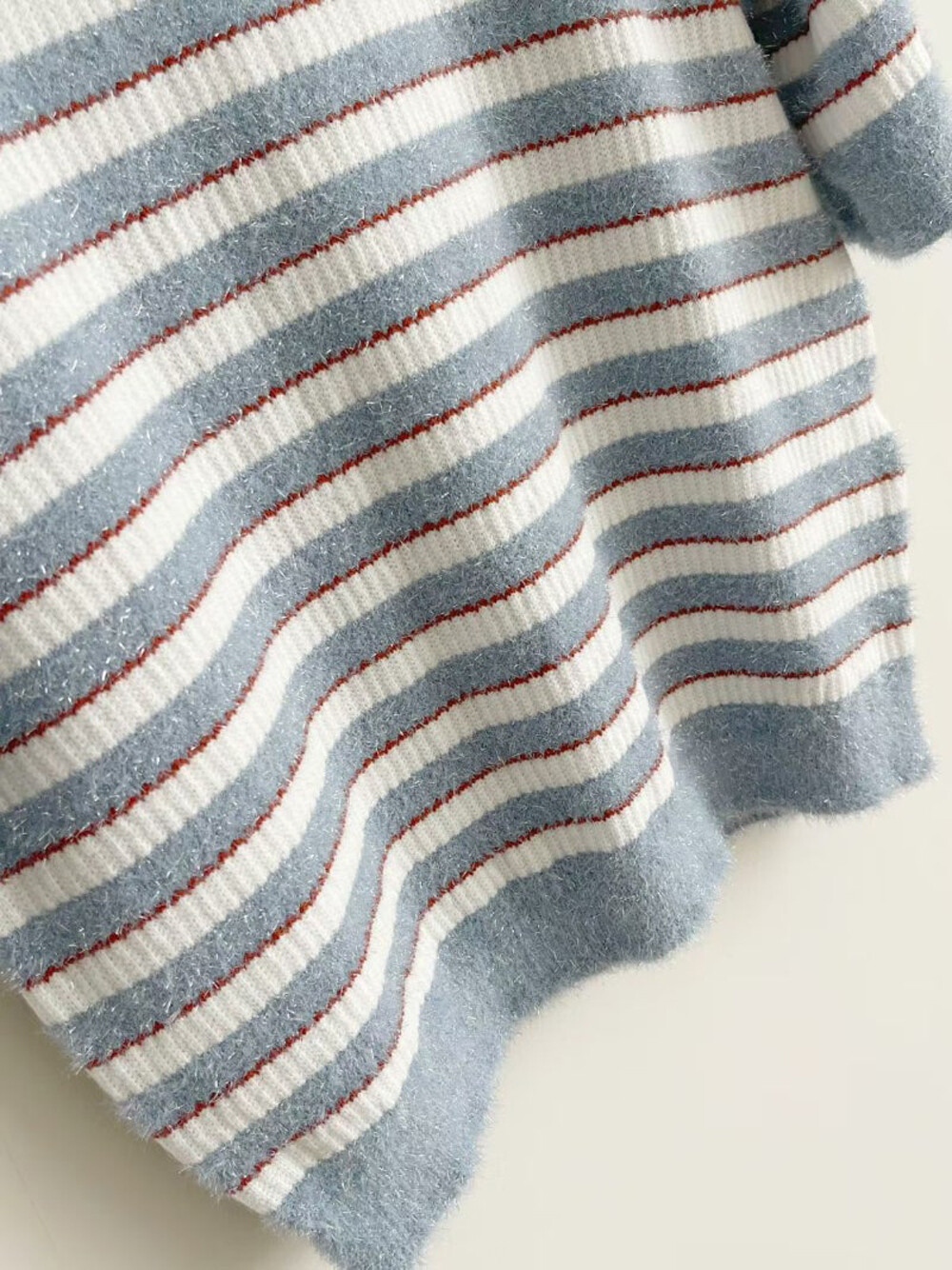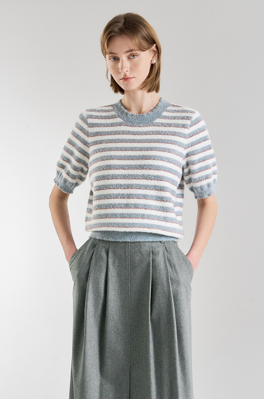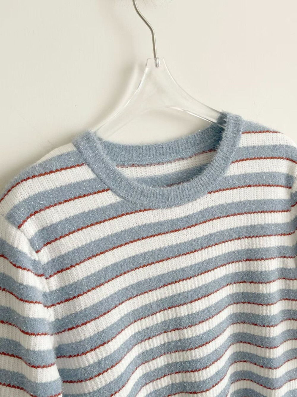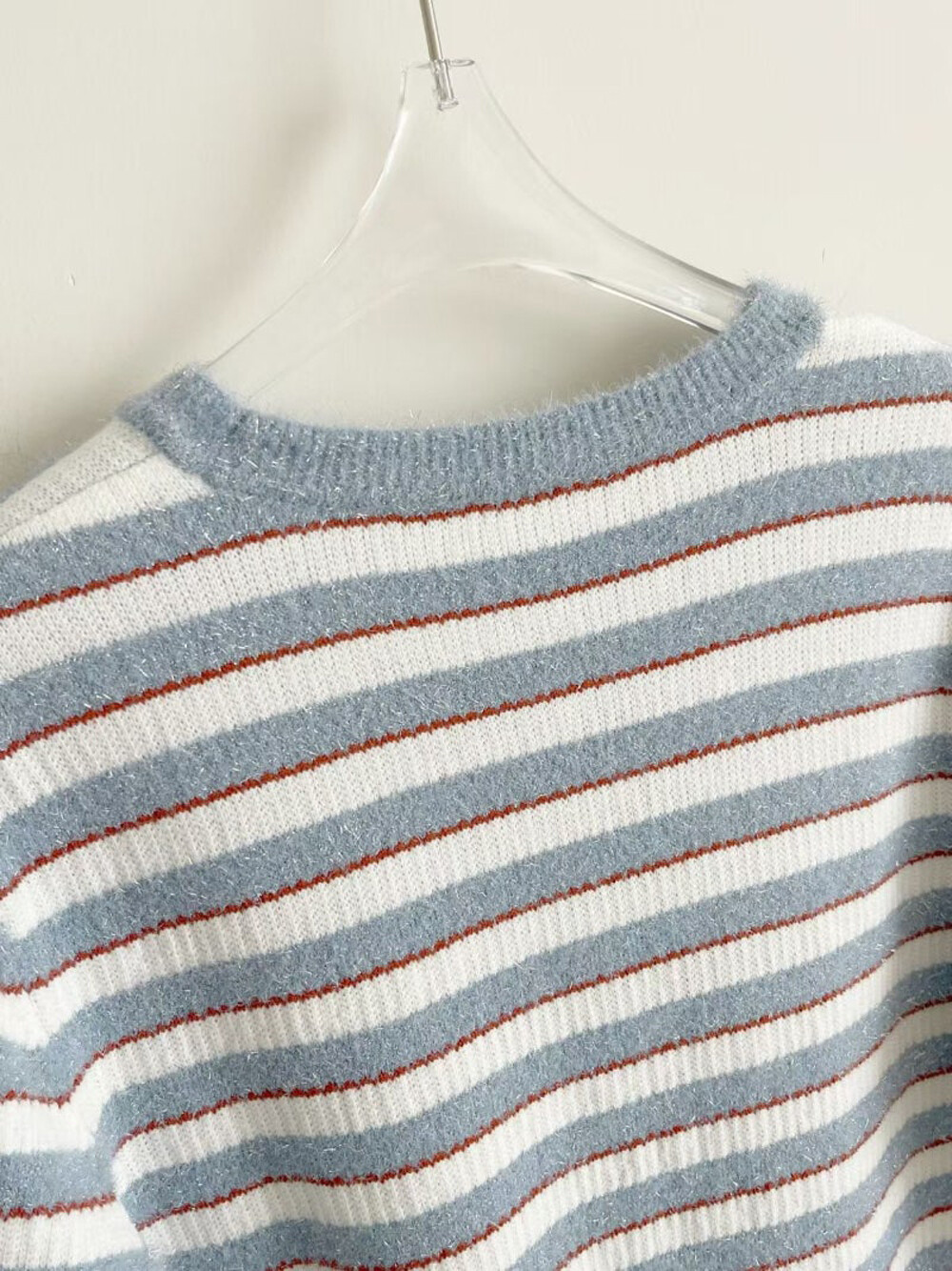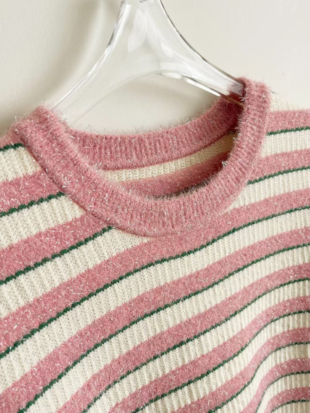 랑방컬렉션 글리터 스트라이프 하프 니트 탑