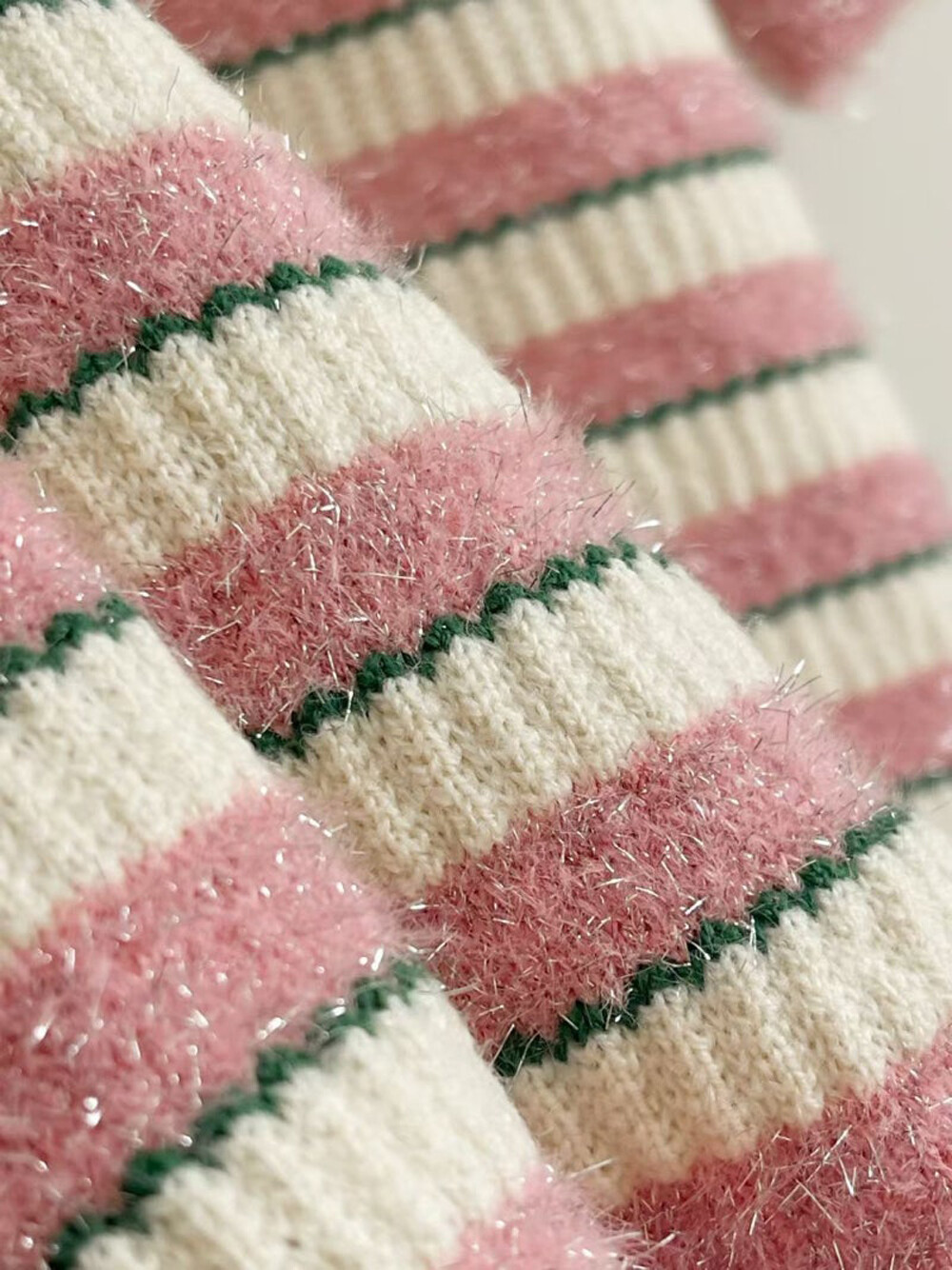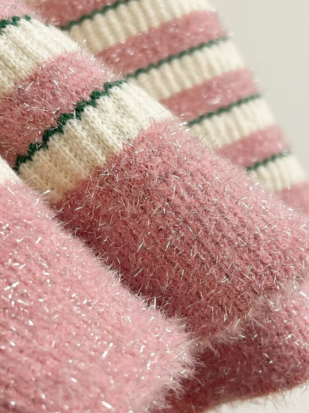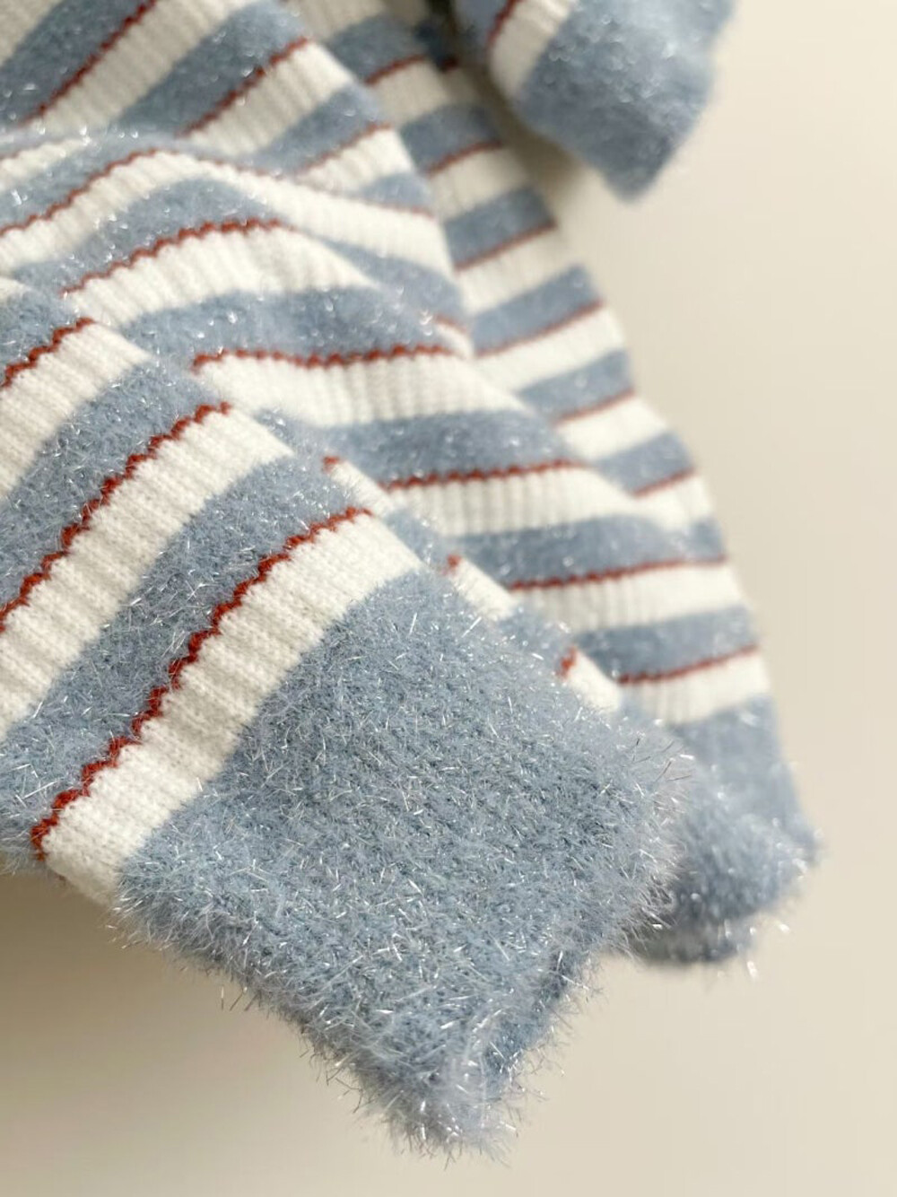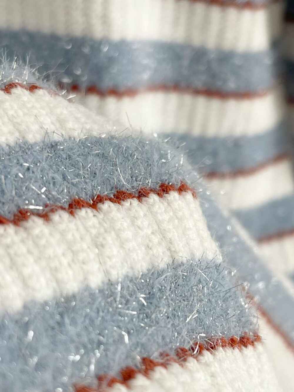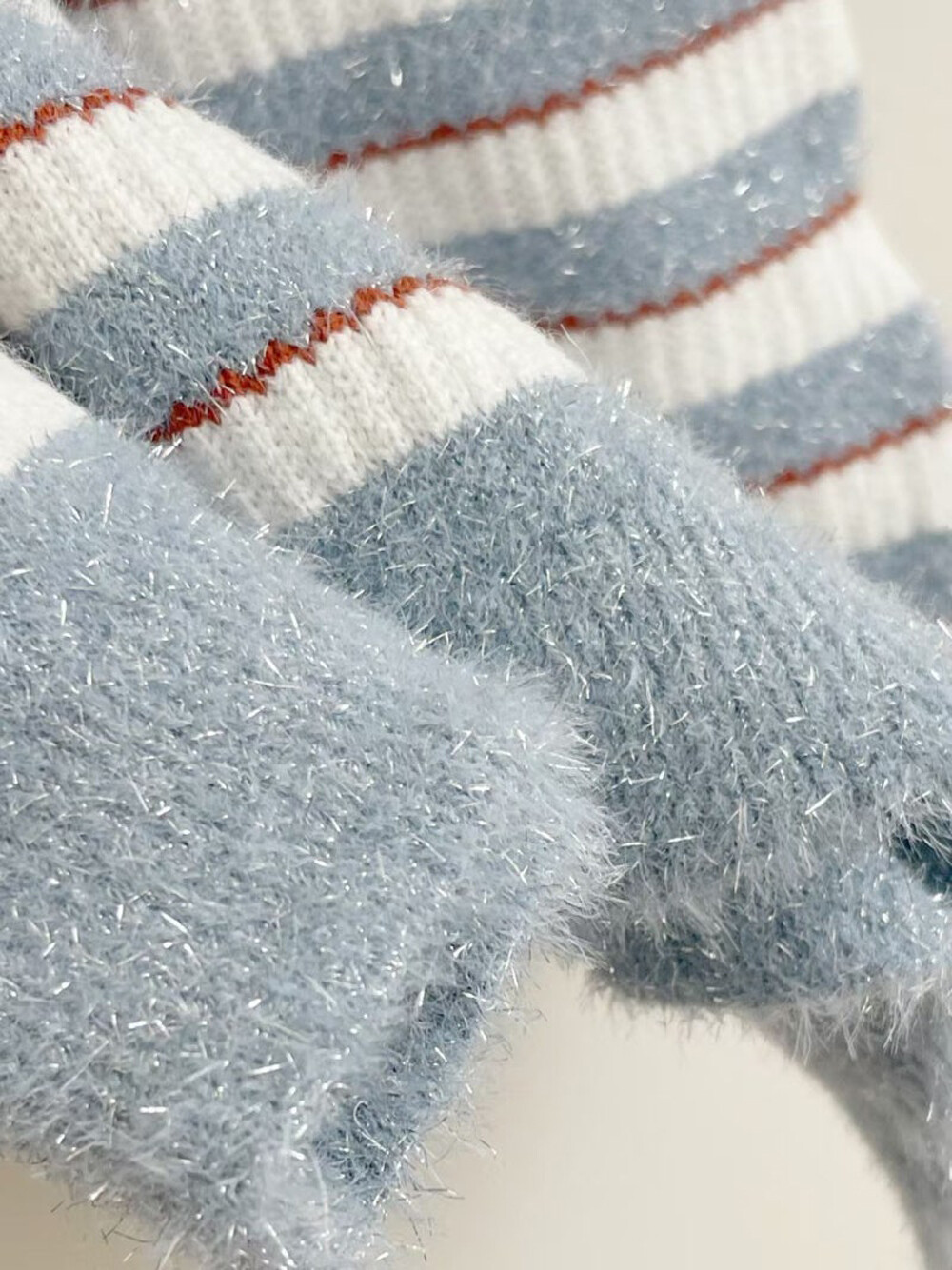 - 글리터 원사를 믹스한 프린지 텍스처