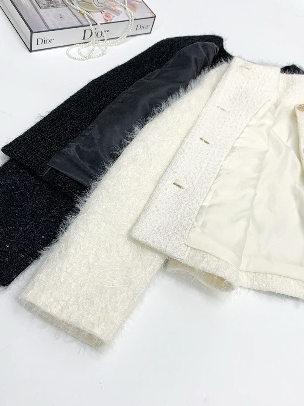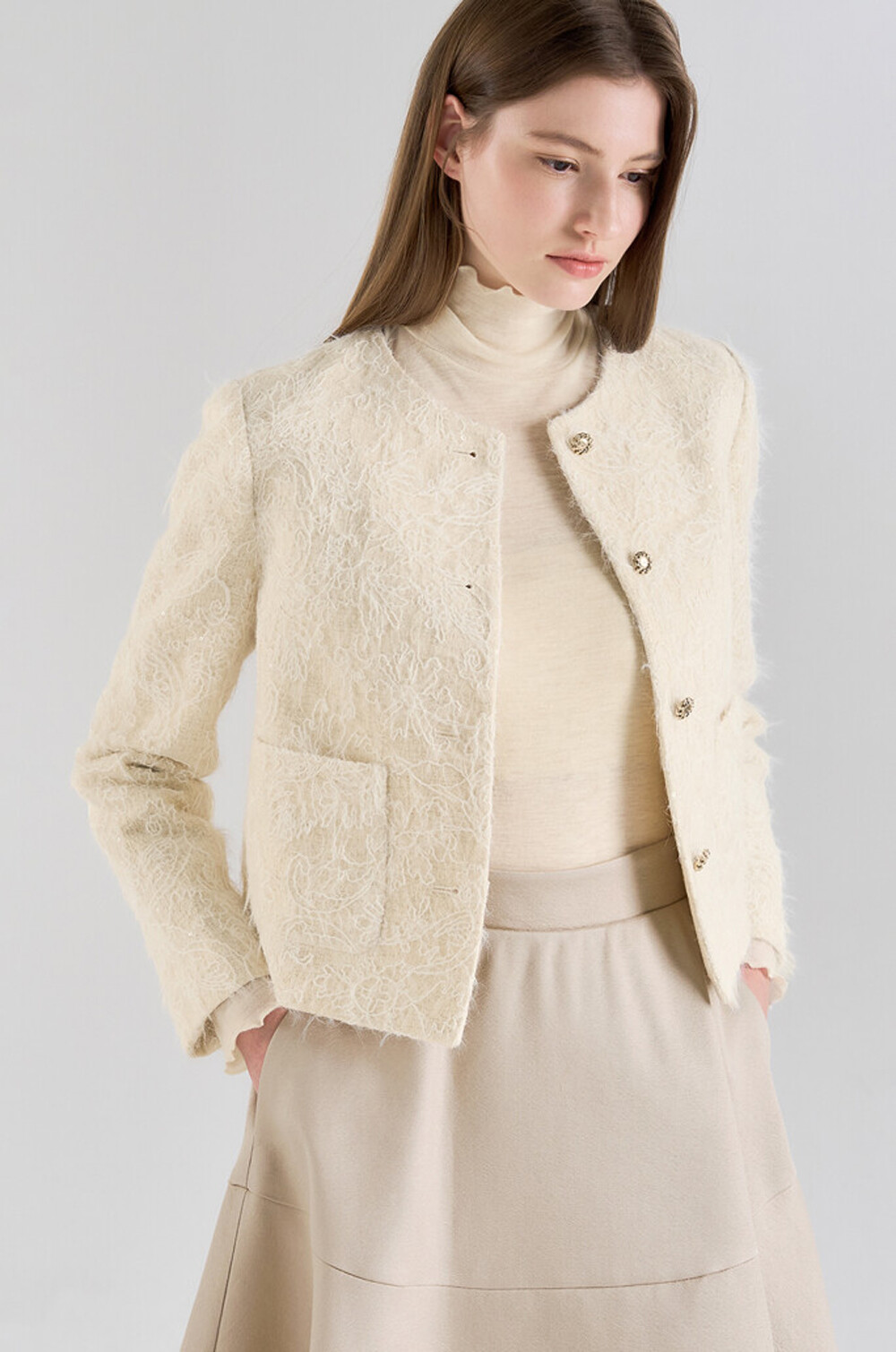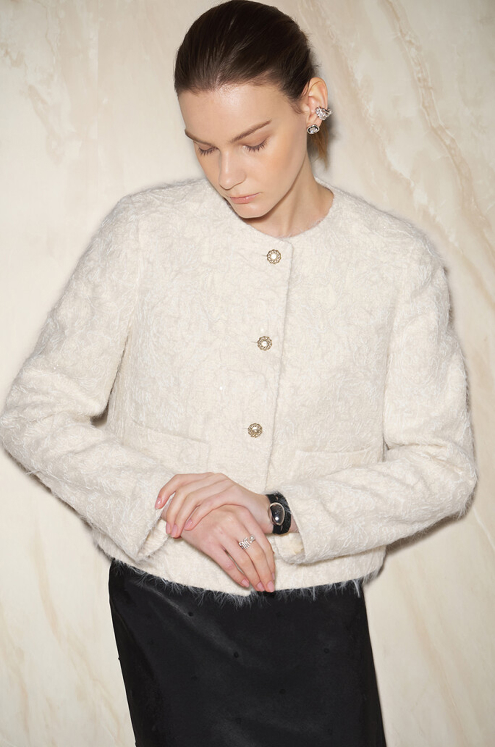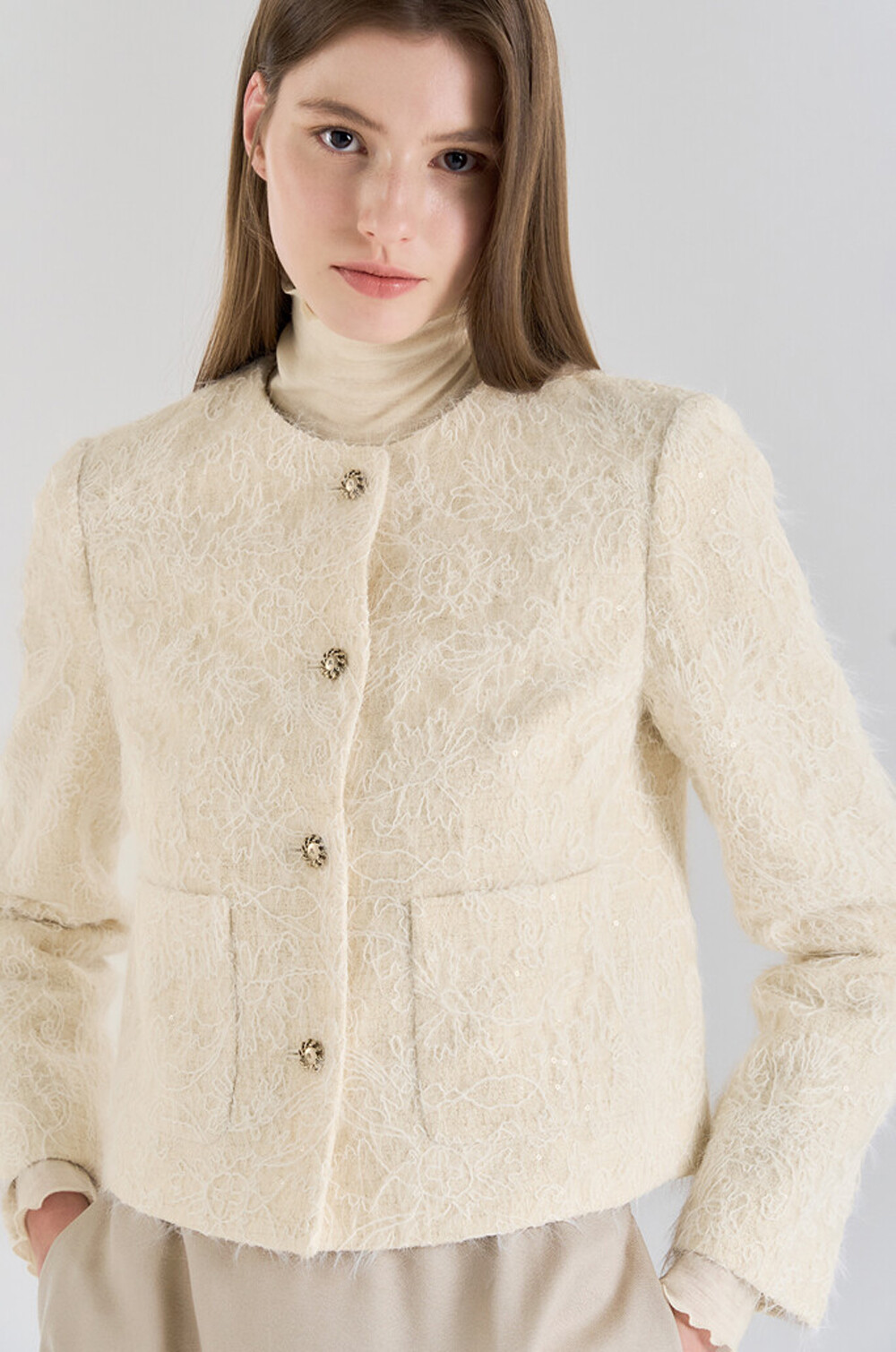 랑방컬렉션 플로럴 자수 & 시퀸 칼라리스 자켓