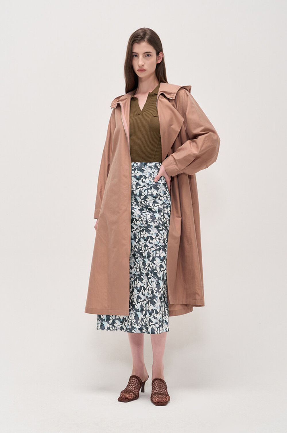 무릎을 덮는 롱한 기장감으로