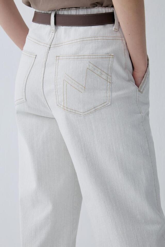 Back Banding Washed Denim Pants
