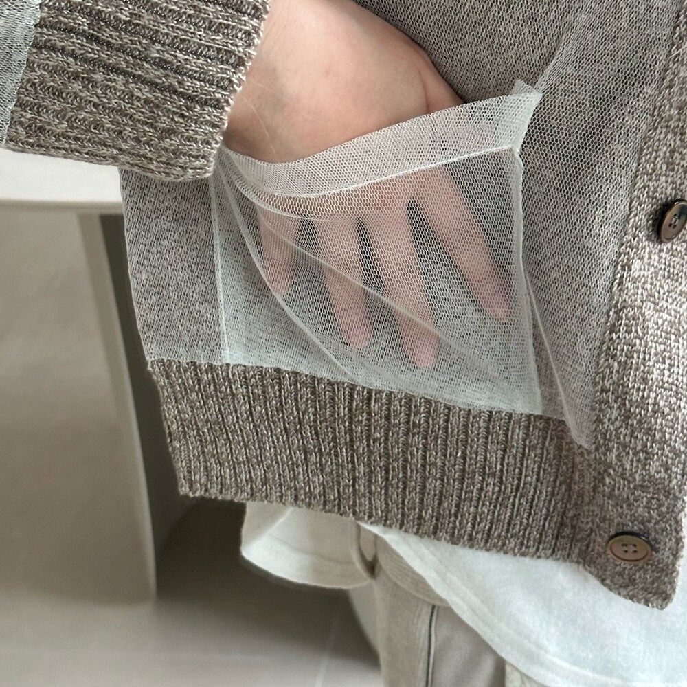 맨션. 파비 린넨 블렌드 오간자 가디건