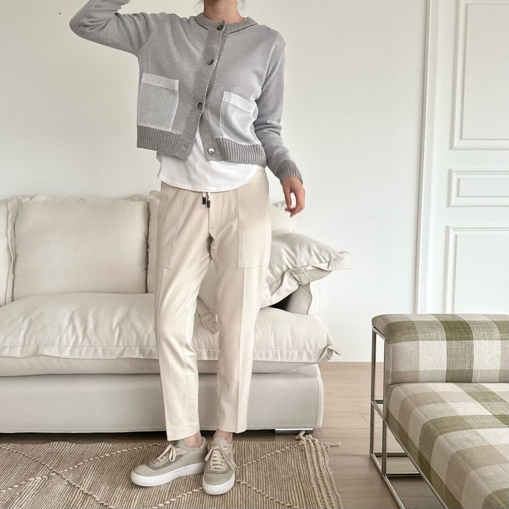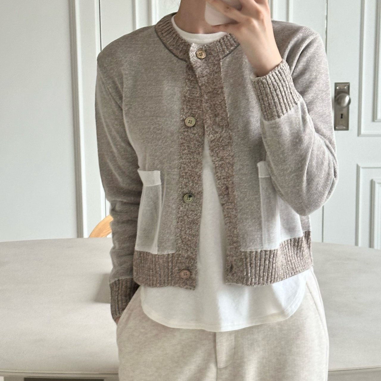 울 니트에 시스루 린넨을