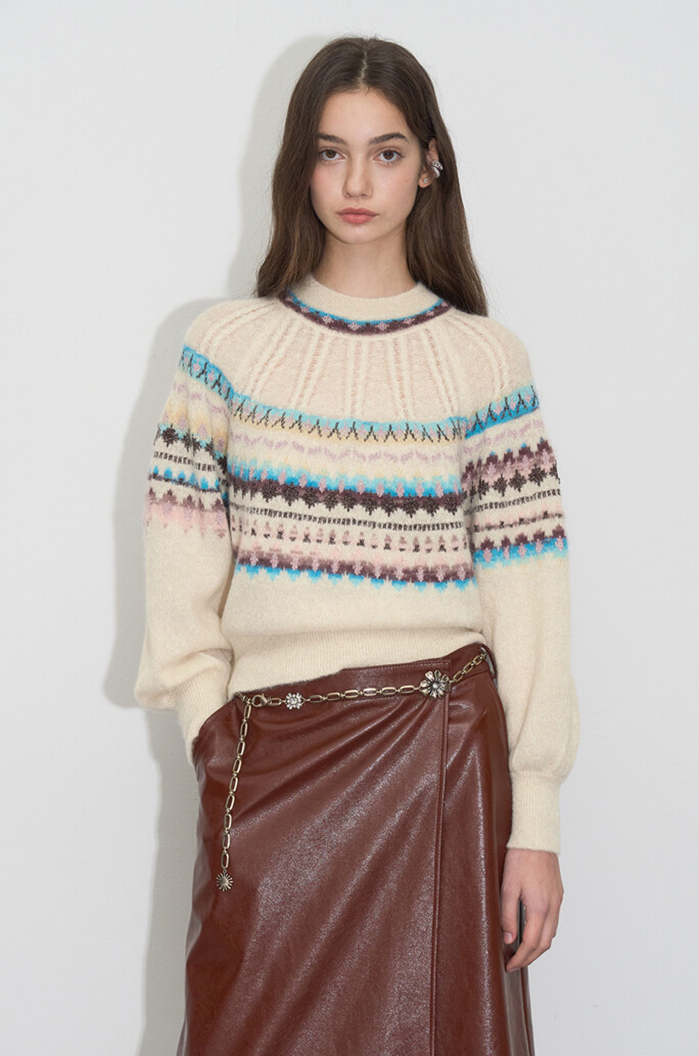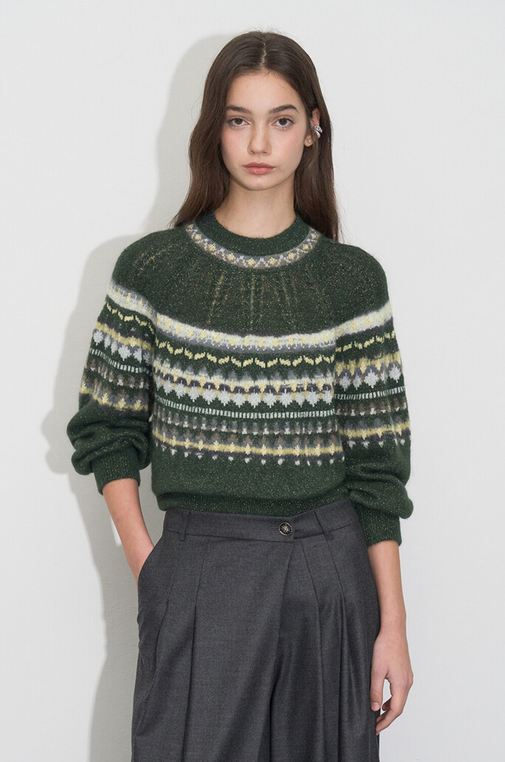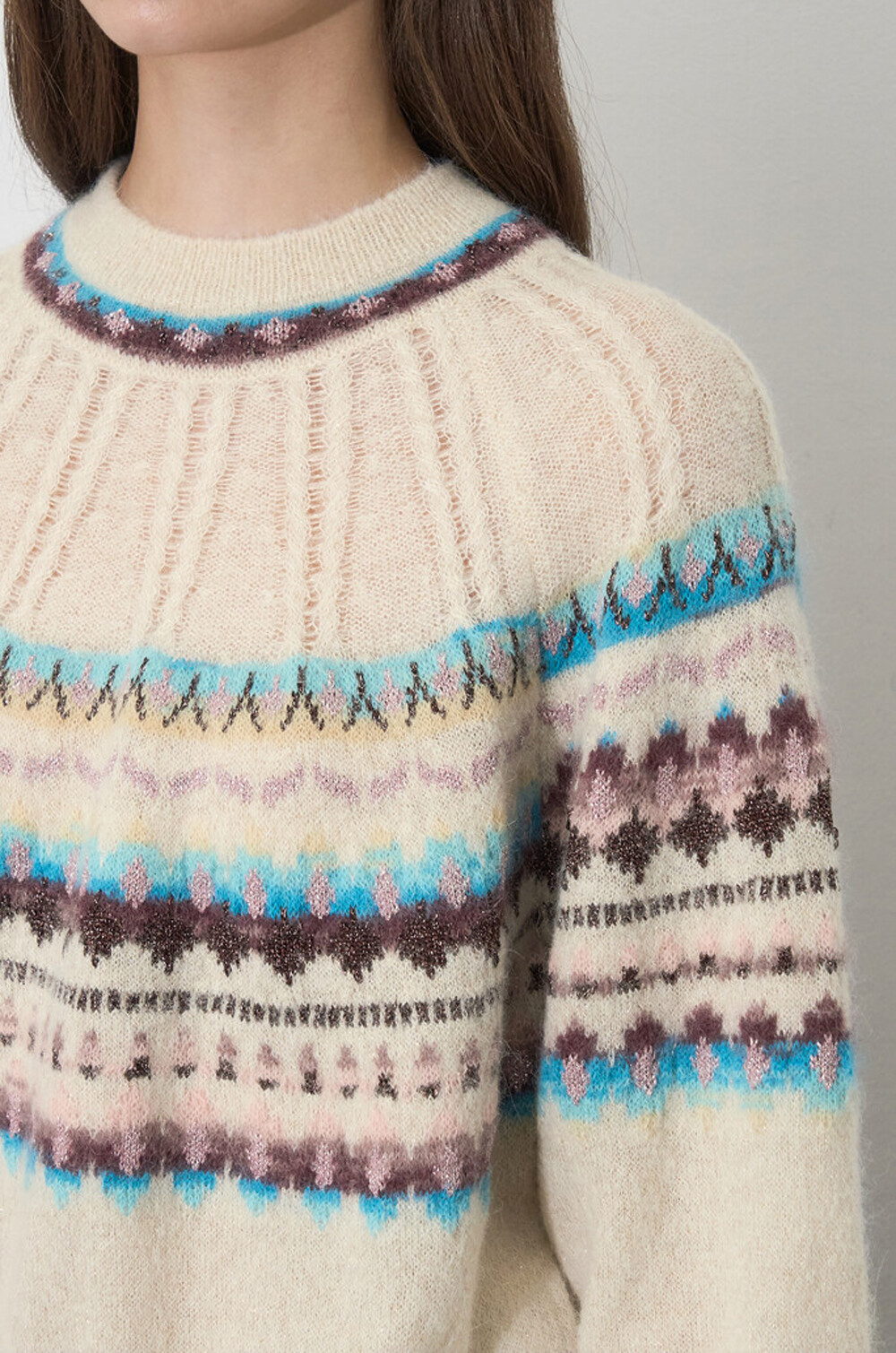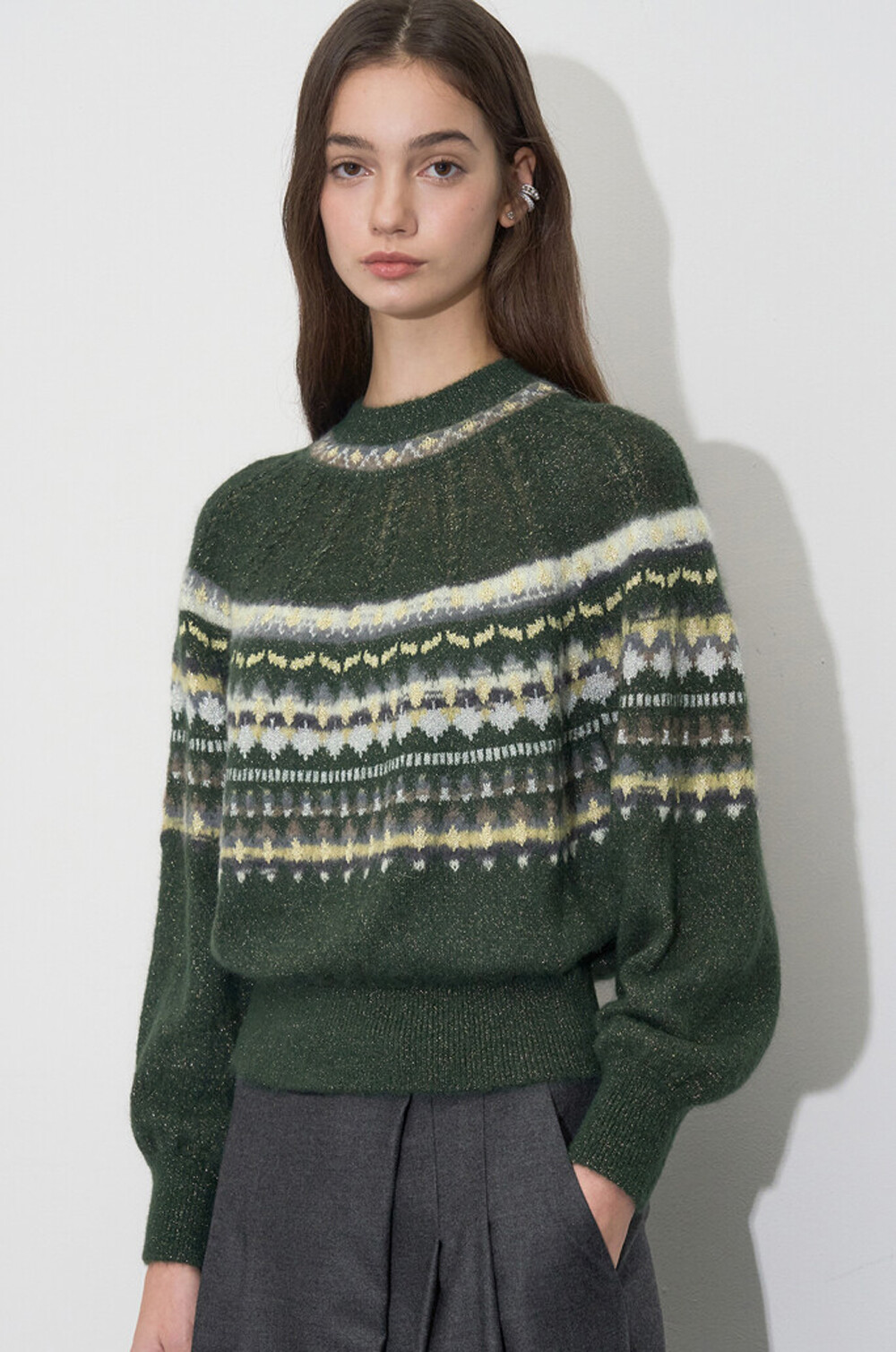 오브제 알파카 블렌드 인타르시아 니트 탑