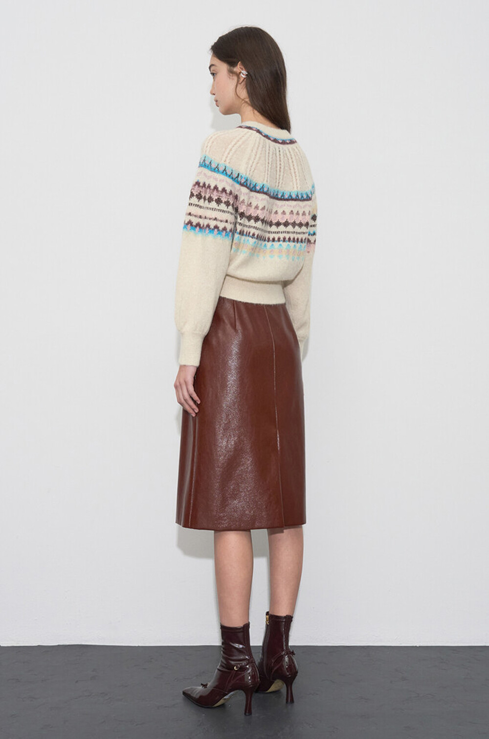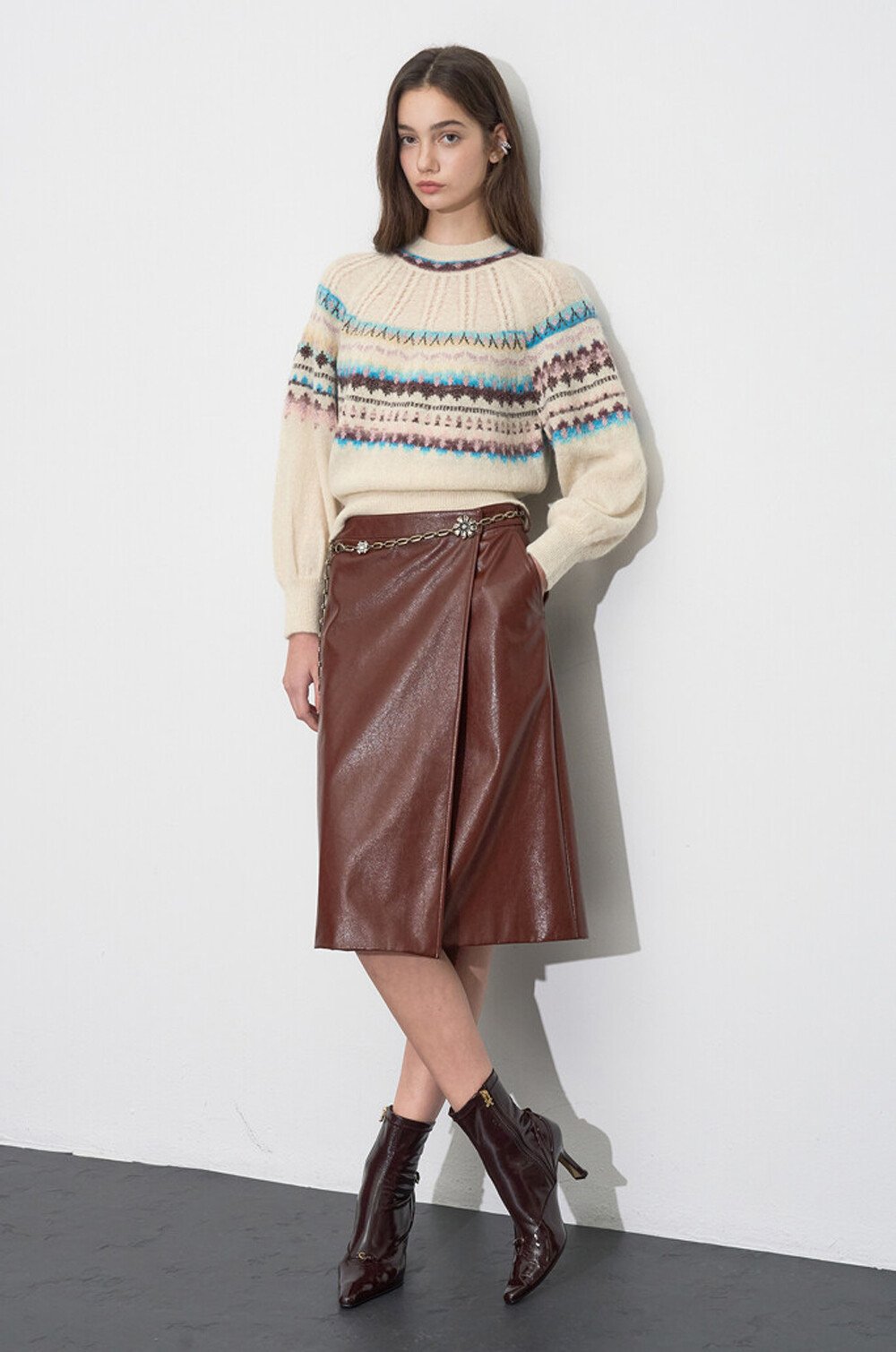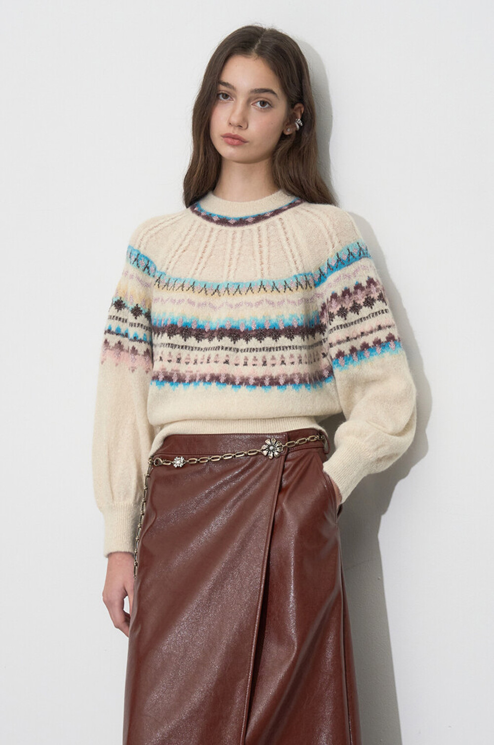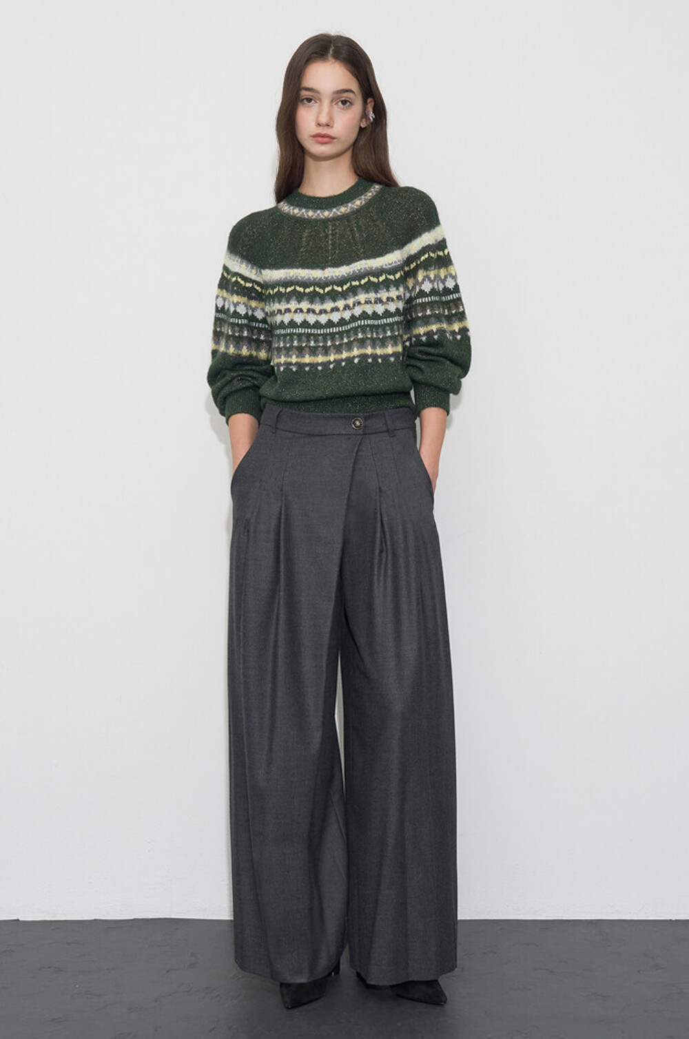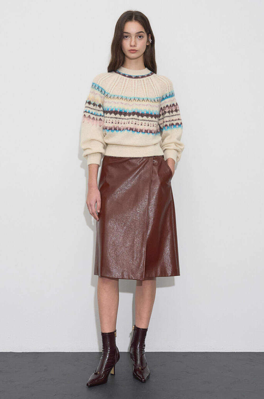 오브제 알파카 블렌드 인타르시아 니트 탑