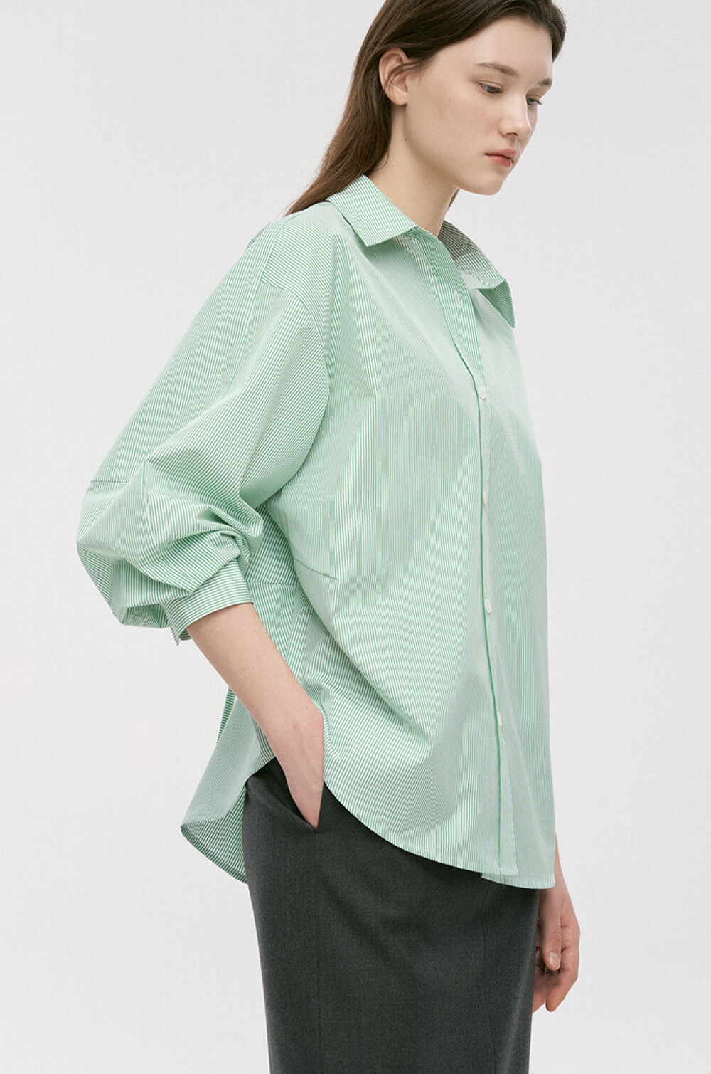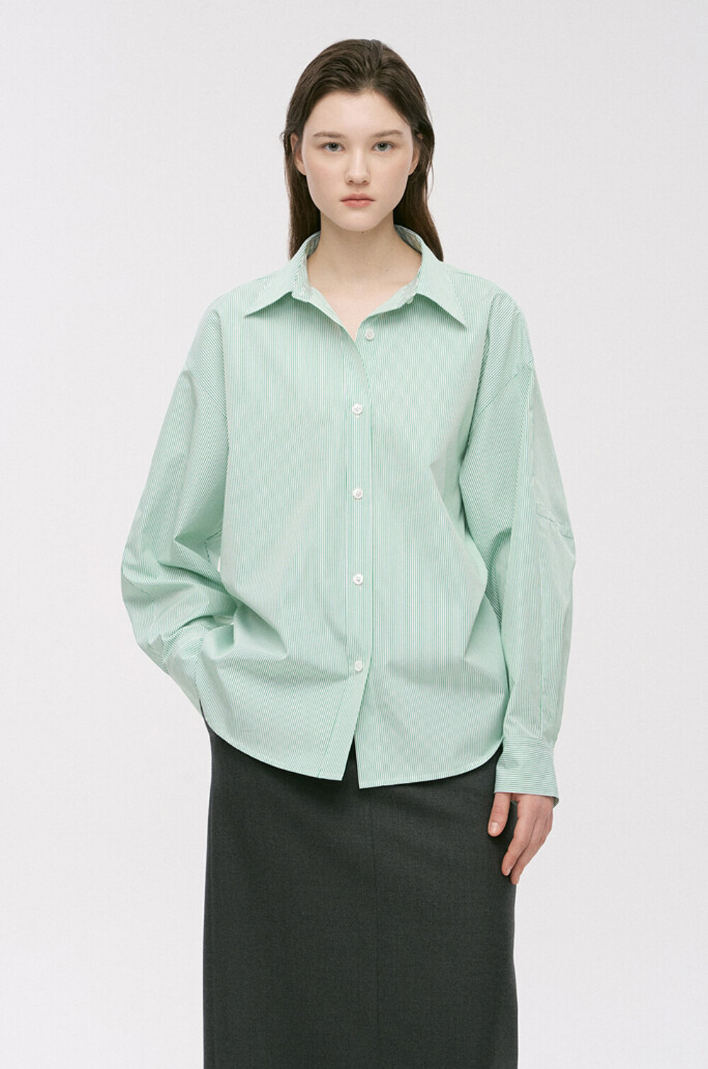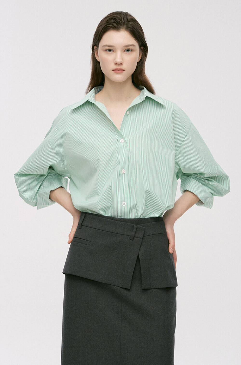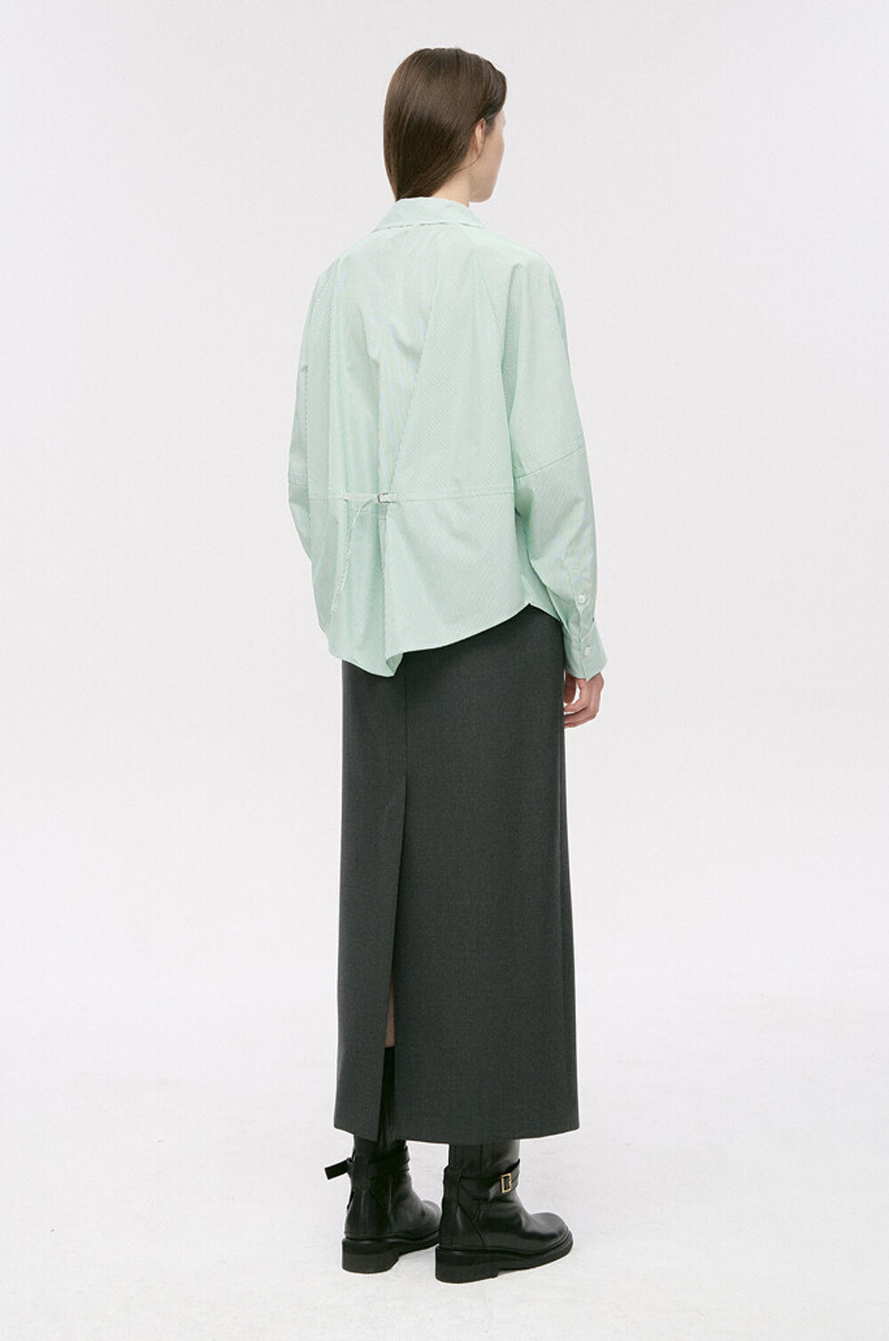 타임 버티컬 스트라이프 버클 스트랩 셔츠